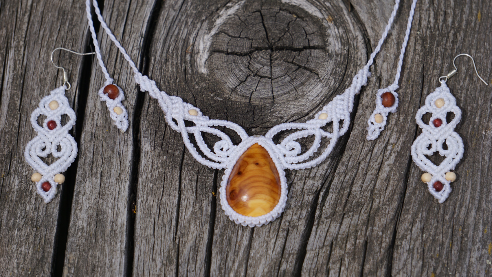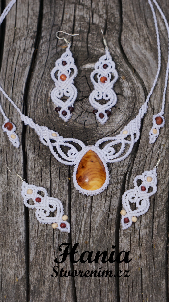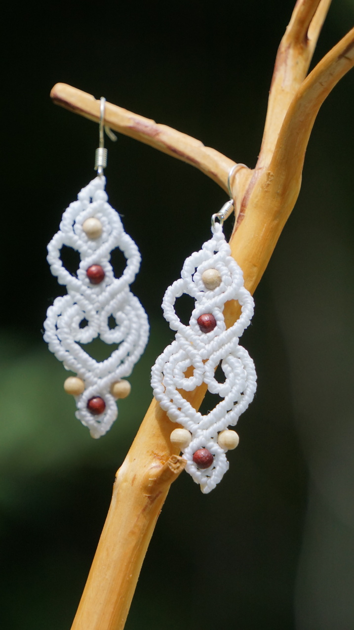 Bílé náušnice - světlé dřevo