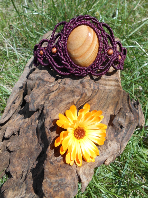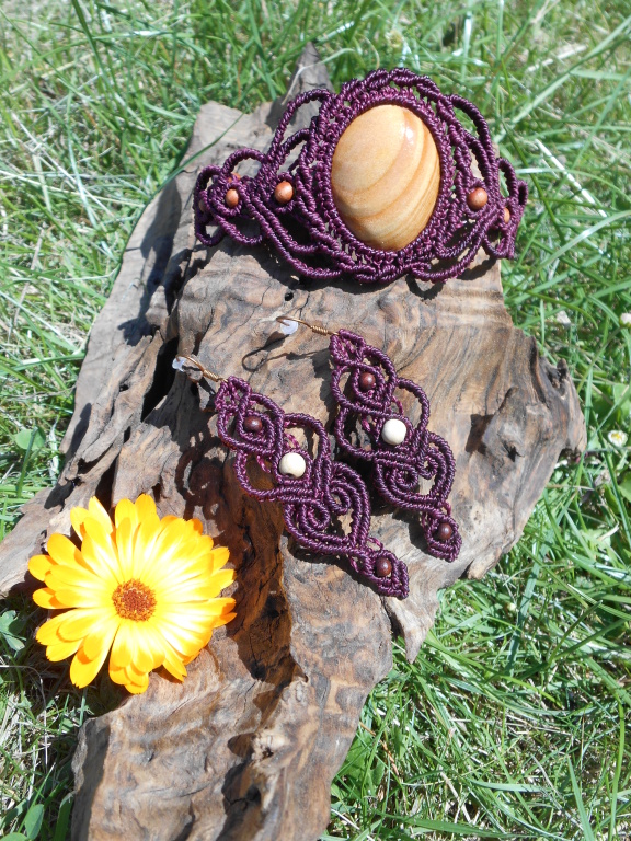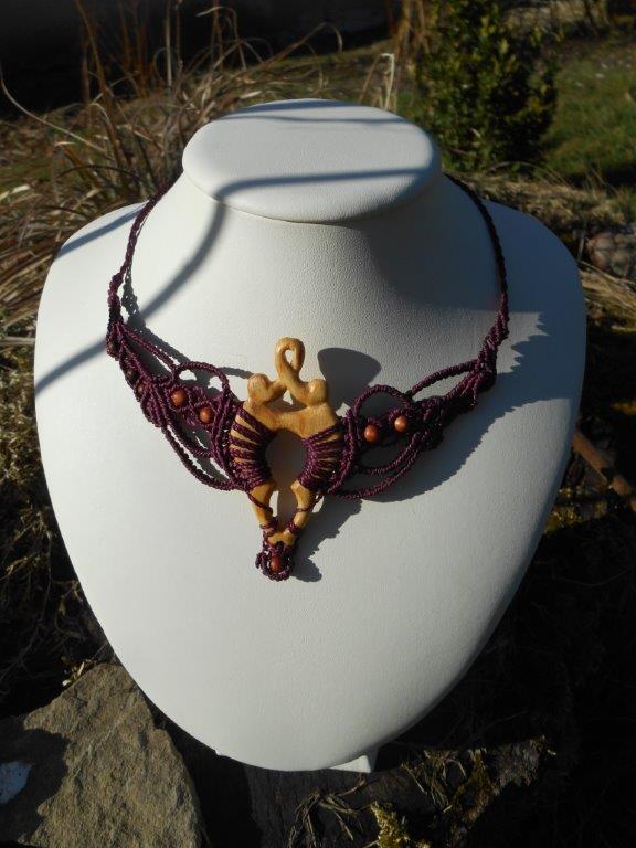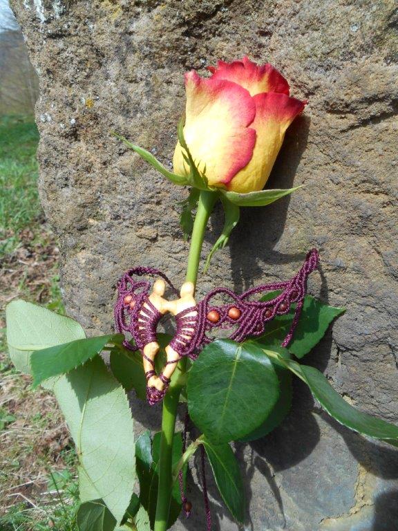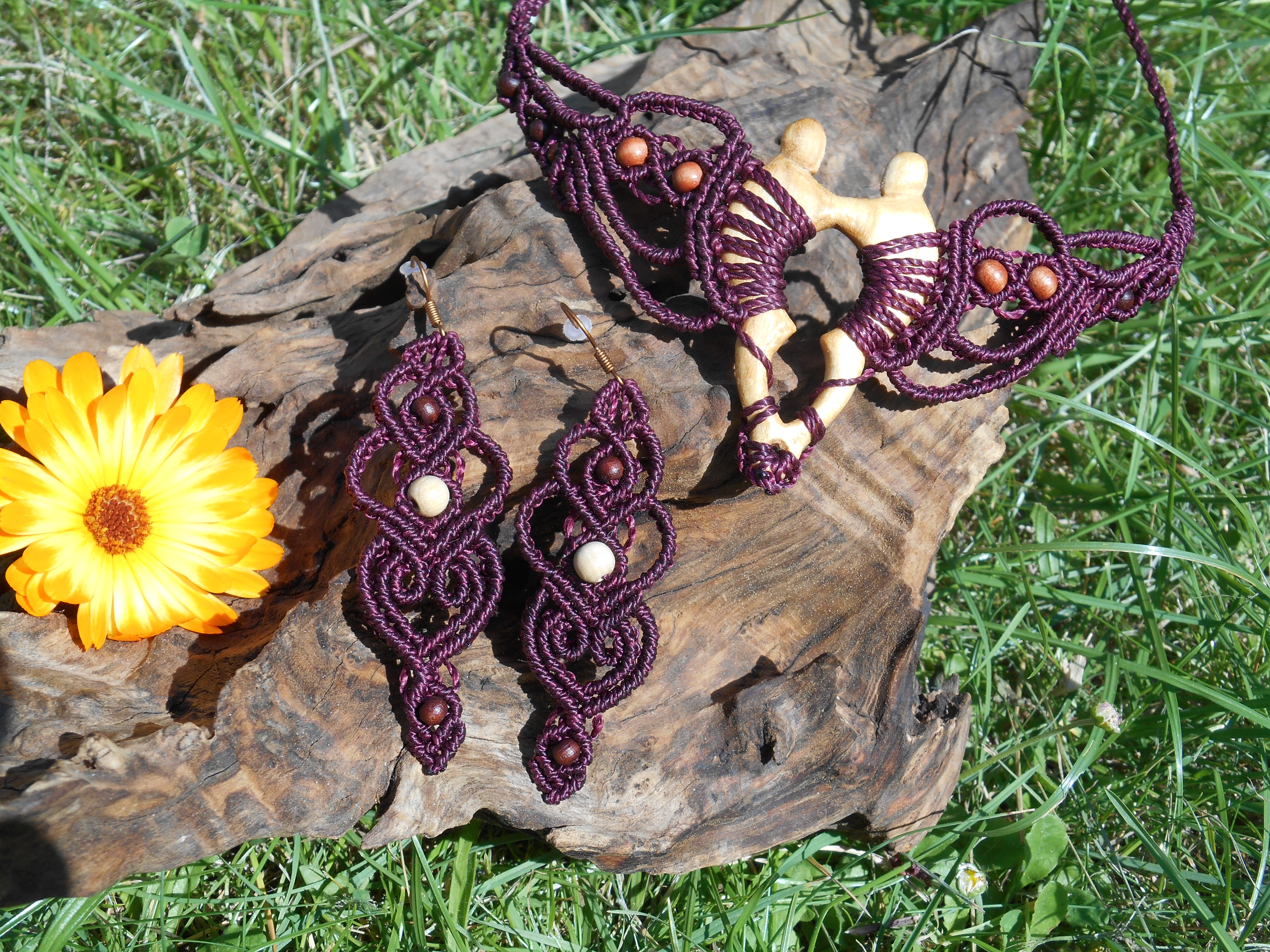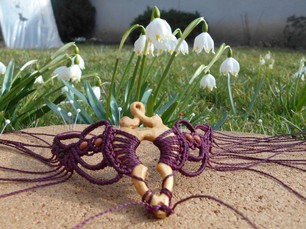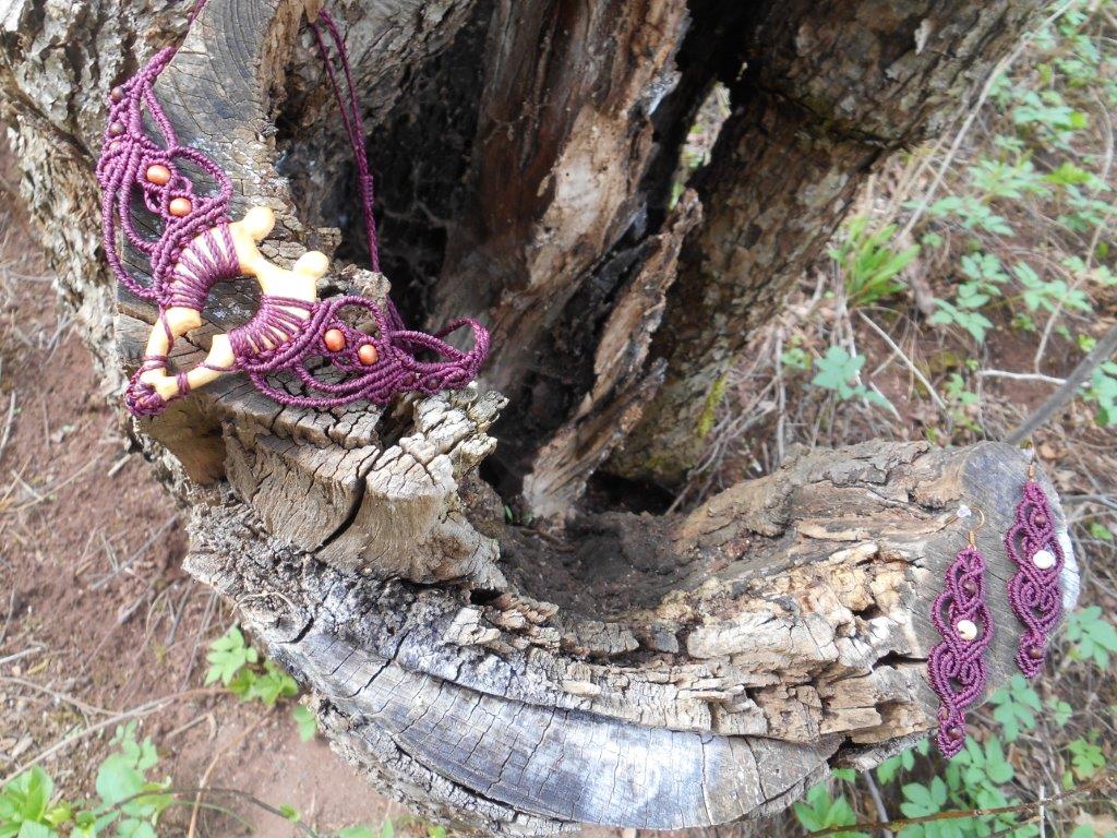 Lipové dřevo, ručně vyřezávané, spojené s technikou vázání uzlů, micro macramé. Pro ženu, která si je vědoma svého rozkvětu a své hodnoty, jedinečnosti i darů a která prožívá život plnými doušky.