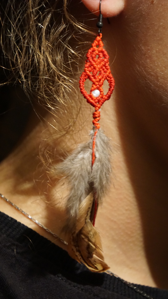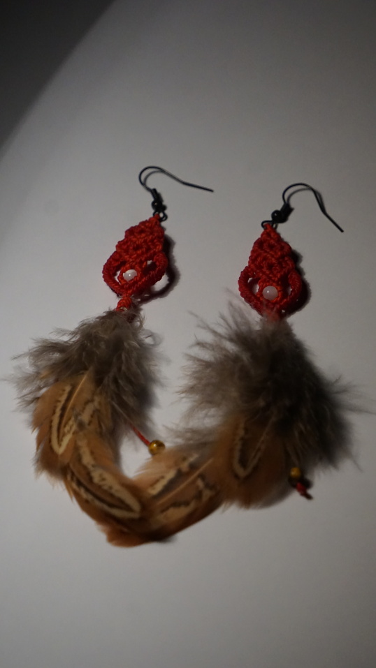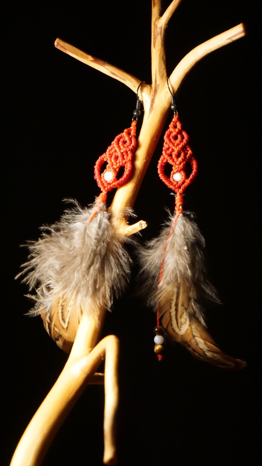 Rudé náušničky s perletí a tygřím okem