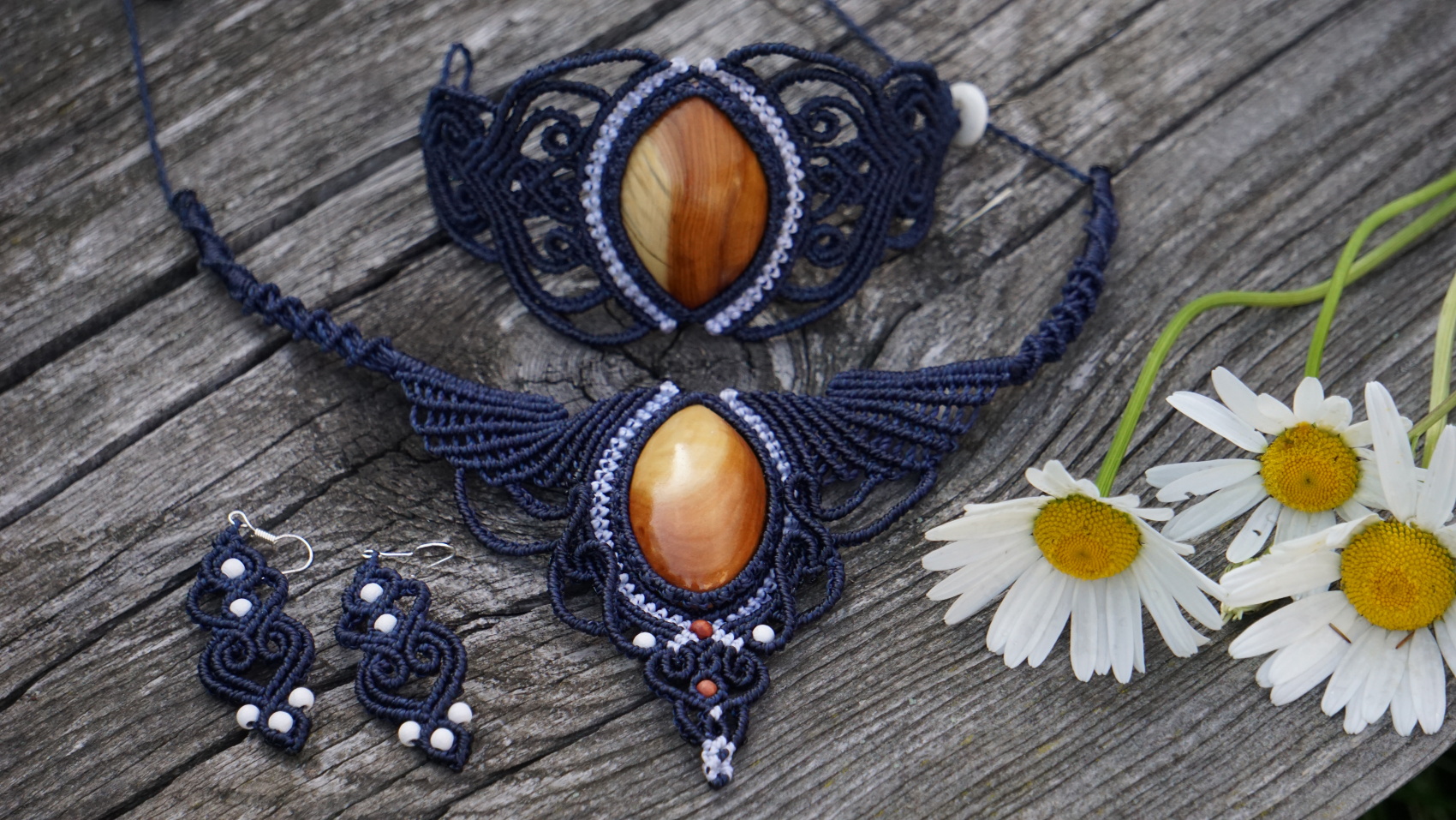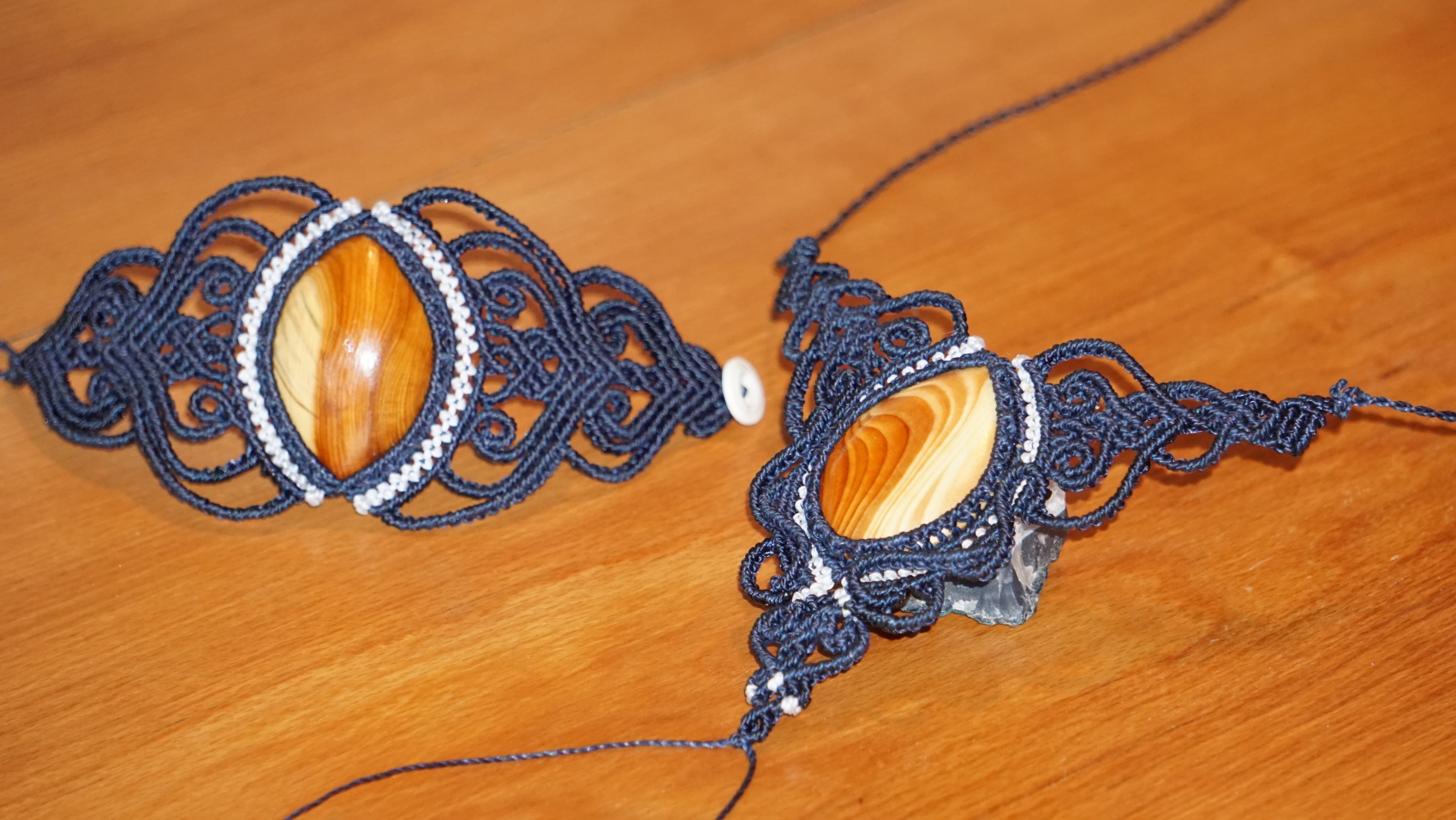 Šperk vznikl technikou micro macramé, což uzlíkování pouze za pomoci šikovných prstů a fantasie. Používám brazilské povoskované šňůrky, které jsou jedny z nejkvalitnějších na světě pro své kvality a stálobarevnost.