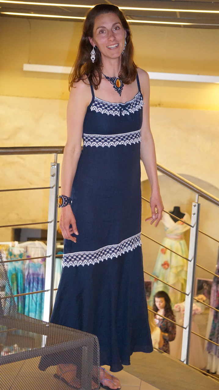Temně modrá barva okořeněná bílou je velmi elegantní a vznešená kombinace. Z obyčejných šatů se stanou večerní, z obyčejné ženy se stane jedinečná a sebe-vědomá Žena. Tato kombinace je velmi oblíbená a sluší snad každé.