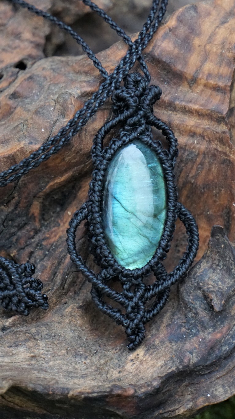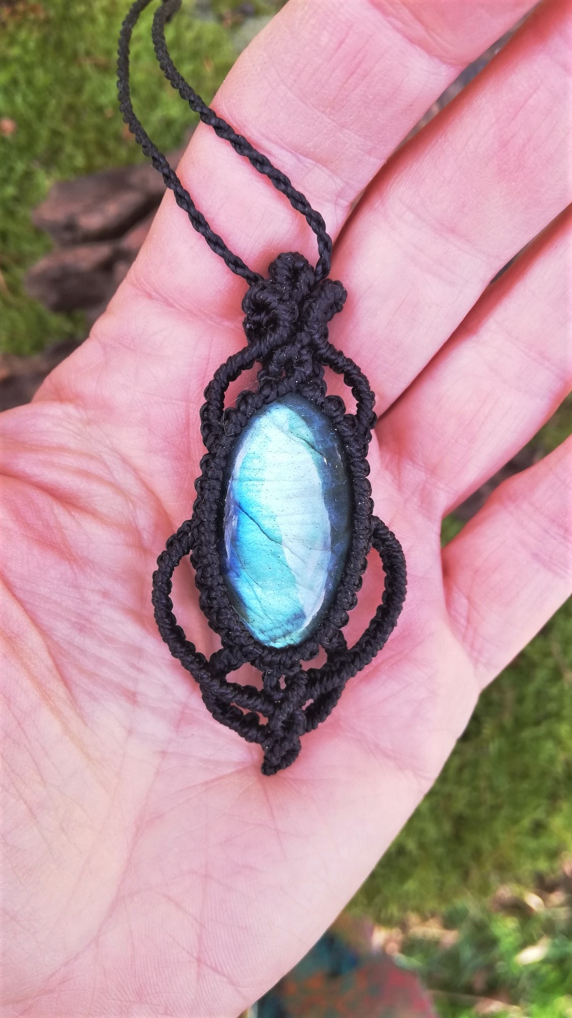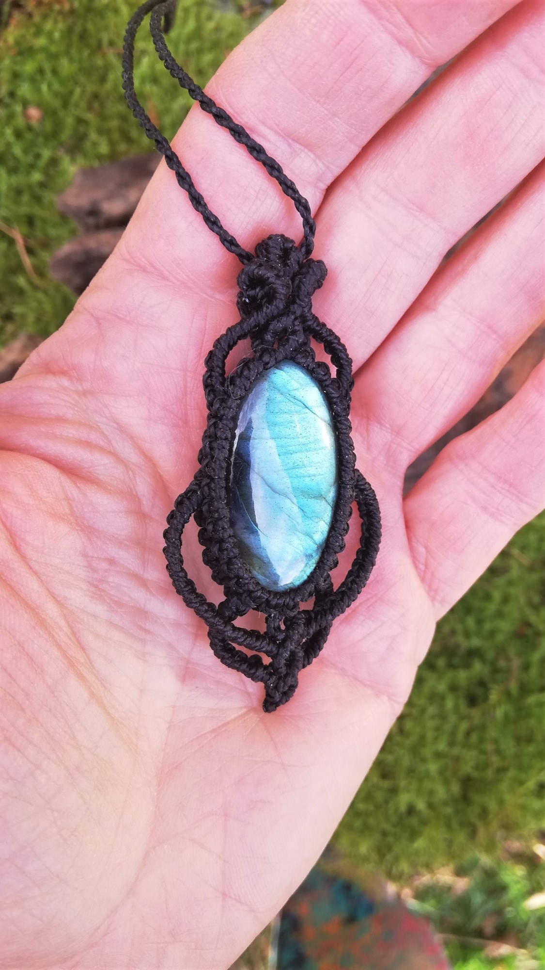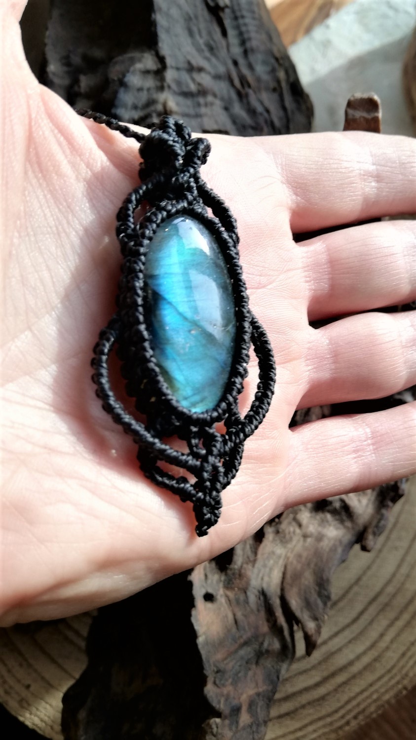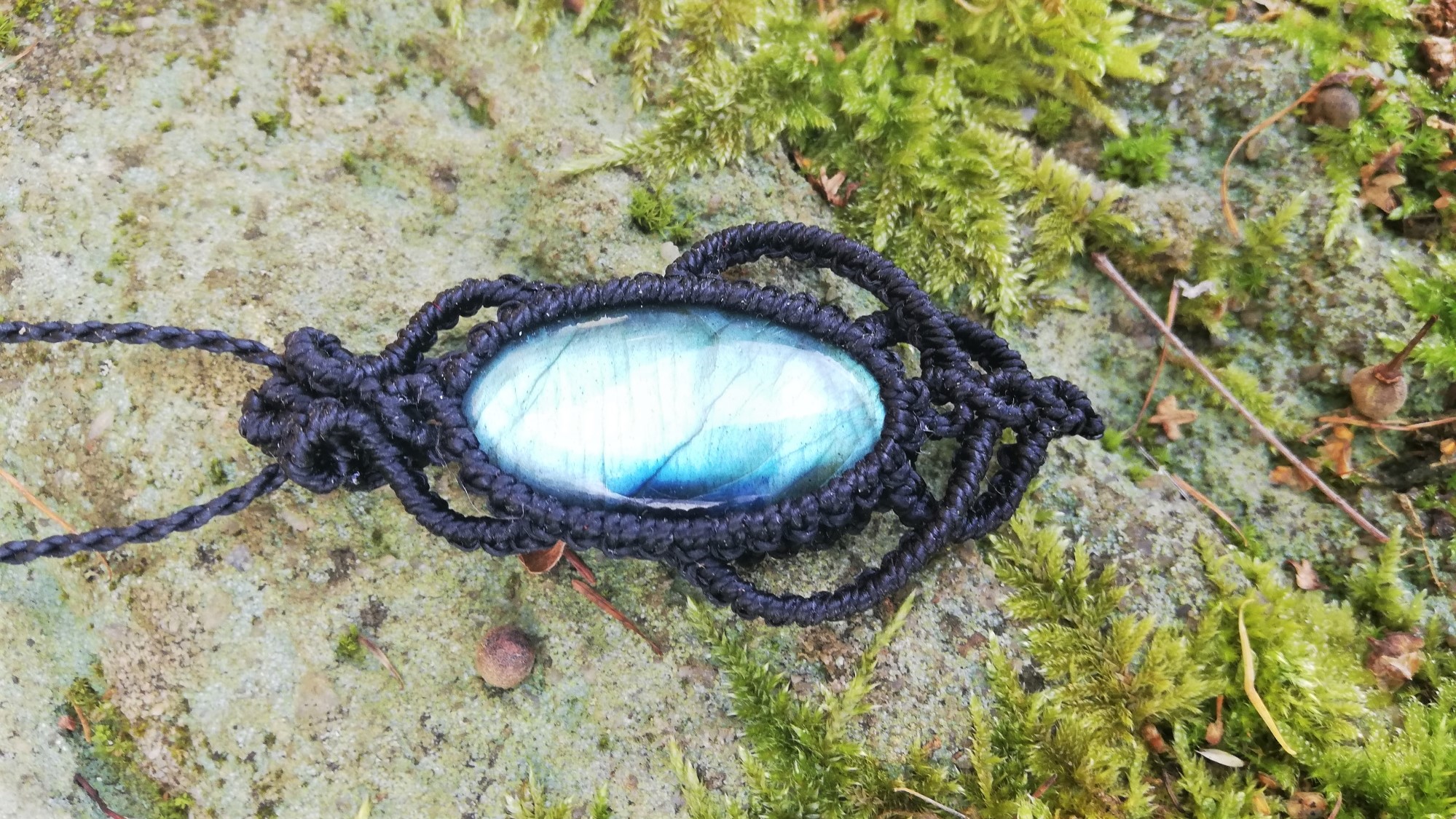 Šperk vznikl technikou micro macramé, což je uzlíkování pouze za pomoci šikovných prstů a fantasie. Používám brazilské povoskované šňůrky, které jsou jedny z nejkvalitnějších na světě pro svou pevnost a stálobarevnost. Šňůrky je možné ručně vyprat ve vlažné mýdlové lázni, vysušit v ručníku a nechat volně uschnout.