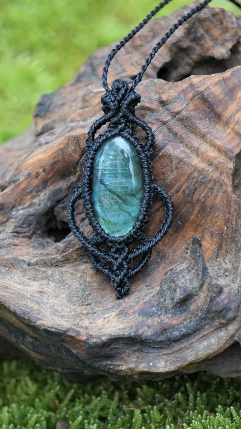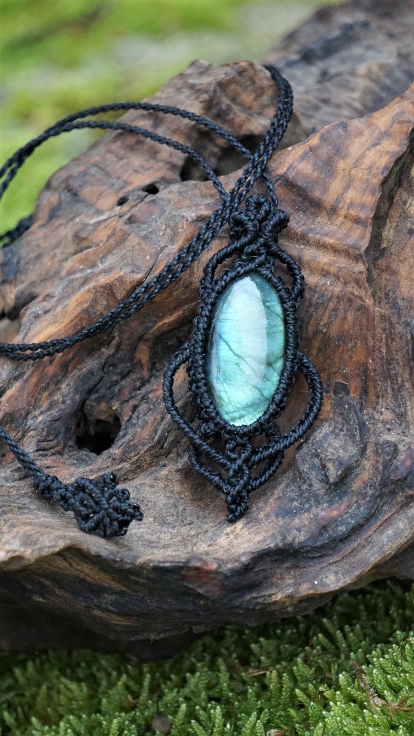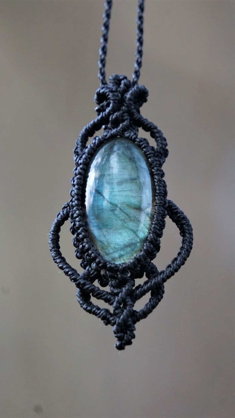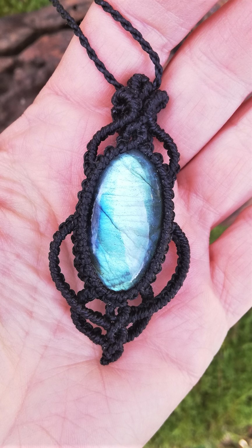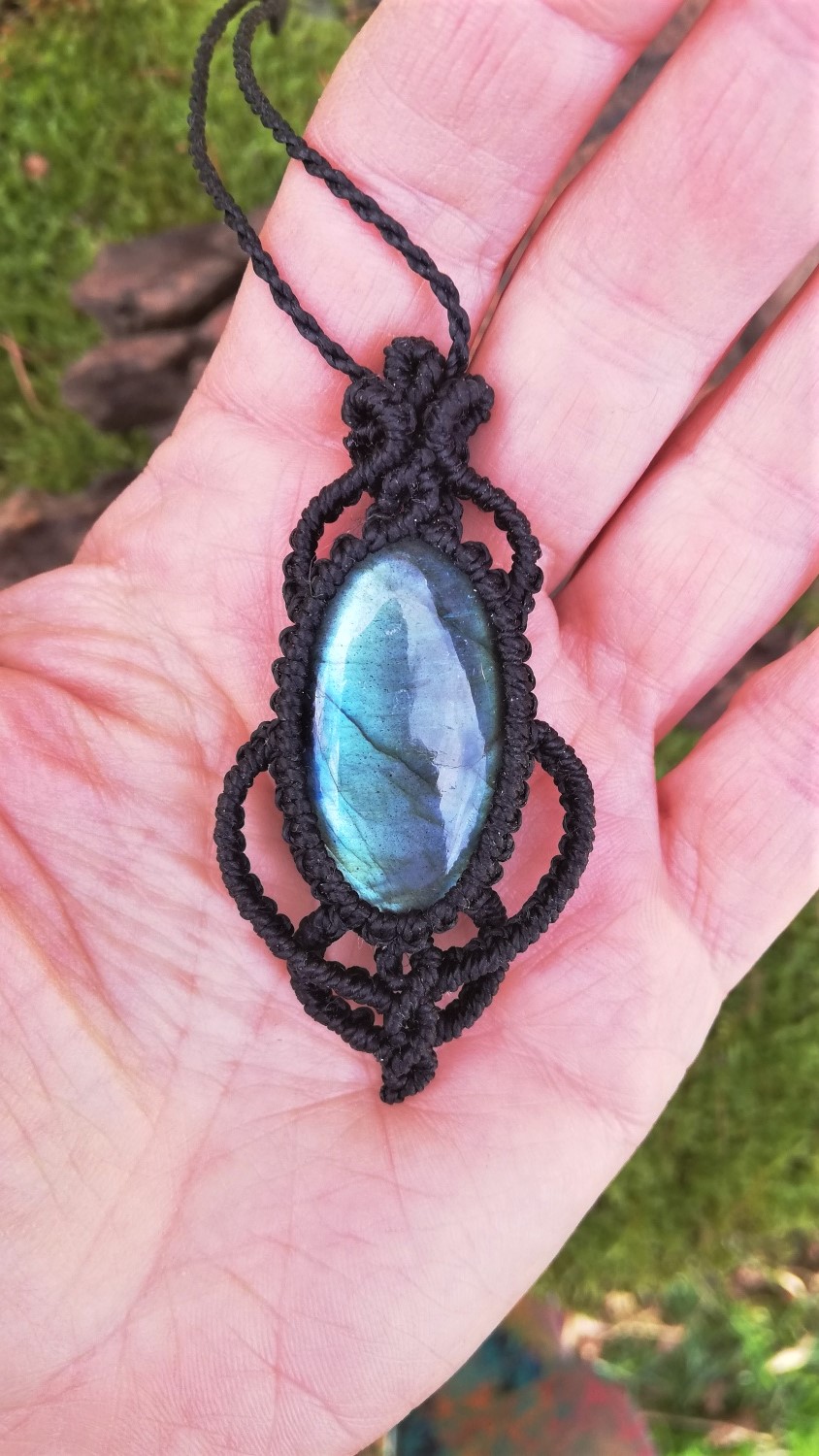 Šperk vznikl technikou micro macramé, což je uzlíkování pouze za pomoci šikovných prstů a fantasie. Používám brazilské povoskované šňůrky, které jsou jedny z nejkvalitnějších na světě pro svou pevnost a stálobarevnost. Šňůrky je možné ručně vyprat ve vlažné mýdlové lázni, vysušit v ručníku a nechat volně uschnout.