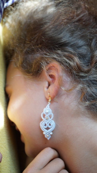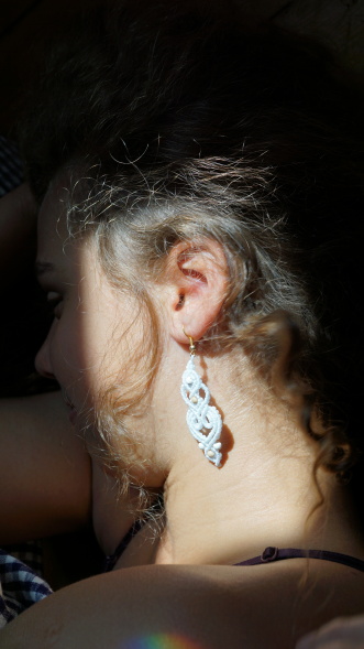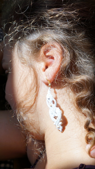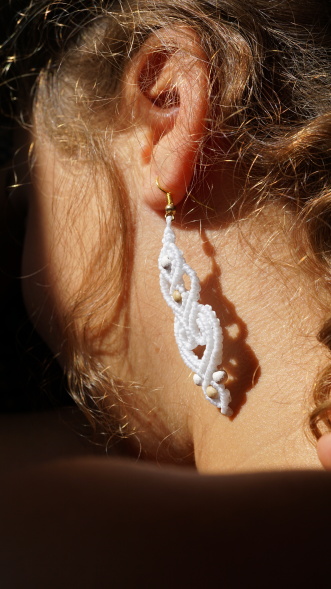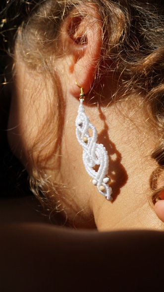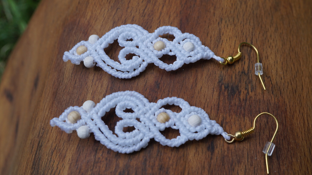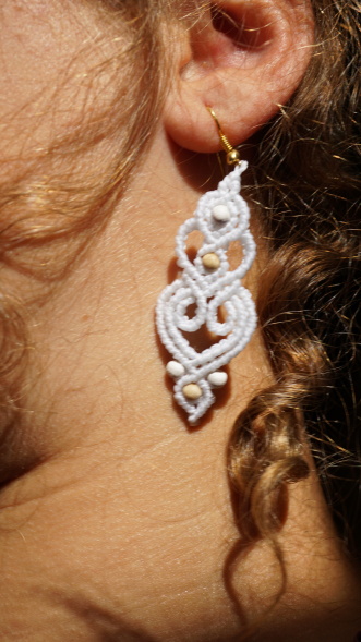 Náušnice z brazilských povoskovaných šňůrek v bílé barvě doplněné dřevěnými korálky. Luxusní doplněk pro nevěsty i jen tak na léto k opálenému tělu.