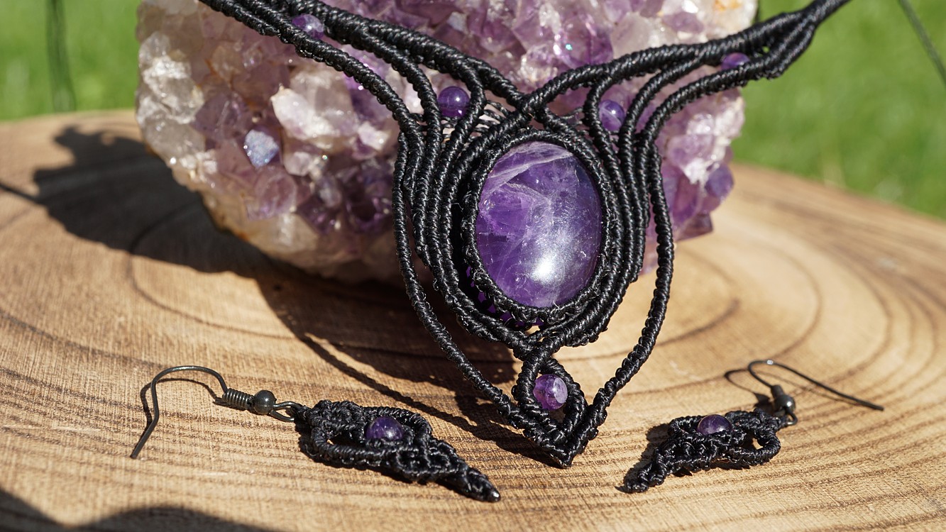 Do náhrdelníku jsou vloženy přírodní ametysty, nedobarvované, včetně ametystových korálků.