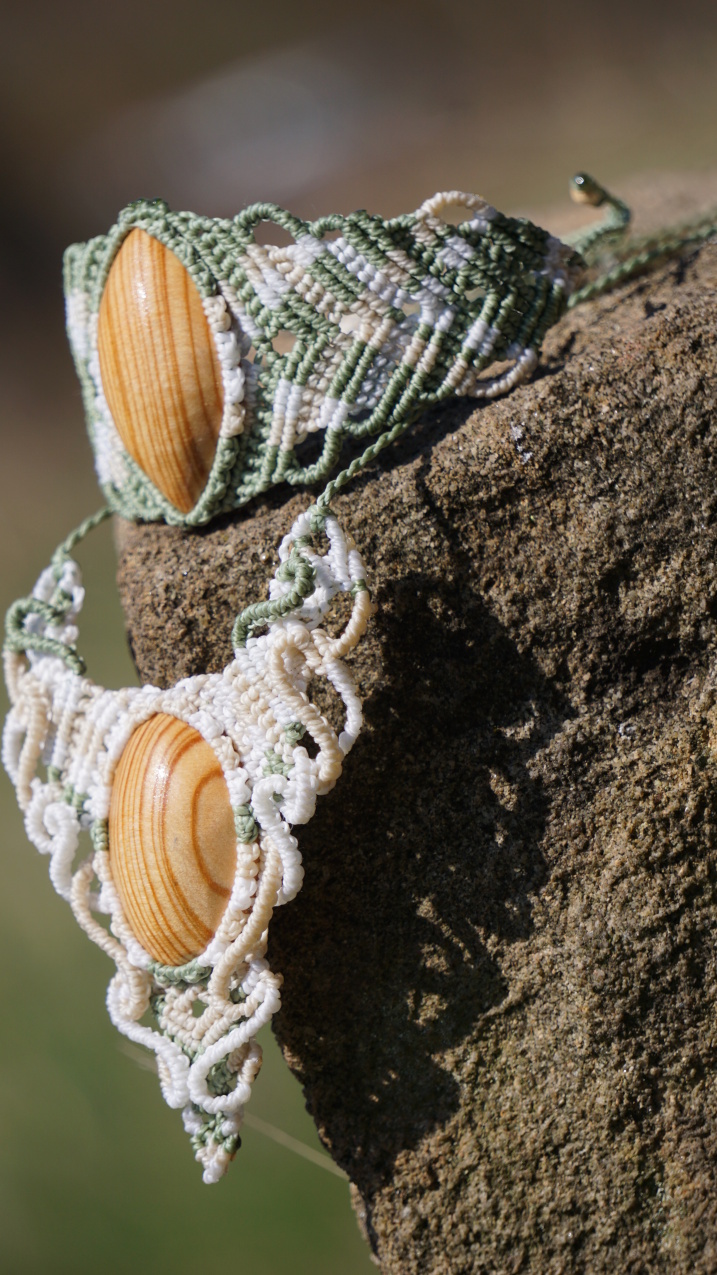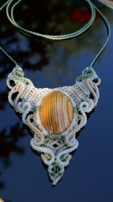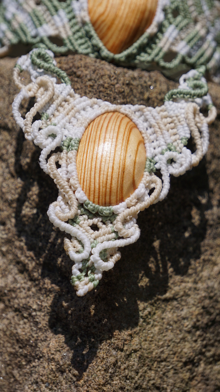 Šperk vznikl technikou micro macramé, což uzlíkování pouze za pomoci šikovných prstů a fantasie. Používám brazilské povoskované šňůrky, které jsou jedny z nejkvalitnějších na světě pro své kvality a stálobarevnost.
