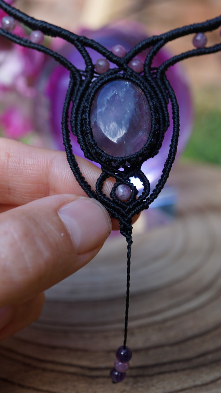 Náhrdelník je na utahování, takže též umožňuje různou délku závěsu. Boky náhrdelníku jsou tvarovatelné, můžete tedy i jemně upravit tvar podle své šíje. Velikost ametystu je 25 x 18 mm.