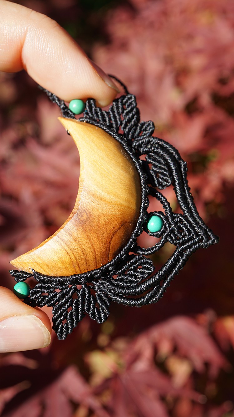 Šperk vznikl technikou micro macramé, což uzlíkování pouze za pomoci šikovných prstů a fantasie. Používám brazilské povoskované šňůrky velmi tenké a jemné, které jsou jedny z nejkvalitnějších na světě pro svou pevnost a stálobarevnost.