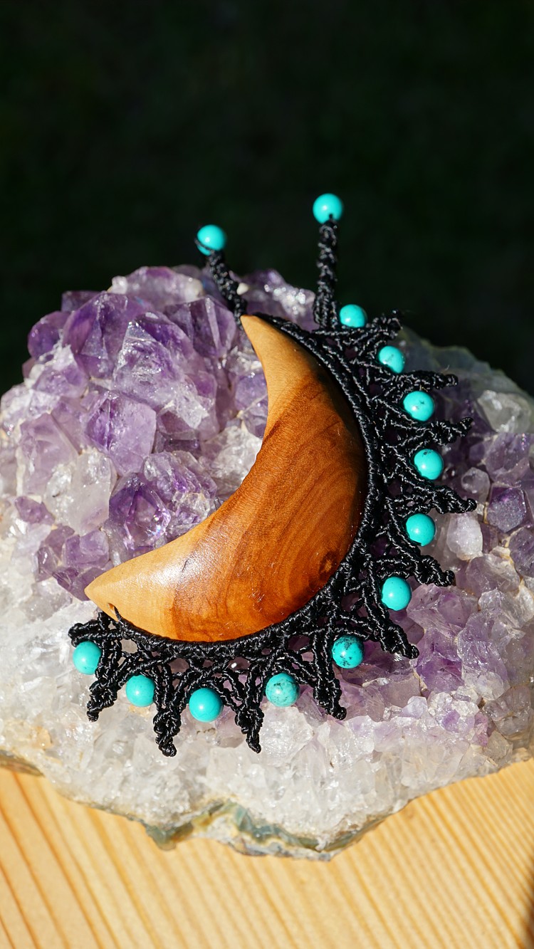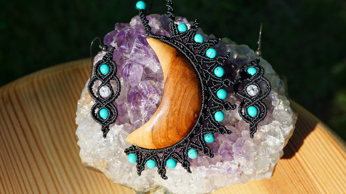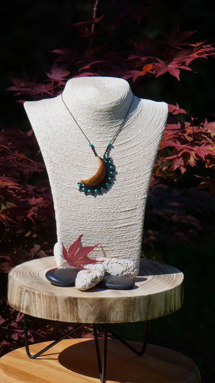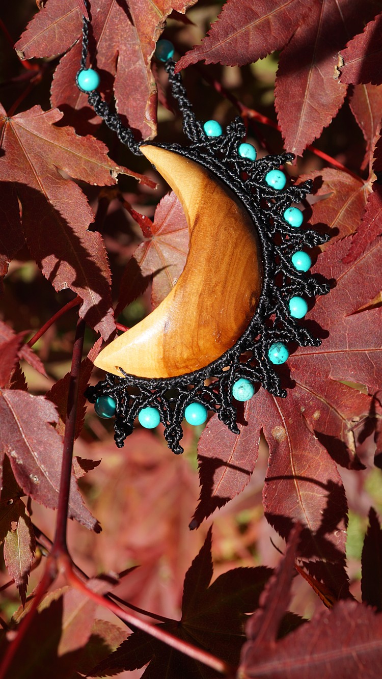 Šperk vznikl technikou micro macramé, což uzlíkování pouze za pomoci šikovných prstů a fantasie. Používám brazilské povoskované šňůrky velmi tenké a jemné (jako povoskovaná režná nit), které jsou jedny z nejkvalitnějších na světě pro svou pevnost a stálobarevnost.