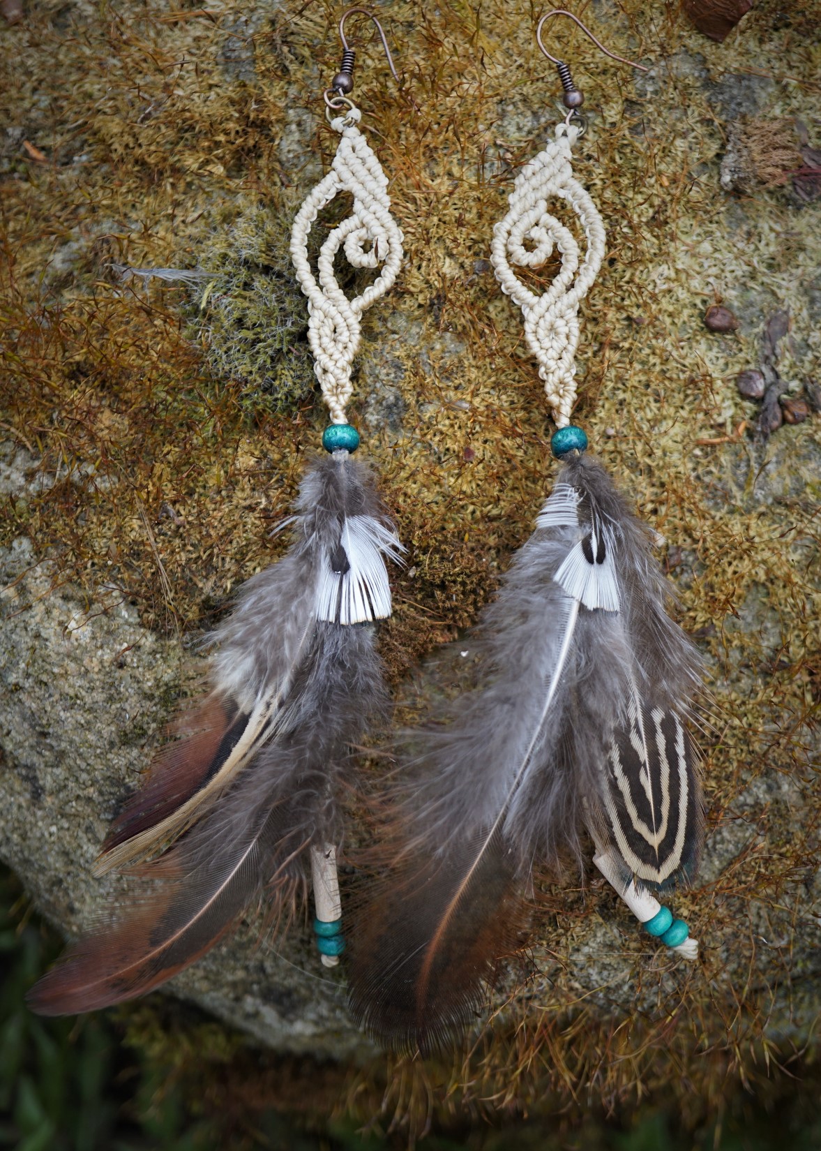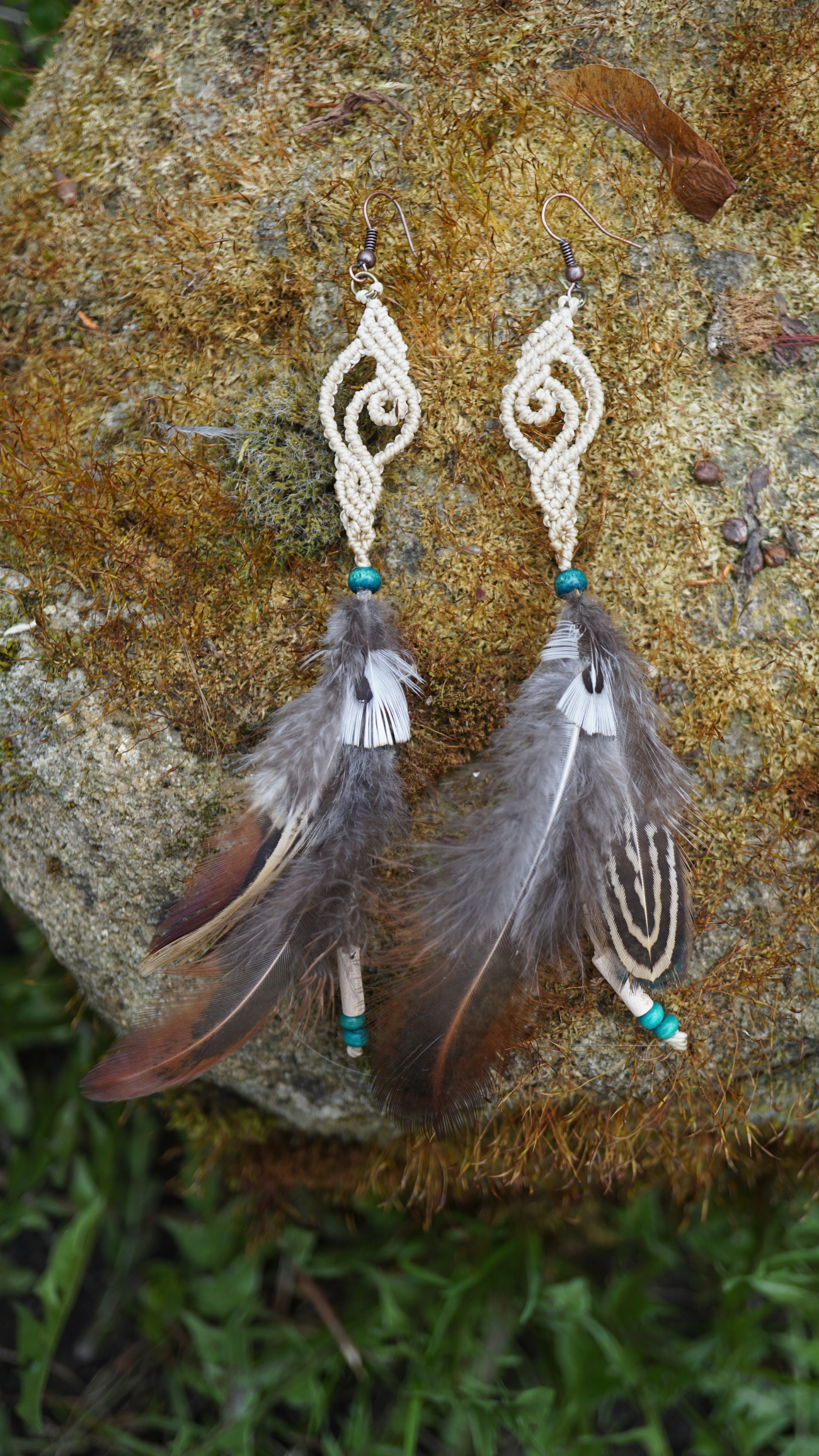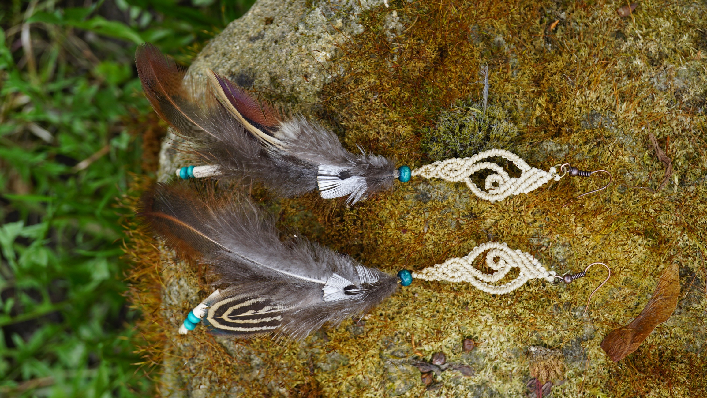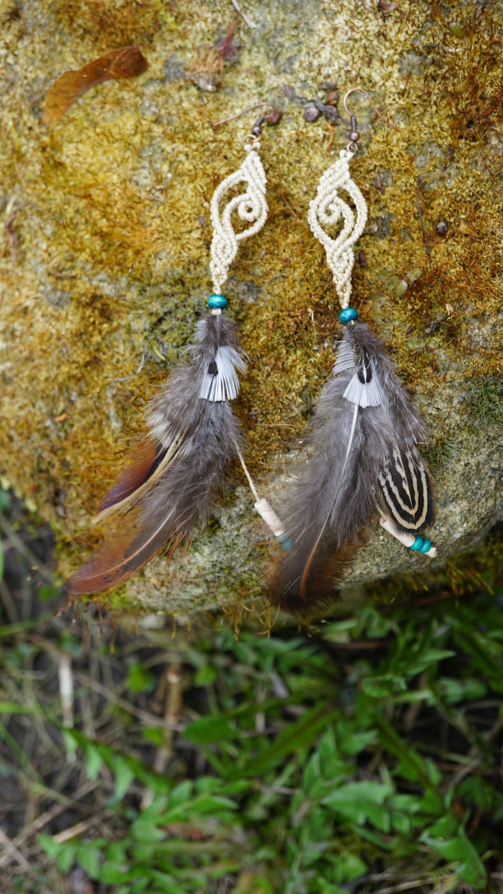 Náušnice vznikly technikou micro macramé, což je uzlíkování pouze za pomoci šikovných prstů a fantasie. Používám brazilské povoskované šňůrky, které jsou jedny z nejkvalitnějších na světě pro svou pevnost a stálobarevnost.