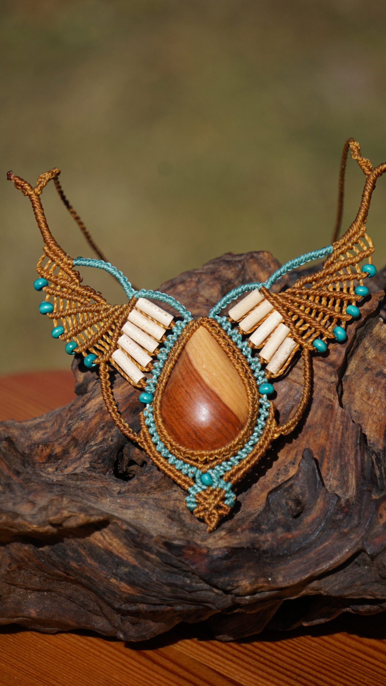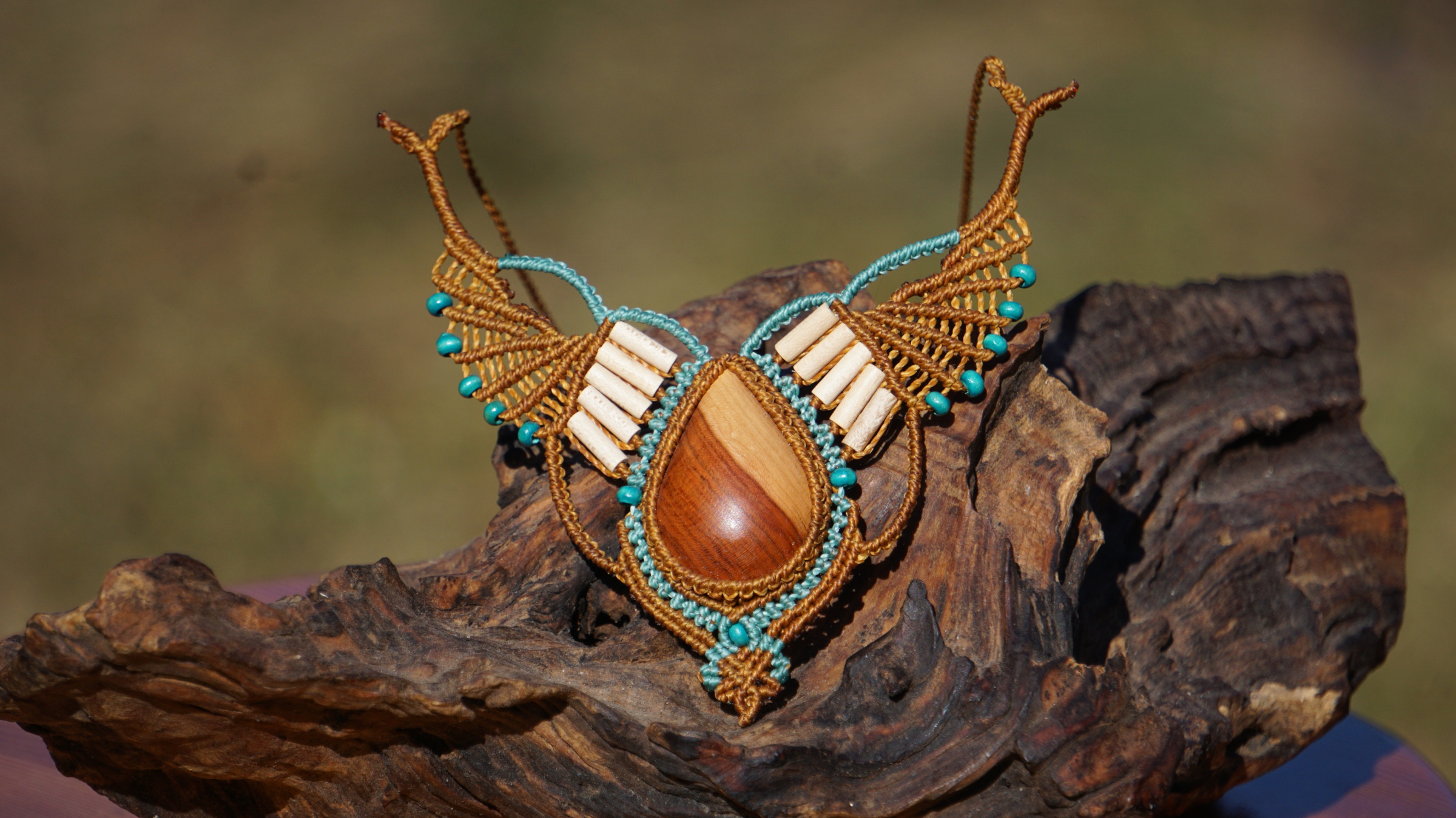 Šperk vznikl technikou micro macramé, což uzlíkování pouze za pomoci šikovných prstů a fantasie. Používám brazilské povoskované šňůrky, které jsou jedny z nejkvalitnějších na světě pro svou pevnost a stálobarevnost.