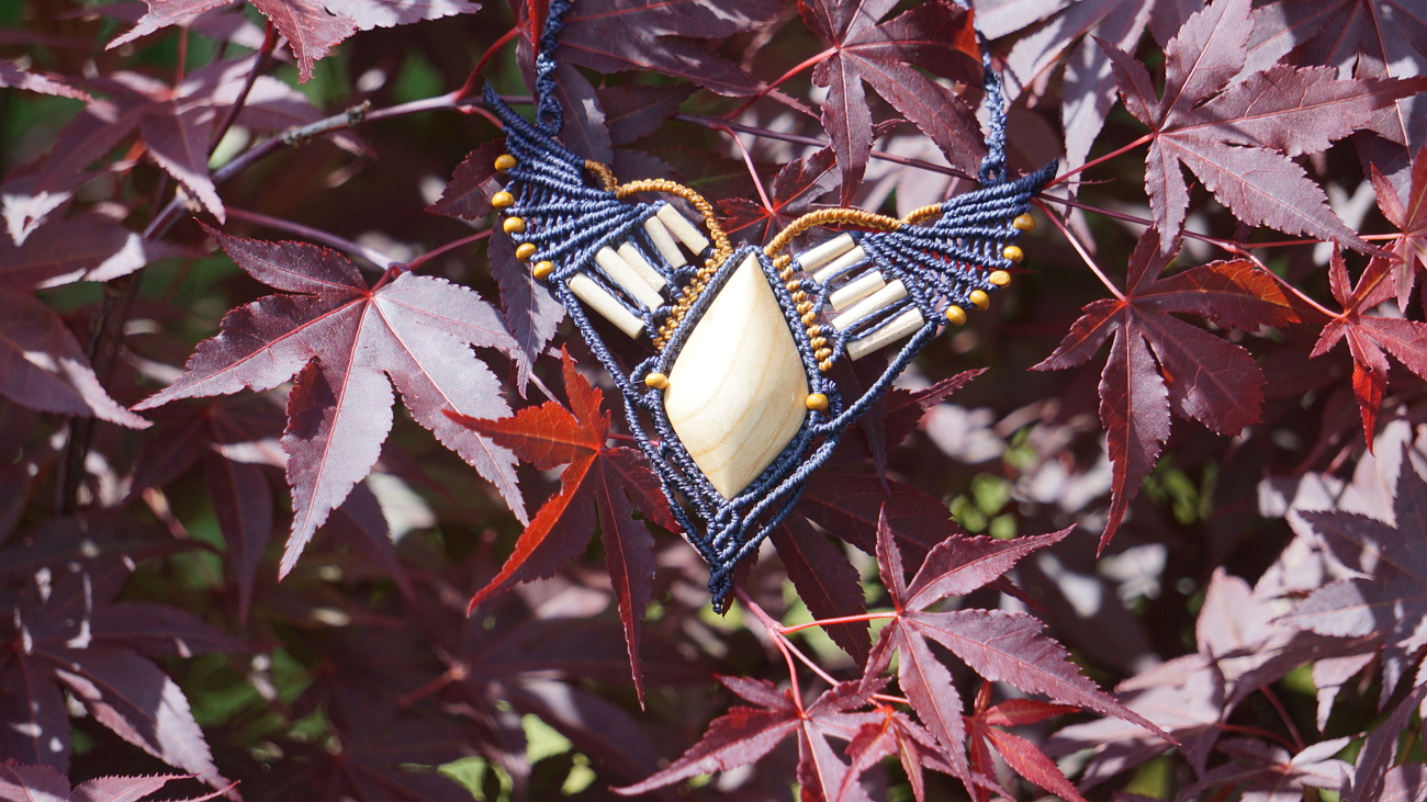 Šperk vznikl technikou micro macramé, což je uzlíkování pouze za pomoci šikovných prstů a fantazie. Používám brazilské povoskované šňůrky, které jsou jedny z nejkvalitnějších na světě pro svou pevnost a stálobarevnost.
