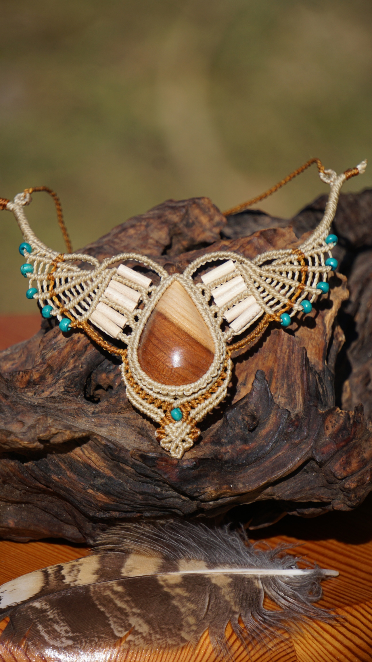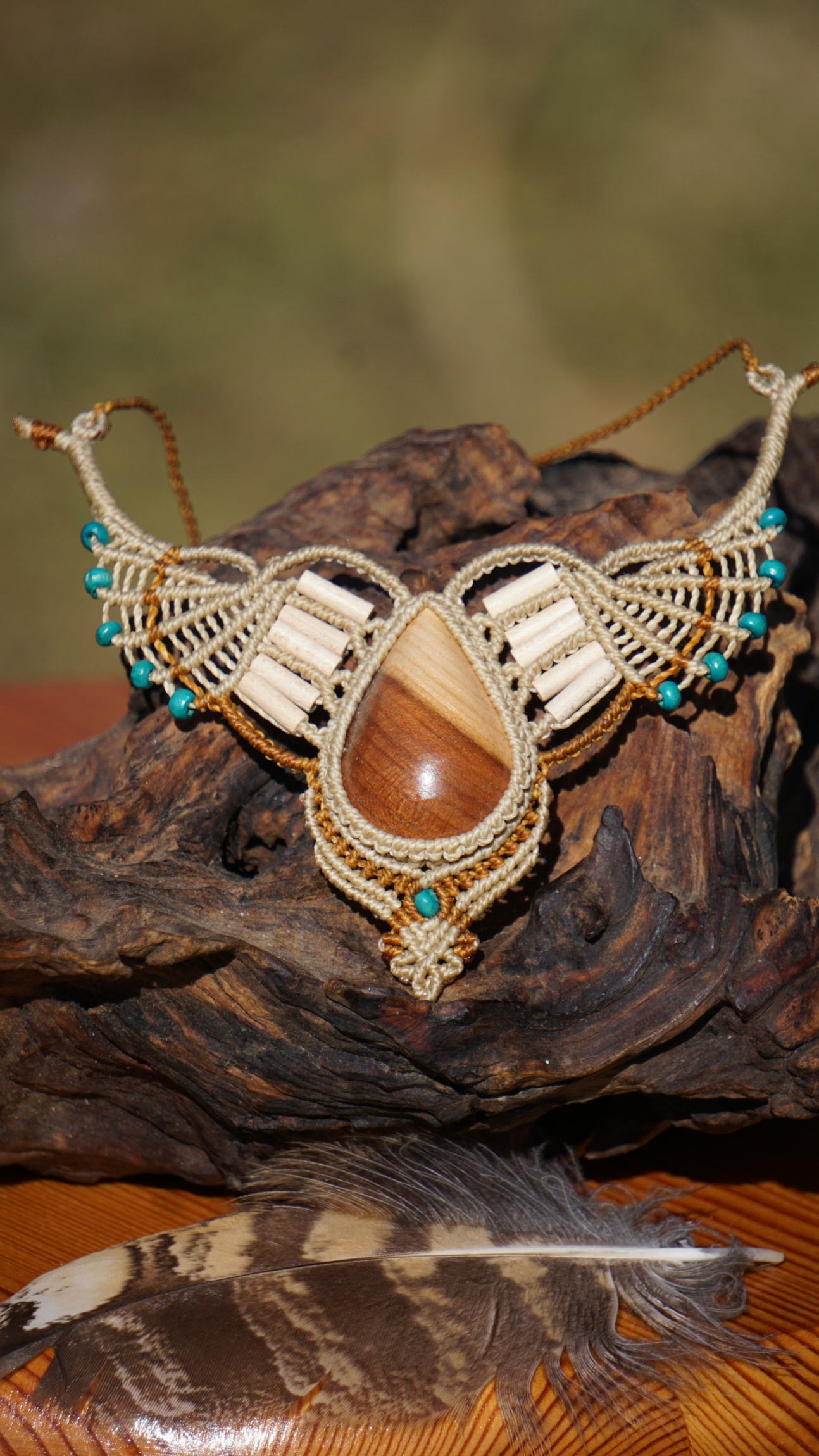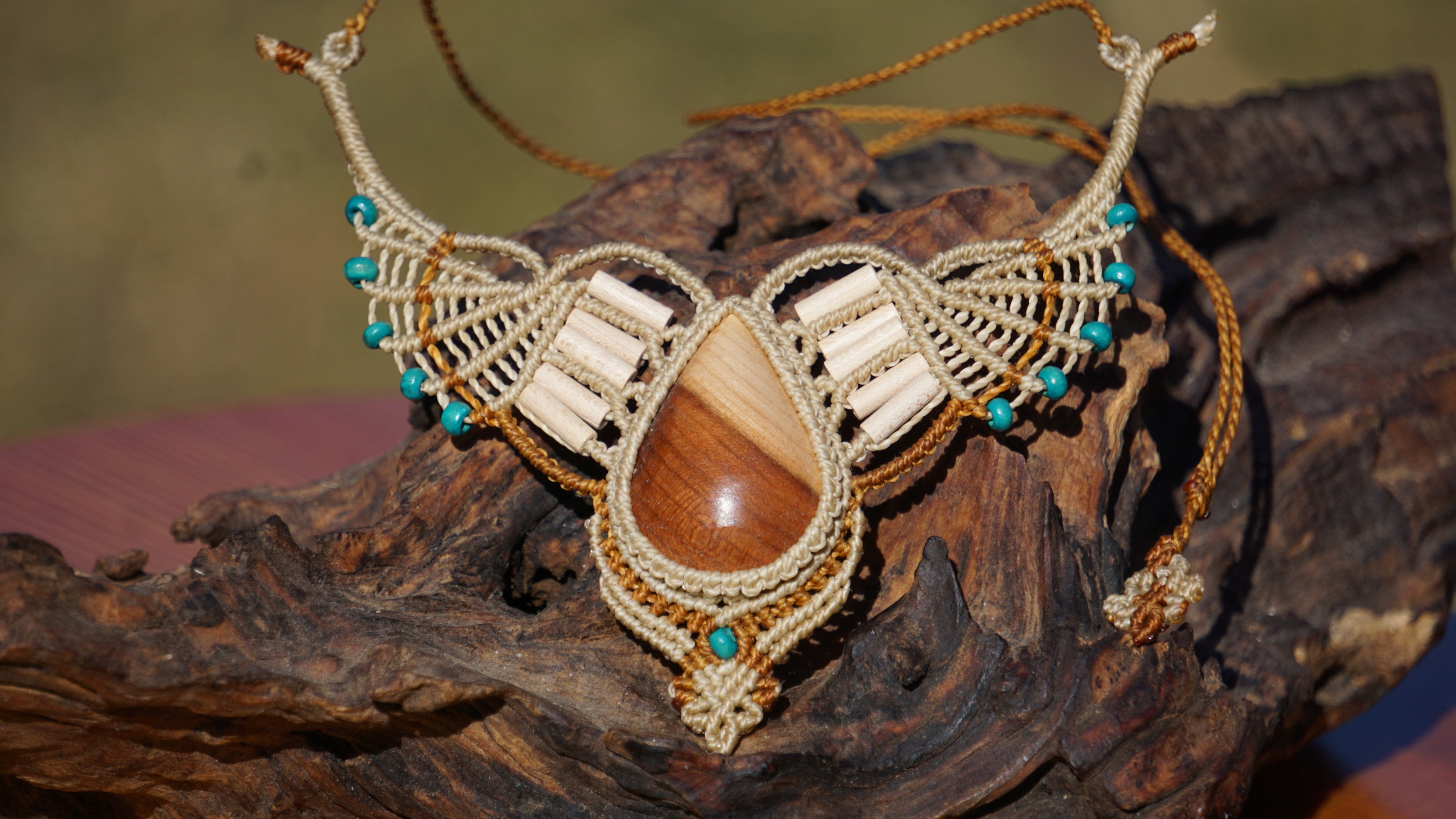Šperk vznikl technikou micro macramé, což uzlíkování pouze za pomoci šikovných prstů a fantasie. Používám brazilské povoskované šňůrky, které jsou jedny z nejkvalitnějších na světě pro svou pevnost a stálobarevnost.