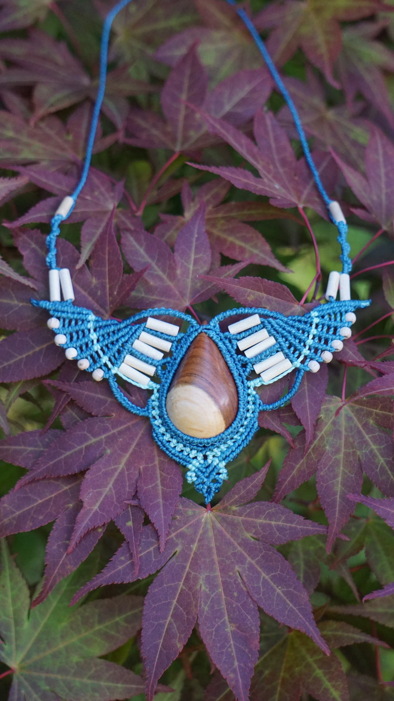 Šperk vznikl technikou micro macramé, což je uzlíkování pouze za pomoci šikovných prstů a fantazie. Používám brazilské povoskované šňůrky, které jsou jedny z nejkvalitnějších na světě pro svou pevnost a stálobarevnost.