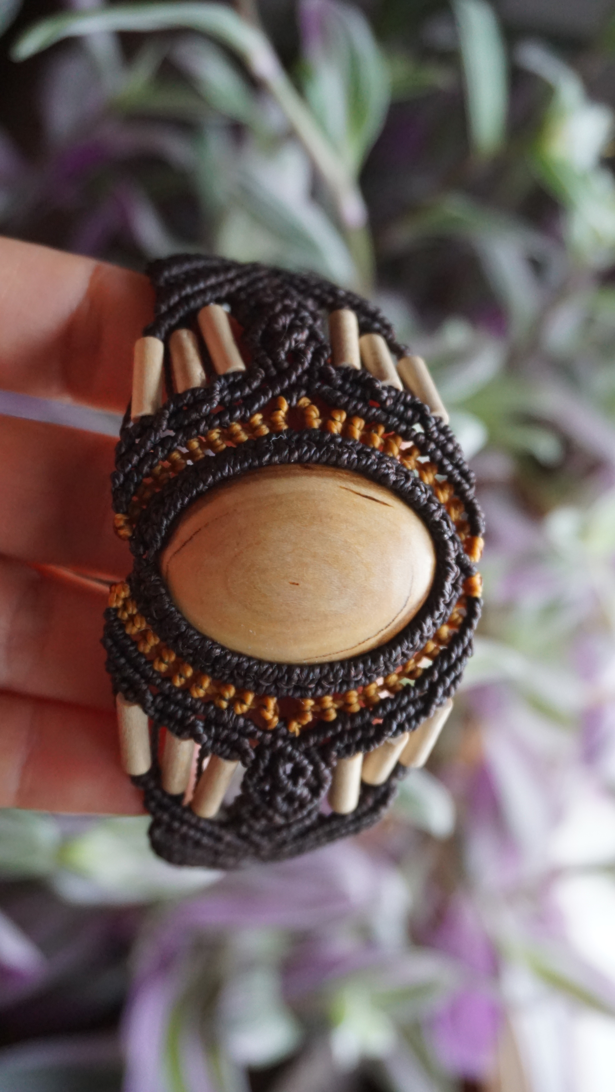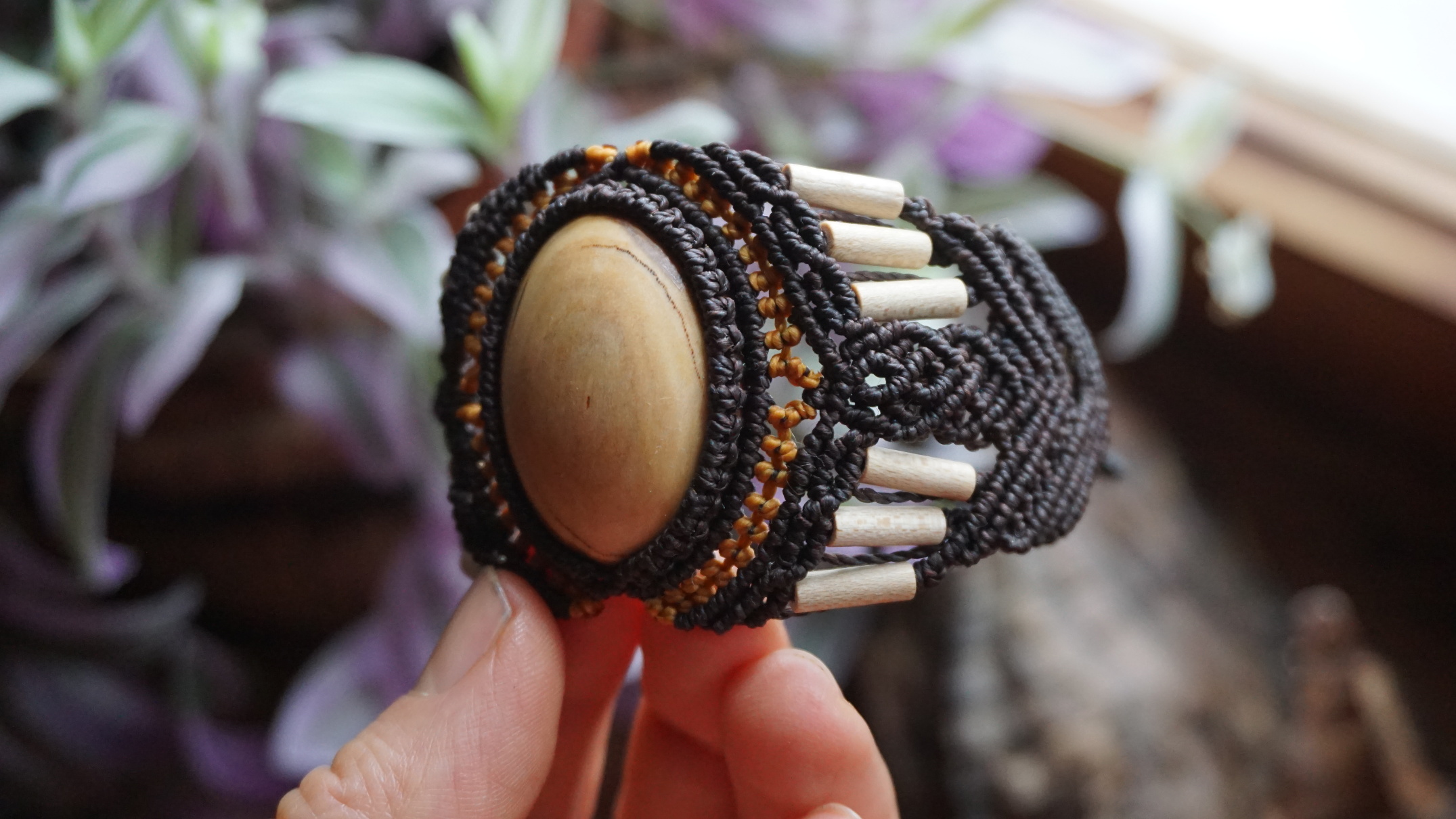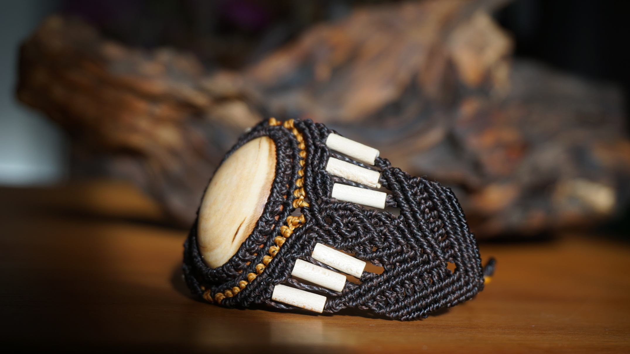 Šperk vznikl technikou micro macramé, což uzlíkování pouze za pomoci šikovných prstů a fantasie. Používám brazilské povoskované šňůrky, které jsou jedny z nejkvalitnějších na světě pro svou pevnost a stálobarevnost.