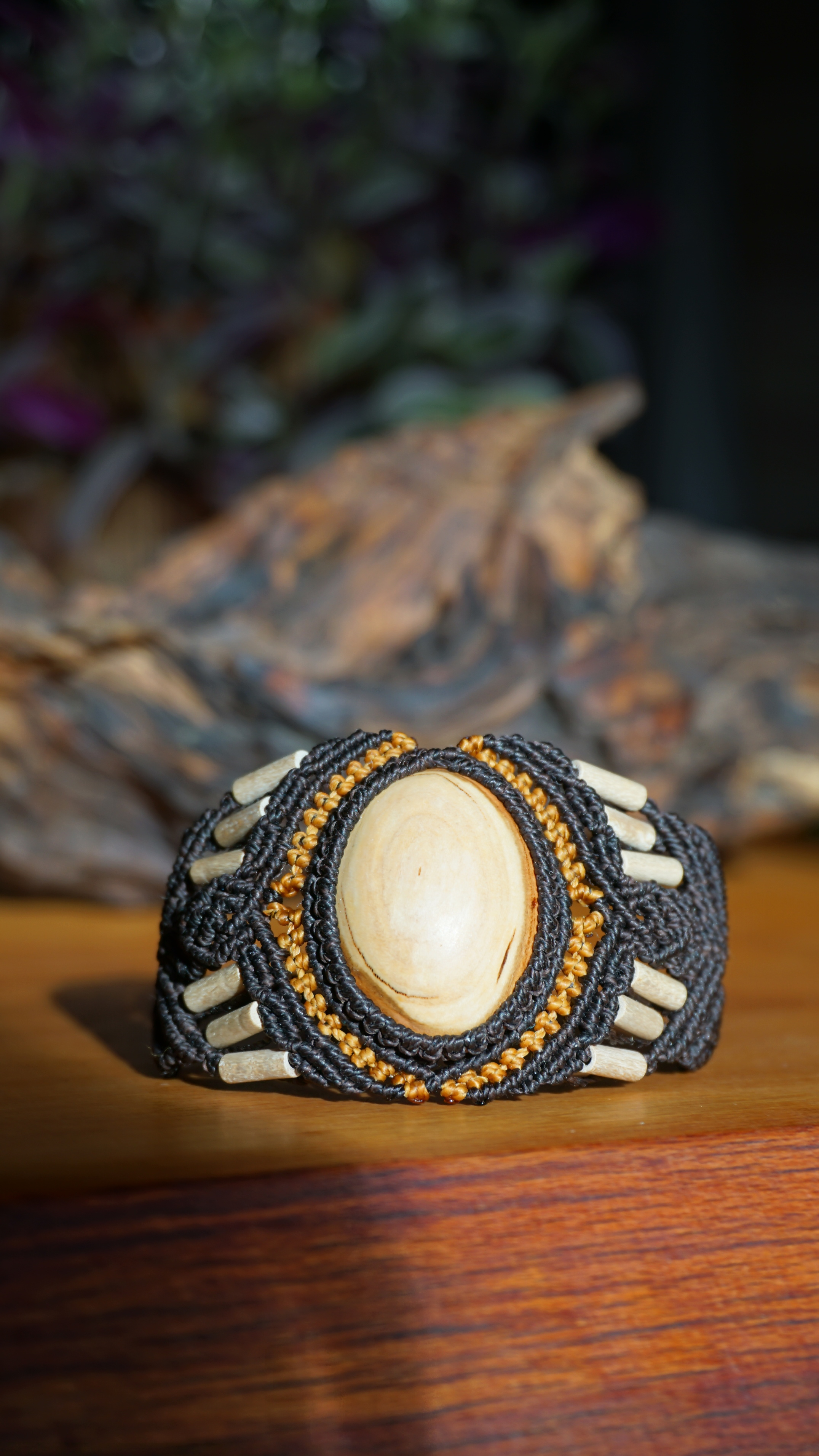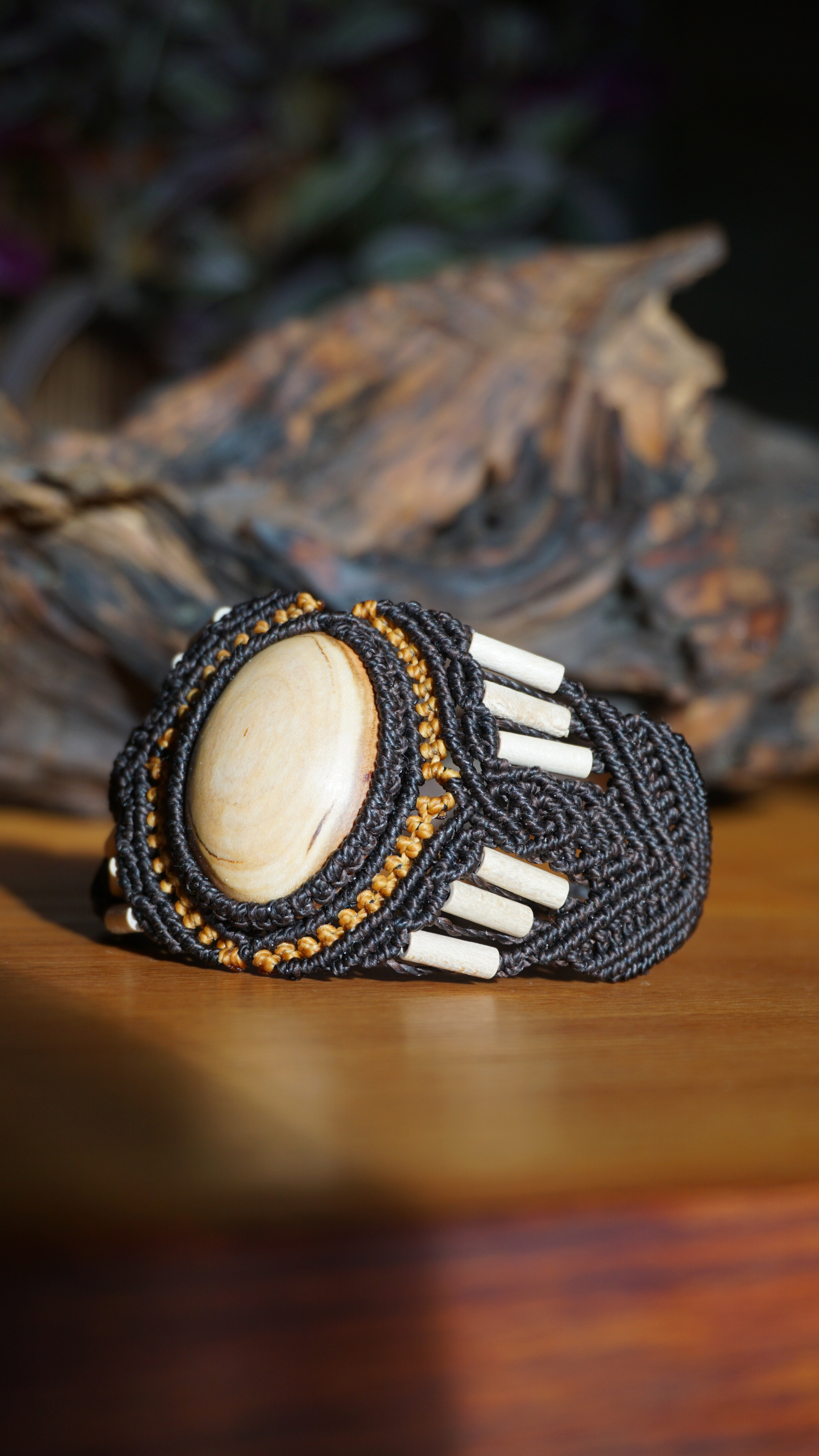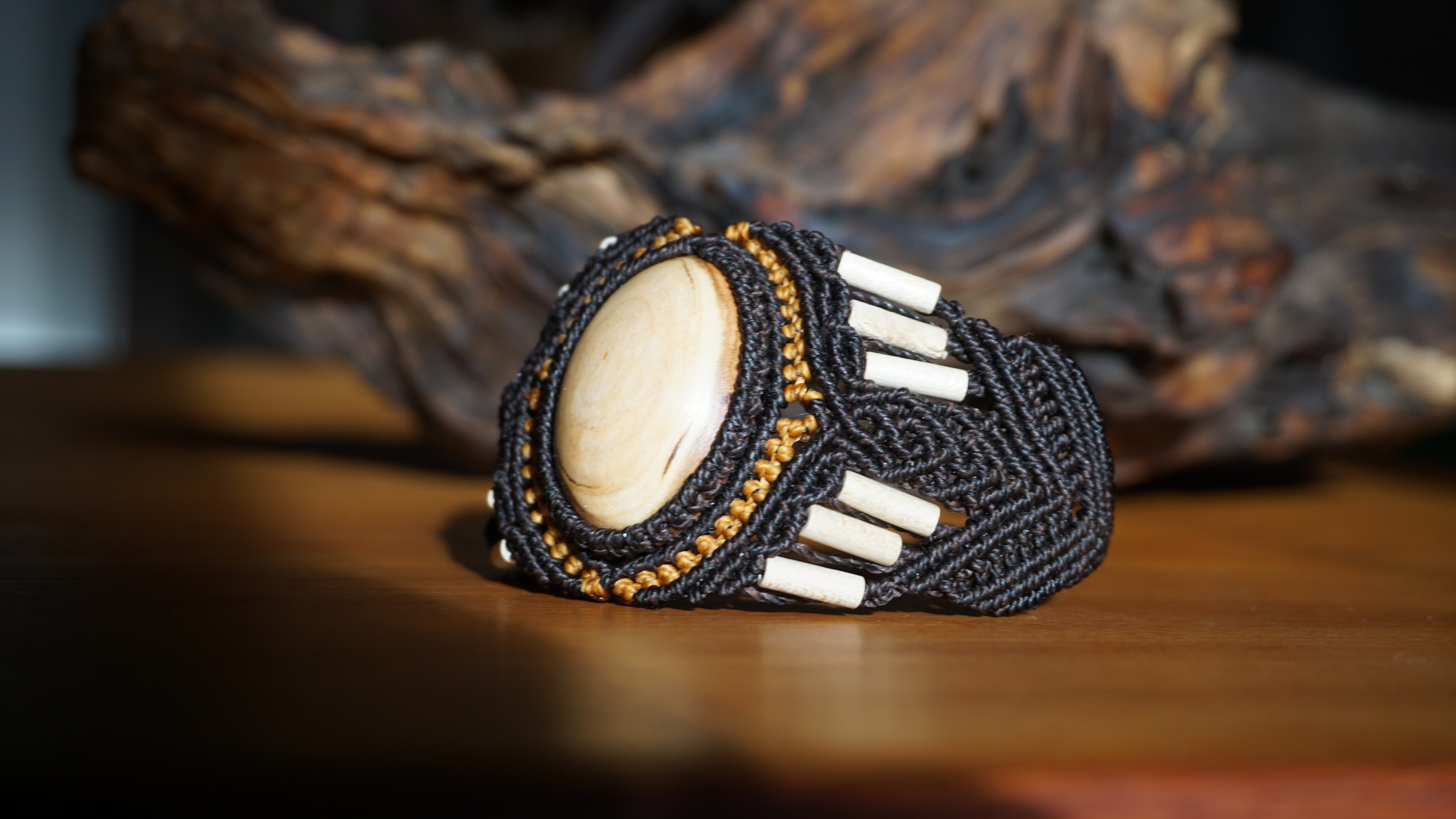 Šperk vznikl technikou micro macramé, což uzlíkování pouze za pomoci šikovných prstů a fantasie. Používám brazilské povoskované šňůrky, které jsou jedny z nejkvalitnějších na světě pro svou pevnost a stálobarevnost.