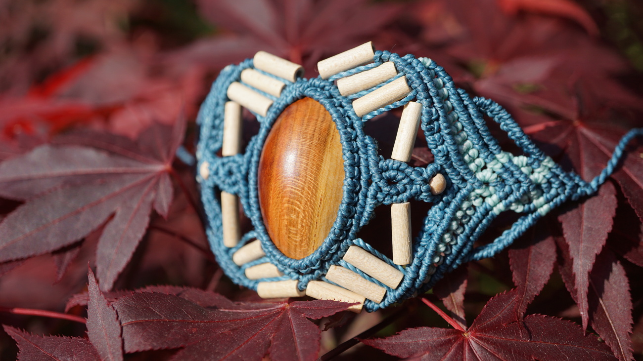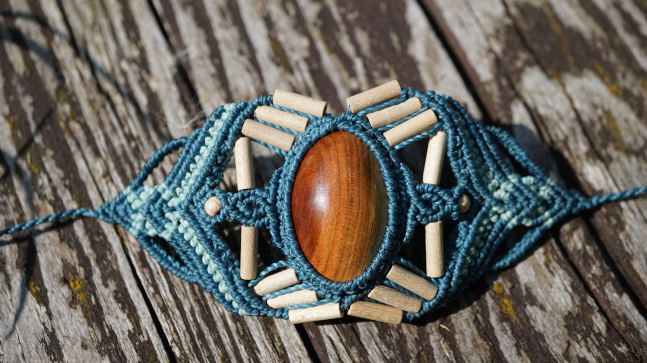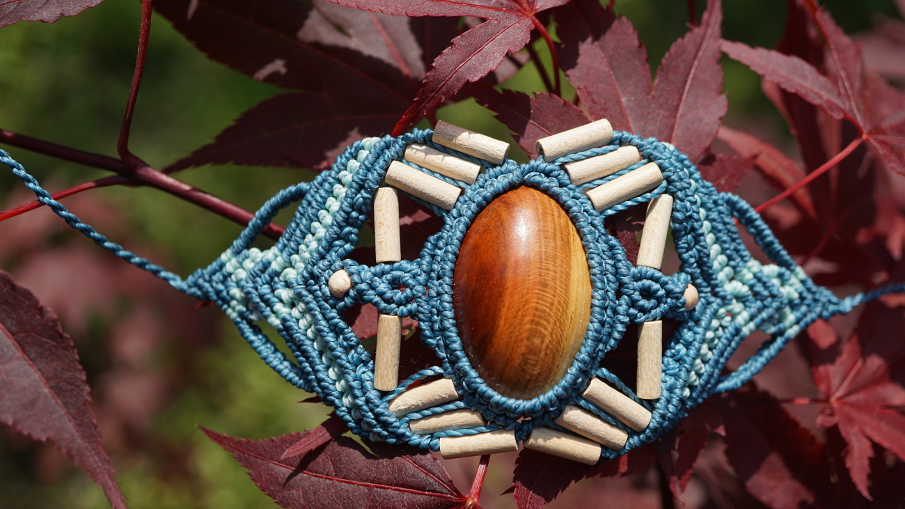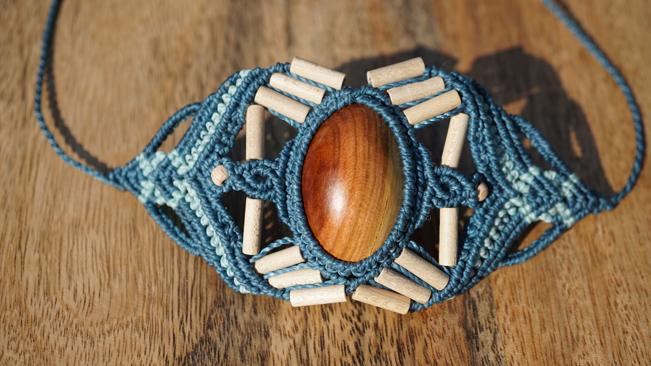Šperk vznikl technikou micro macramé, což uzlíkování pouze za pomoci šikovných prstů a fantasie. Používám brazilské povoskované šňůrky, které jsou jedny z nejkvalitnějších na světě pro svou pevnost a stálobarevnost.