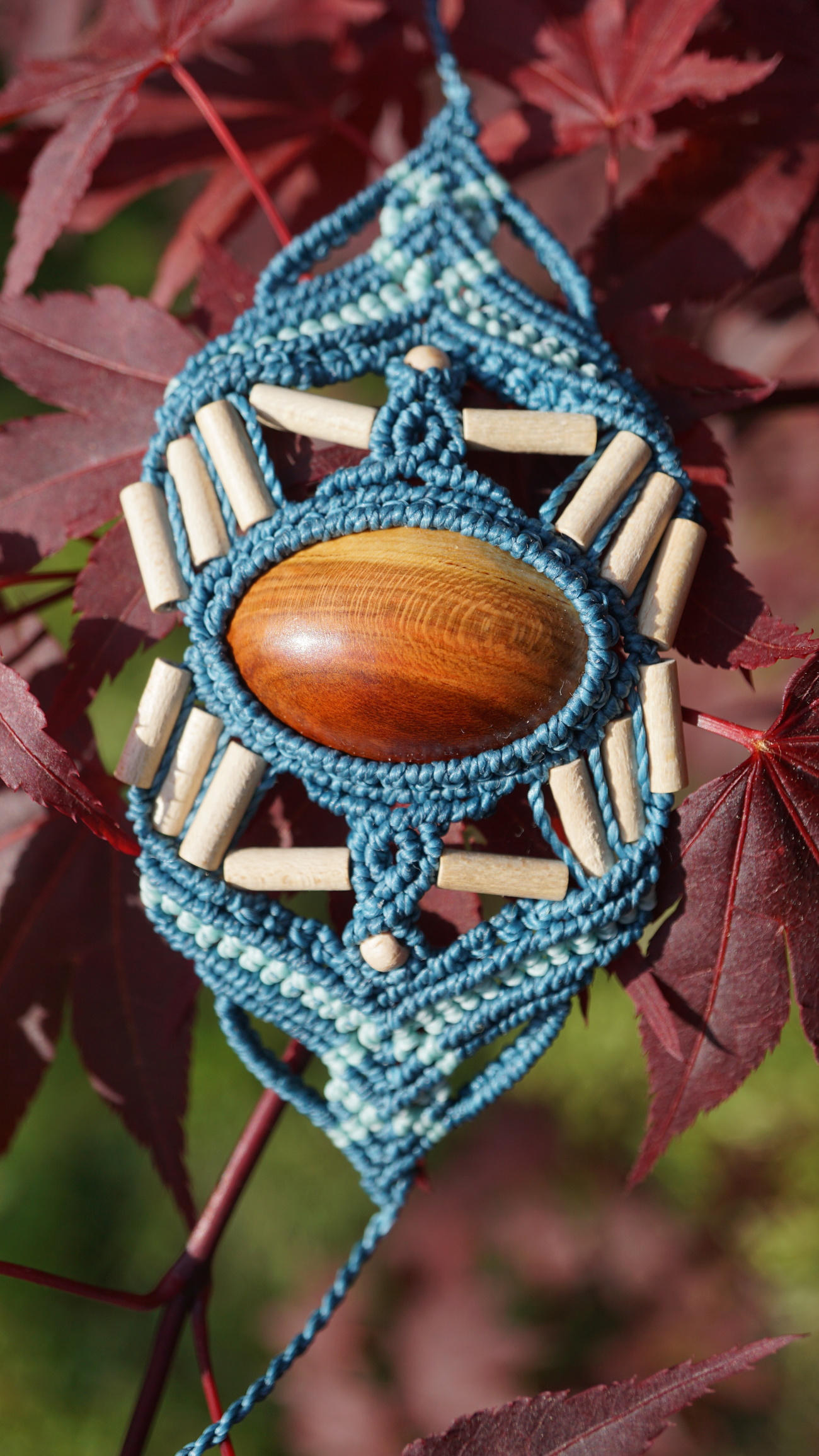 Šperk vznikl technikou micro macramé, což uzlíkování pouze za pomoci šikovných prstů a fantasie. Používám brazilské povoskované šňůrky, které jsou jedny z nejkvalitnějších na světě pro svou pevnost a stálobarevnost.