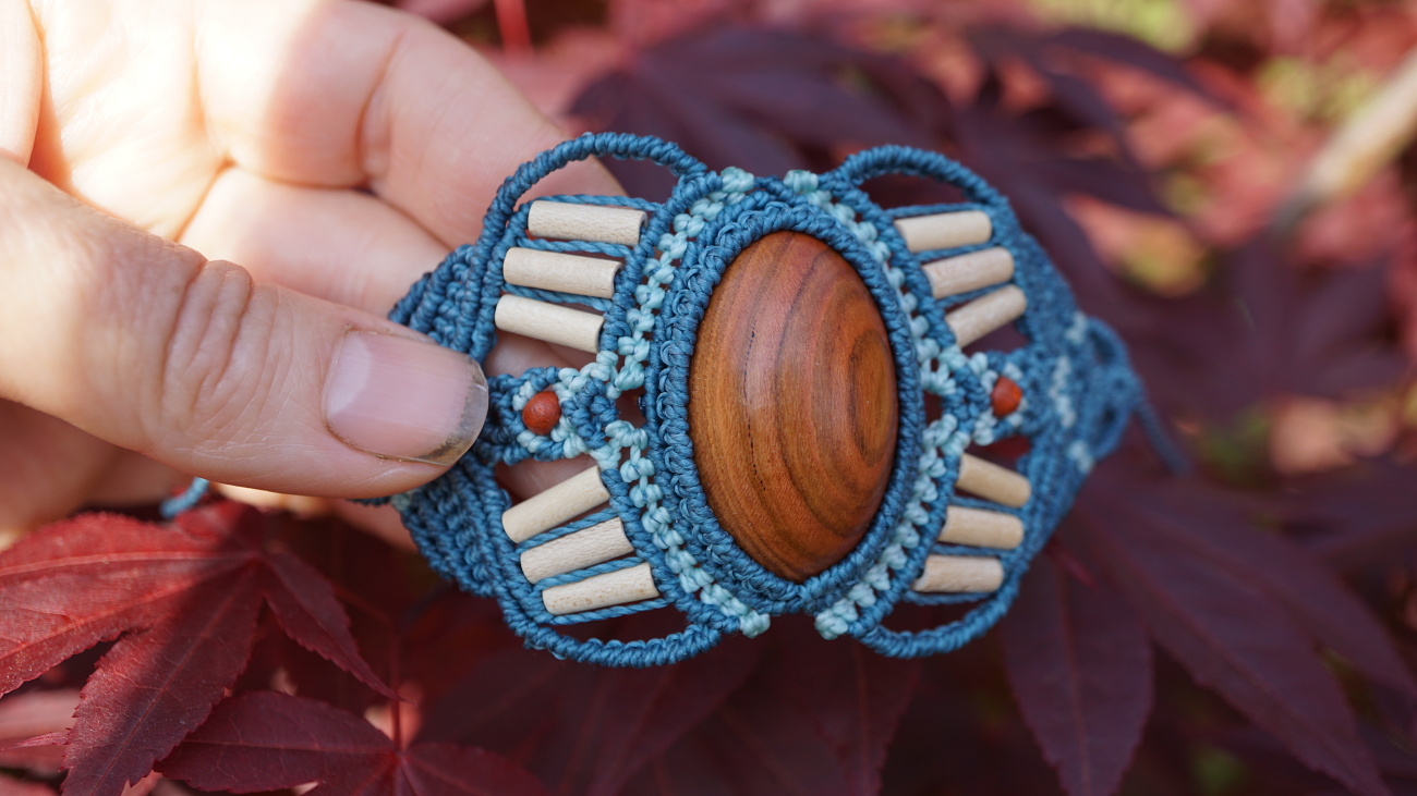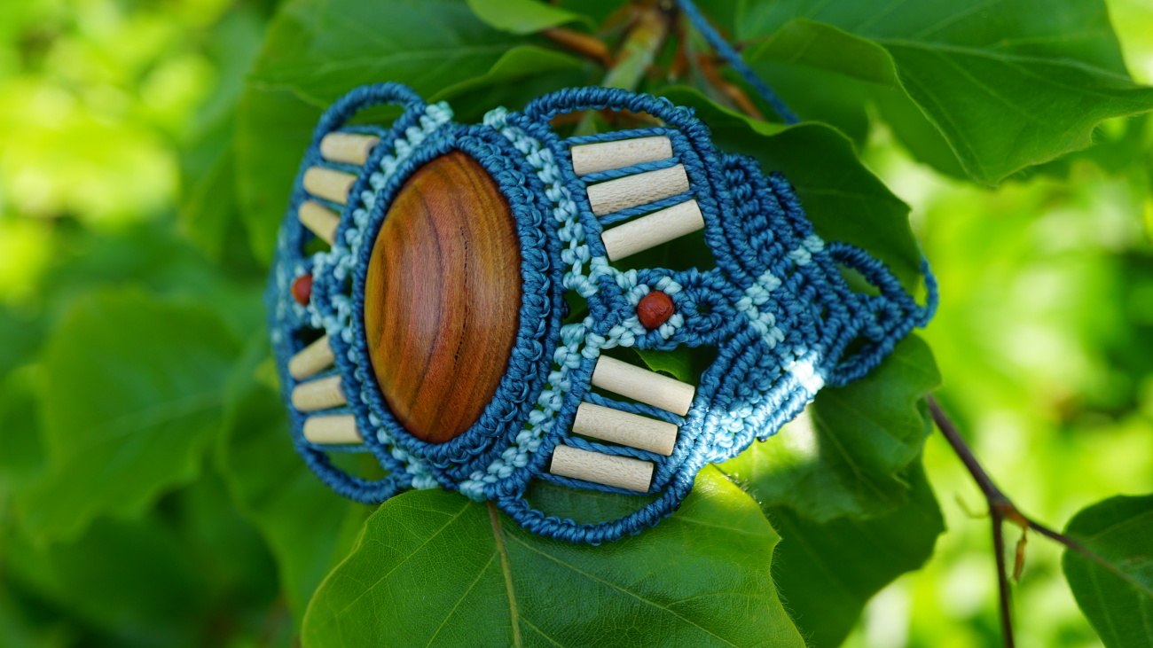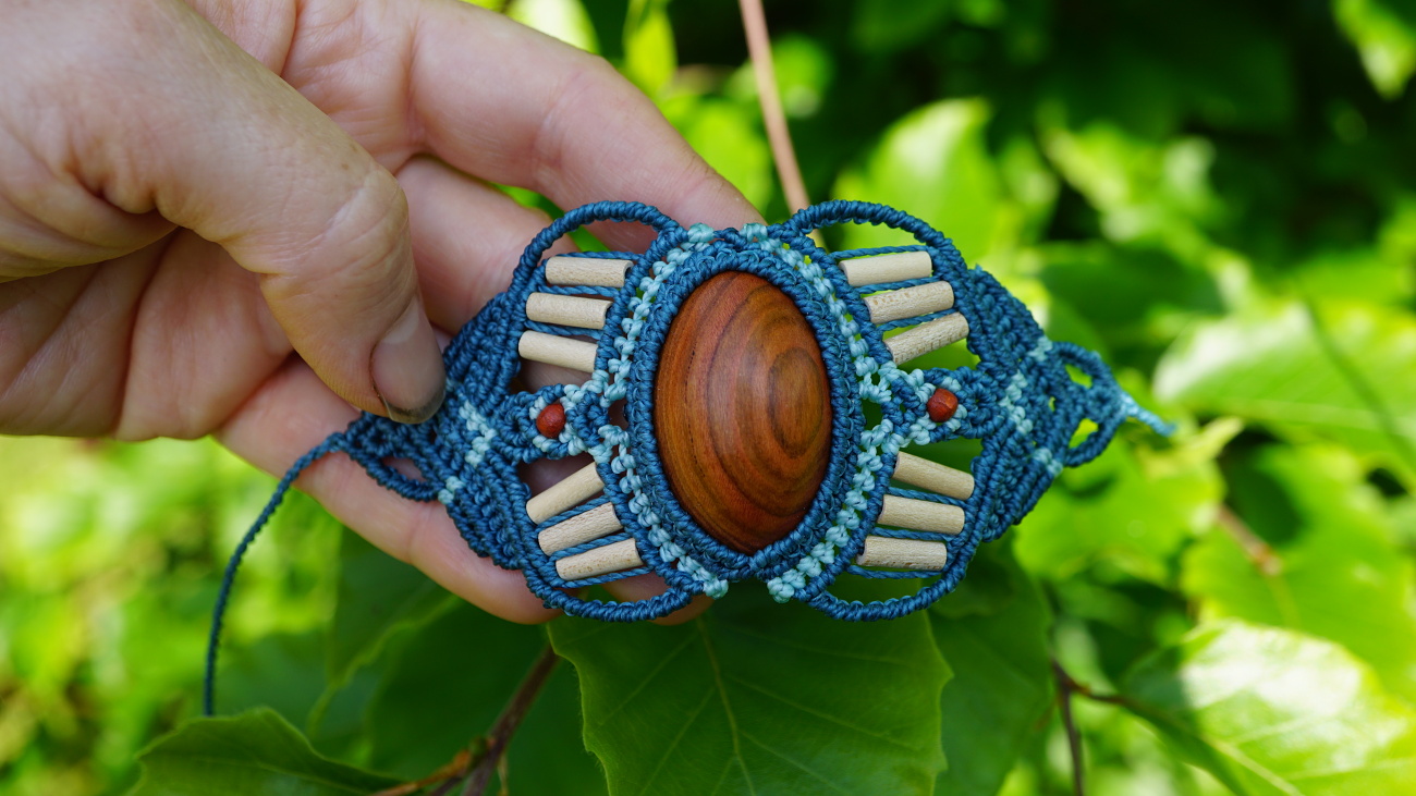 Šperk vznikl technikou micro macramé, což uzlíkování pouze za pomoci šikovných prstů a fantasie. Používám brazilské povoskované šňůrky, které jsou jedny z nejkvalitnějších na světě pro svou pevnost a stálobarevnost.
