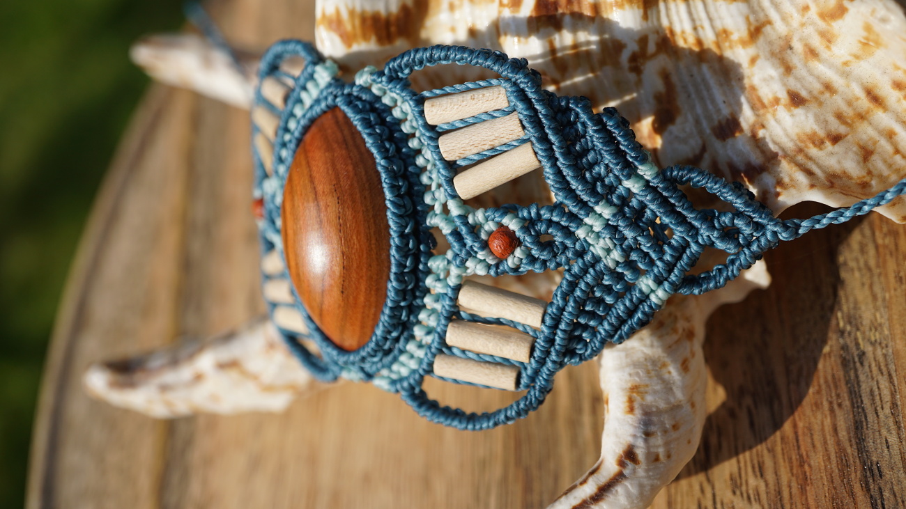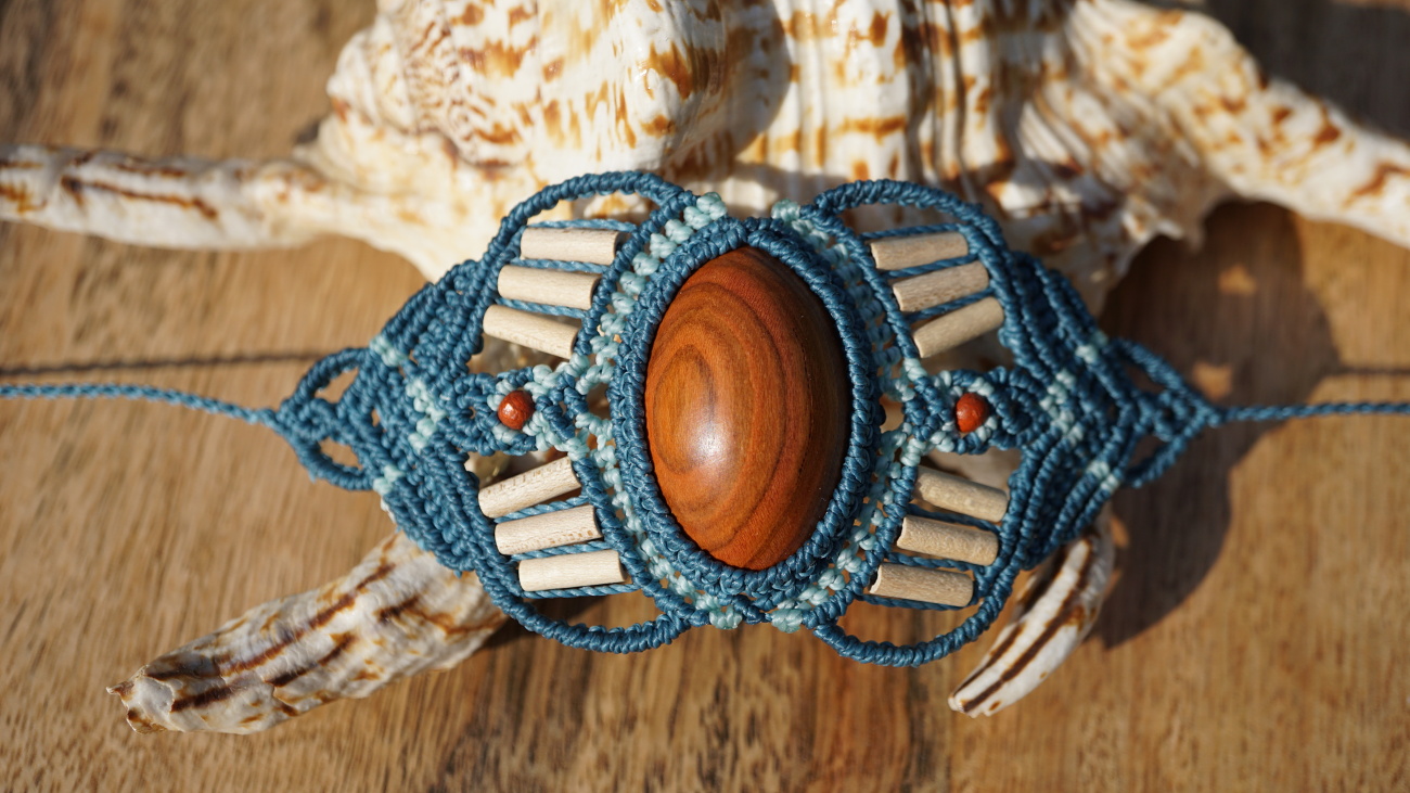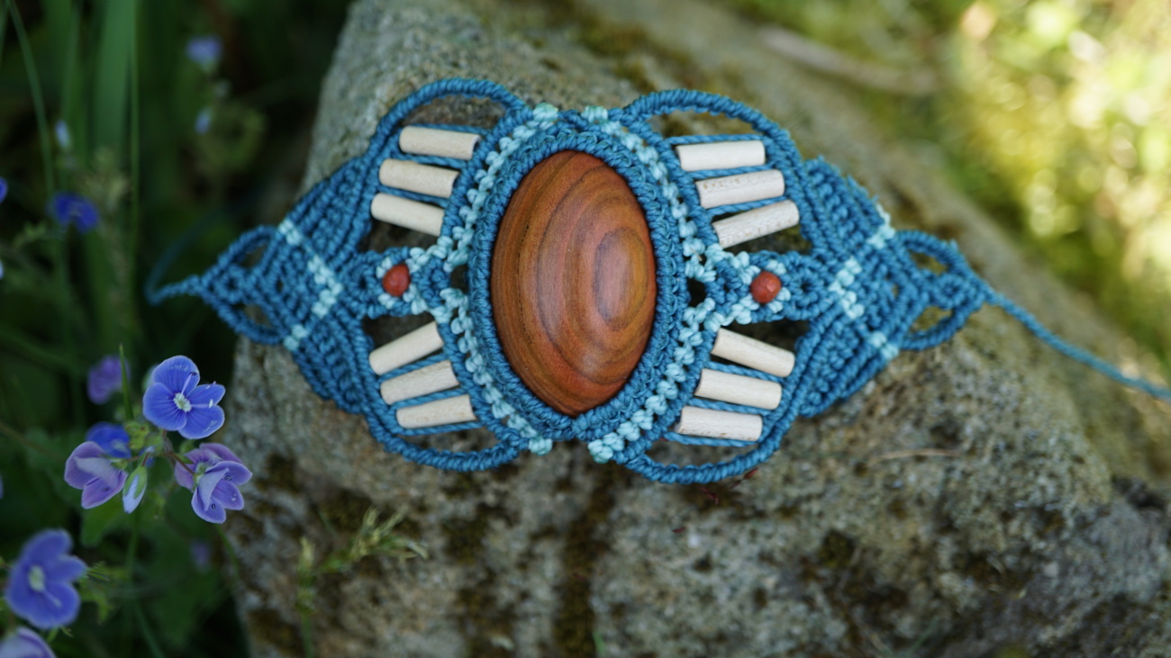 Šperk vznikl technikou micro macramé, což uzlíkování pouze za pomoci šikovných prstů a fantasie. Používám brazilské povoskované šňůrky, které jsou jedny z nejkvalitnějších na světě pro svou pevnost a stálobarevnost.