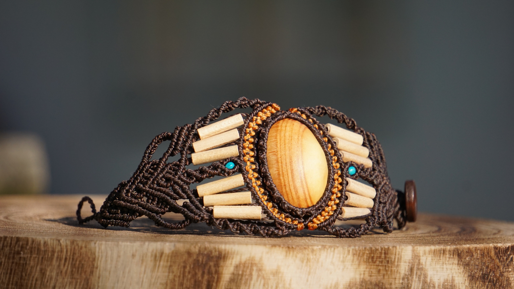Šperk vznikl technikou micro macramé, což uzlíkování pouze za pomoci šikovných prstů a fantasie. Používám brazilské povoskované šňůrky, které jsou jedny z nejkvalitnějších na světě pro svou pevnost a stálobarevnost.