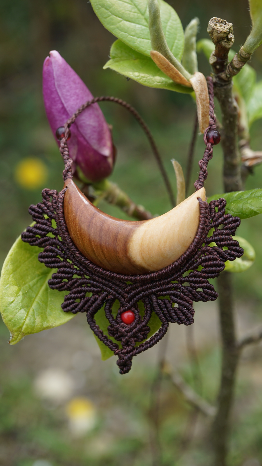 Dřevo uprostřed šperku je švestkové z podhůří Orlických hor, z LetoHradu. Indiáni věří, že každý strom je jako anténa napojená na jednu z planet.