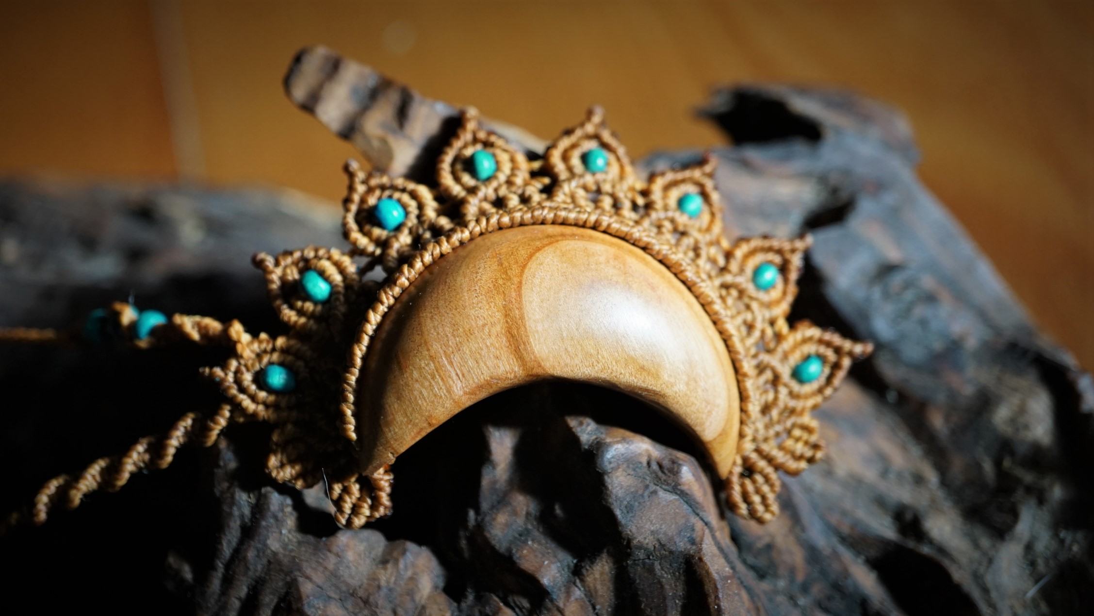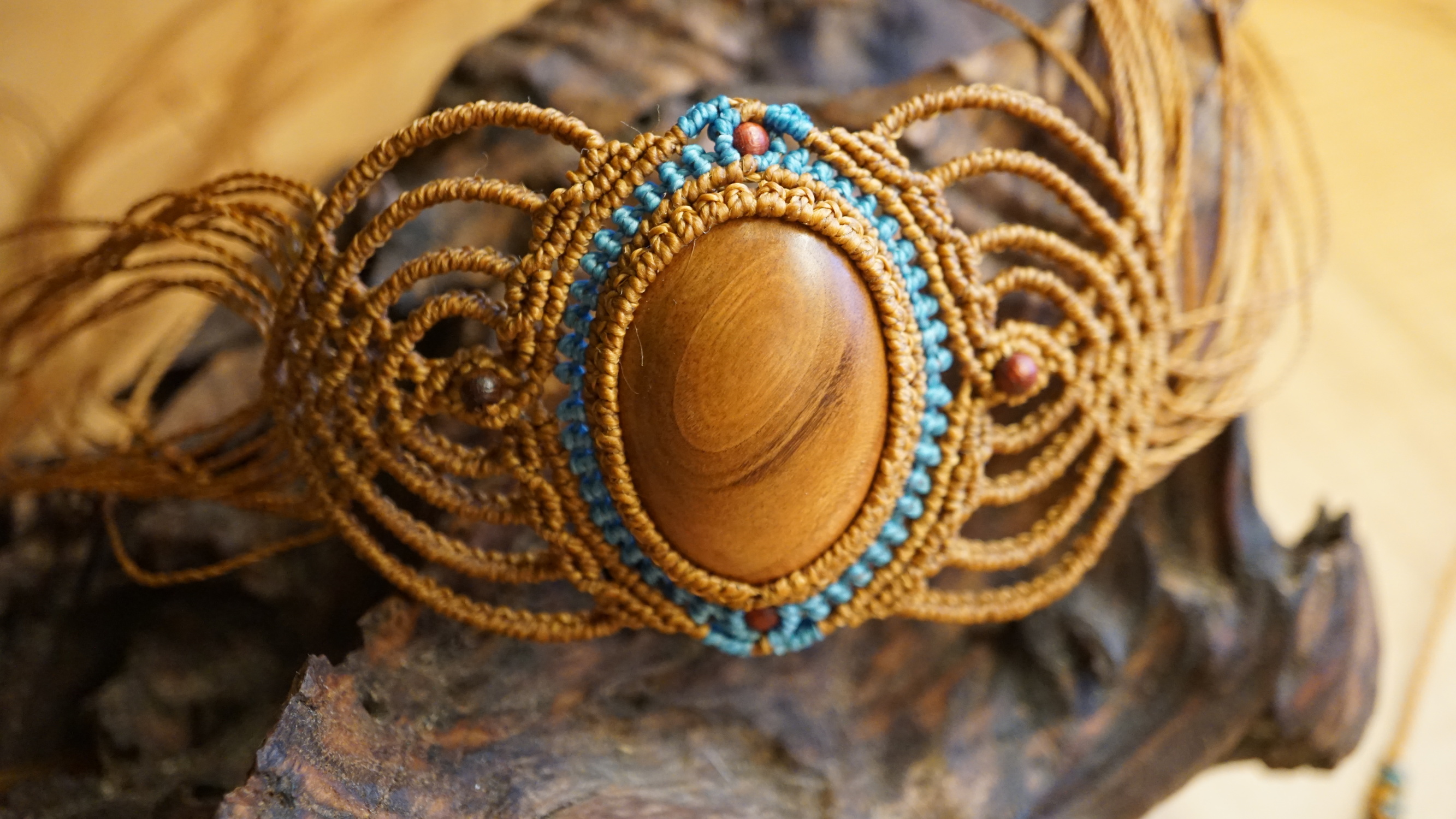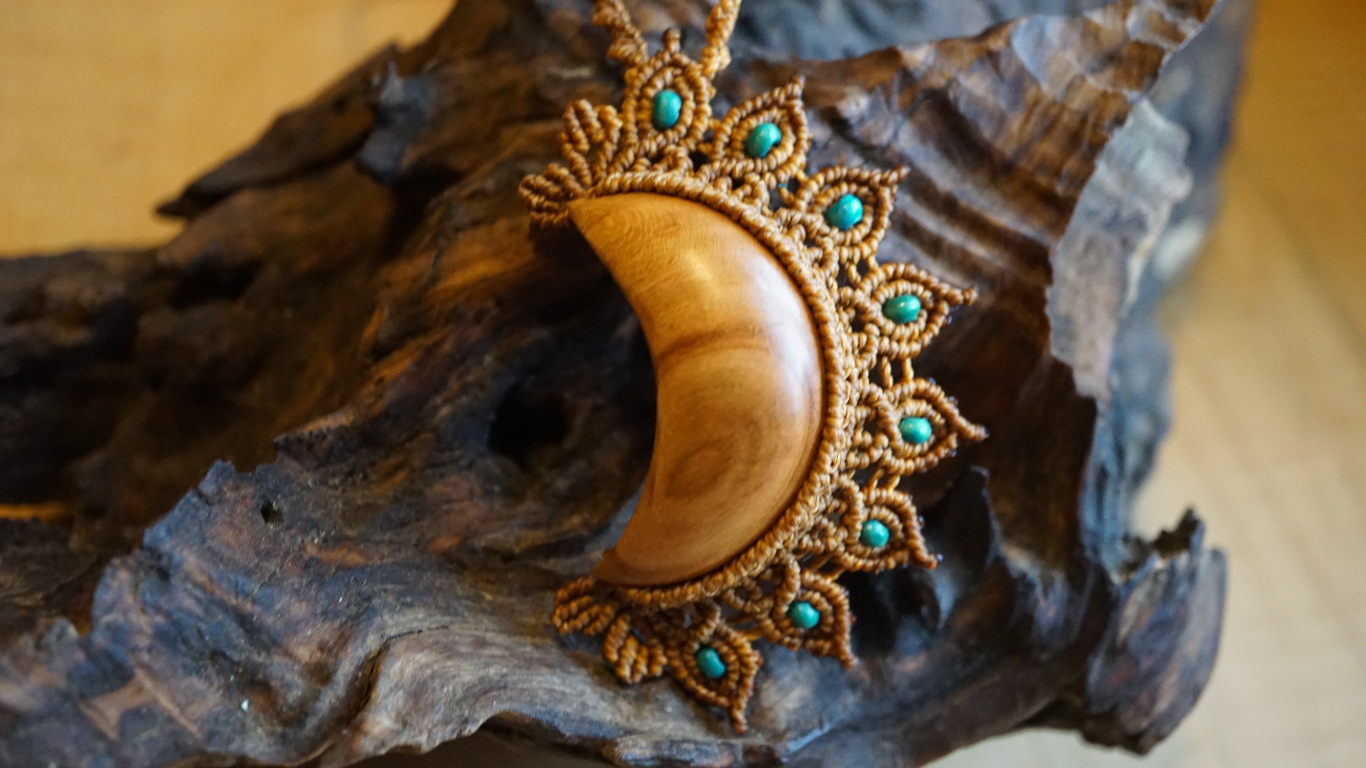 Dřevo uprostřed šperku je třešňové z podhůří Orlických hor. Indiáni věří, že každý strom je jako anténa napojená na jednu z planet. Třešeň je napojena na Lunu, je tedy velmi důležitá pro ženy, jejich cykličnost a proměnlivost. Je v ní velmi jemná a něžná, přesto mocná energie.