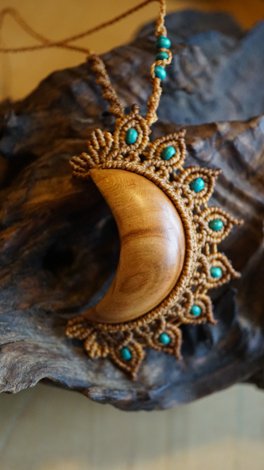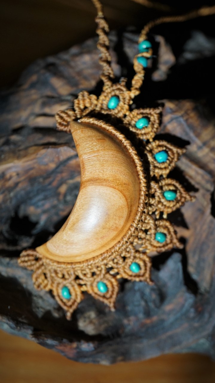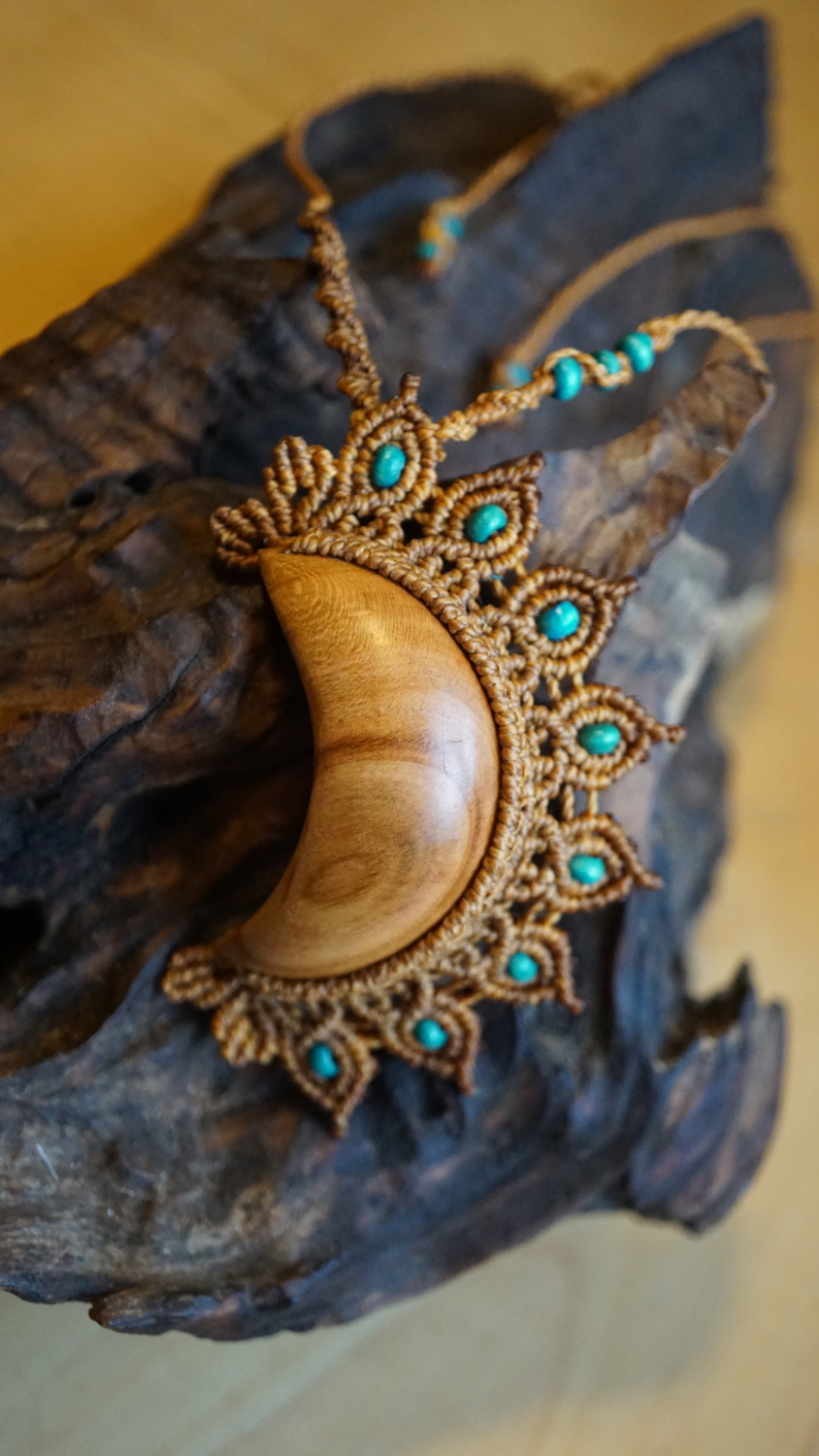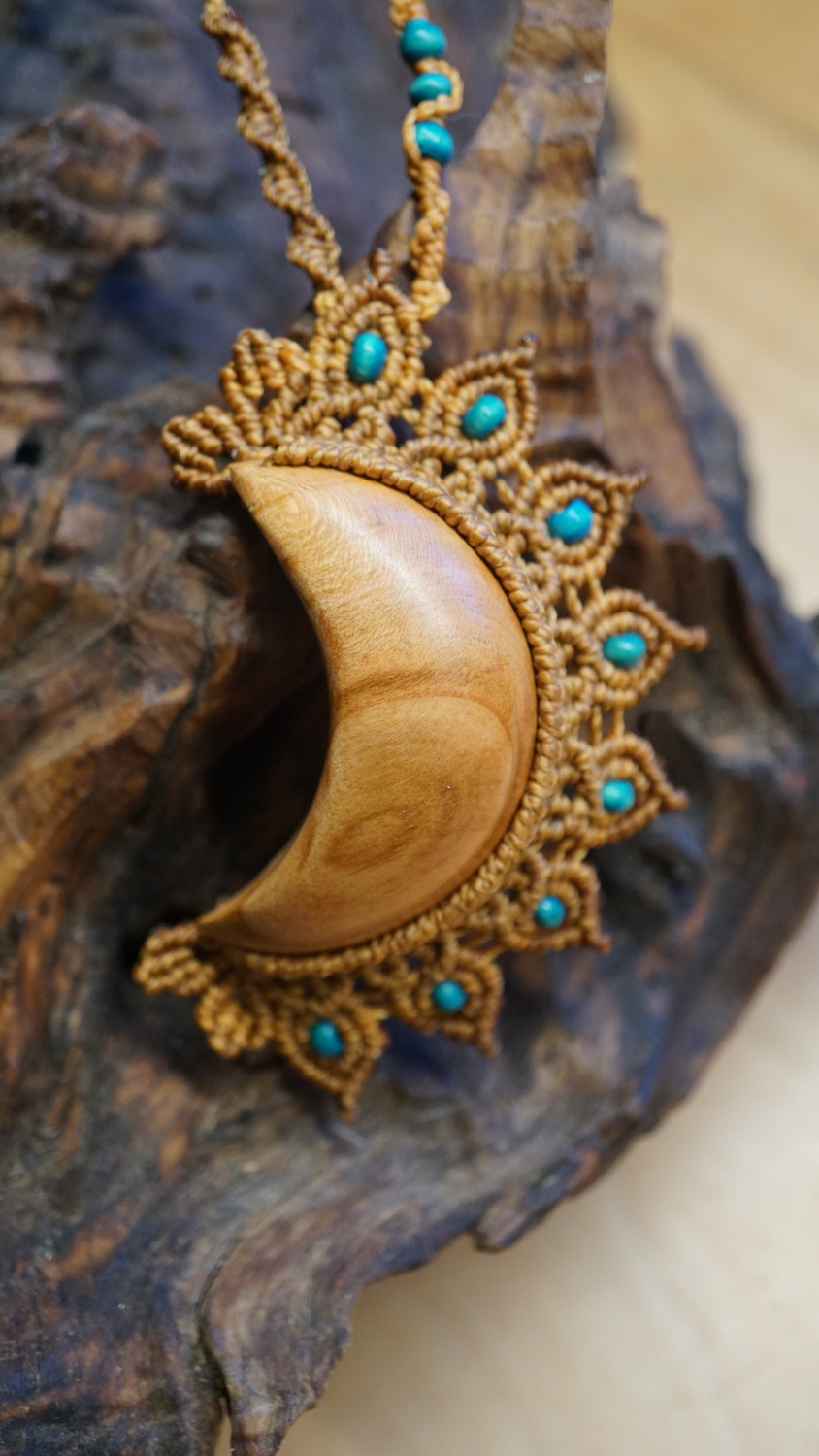 Dřevo uprostřed šperku je třešňové z podhůří Orlických hor. Indiáni věří, že každý strom je jako anténa napojená na jednu z planet. Třešeň je napojena na Lunu, je tedy velmi důležitá pro ženy, jejich cykličnost a proměnlivost. Je v ní velmi jemná a něžná, přesto mocná energie.