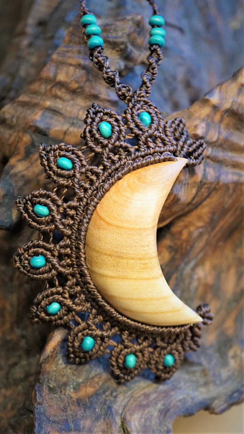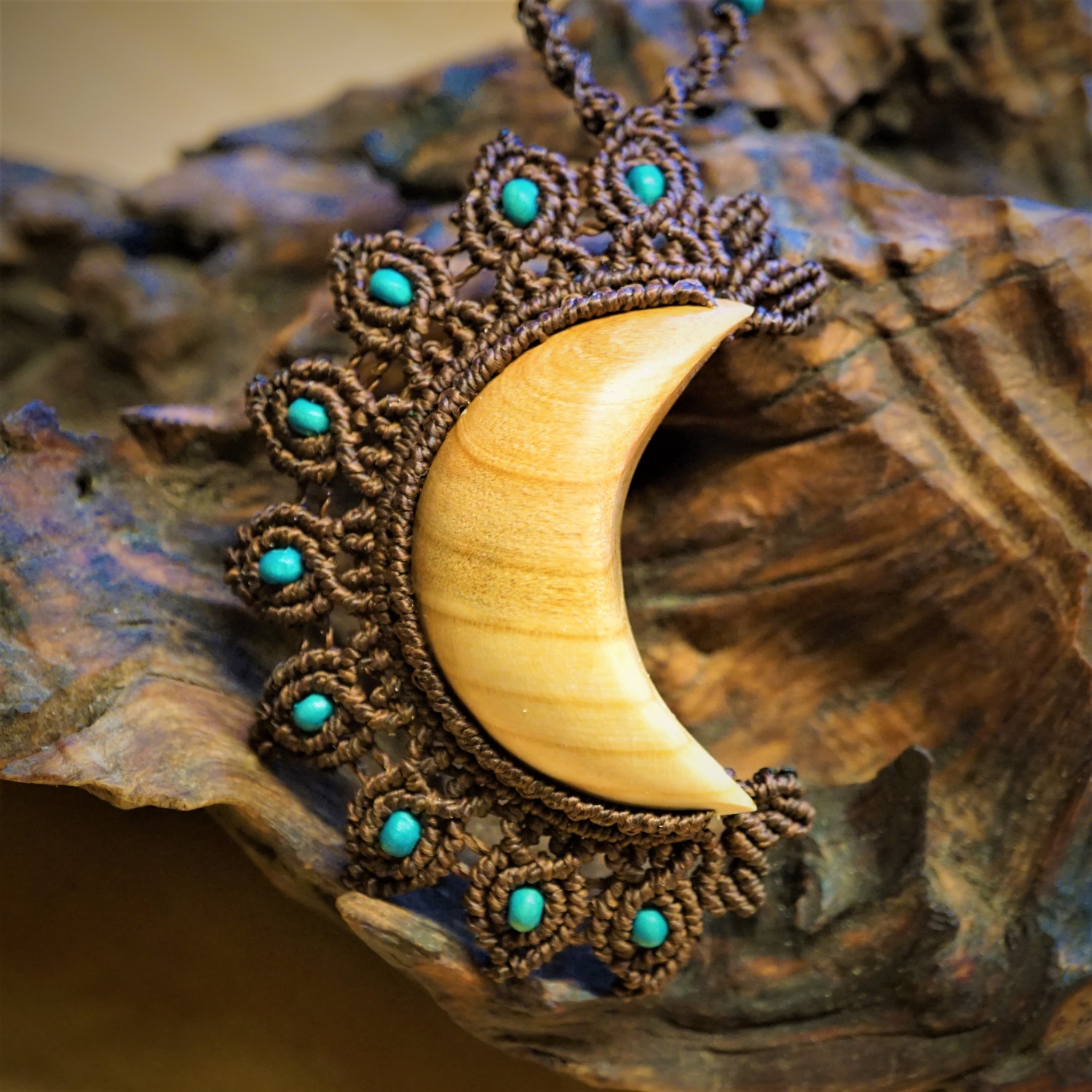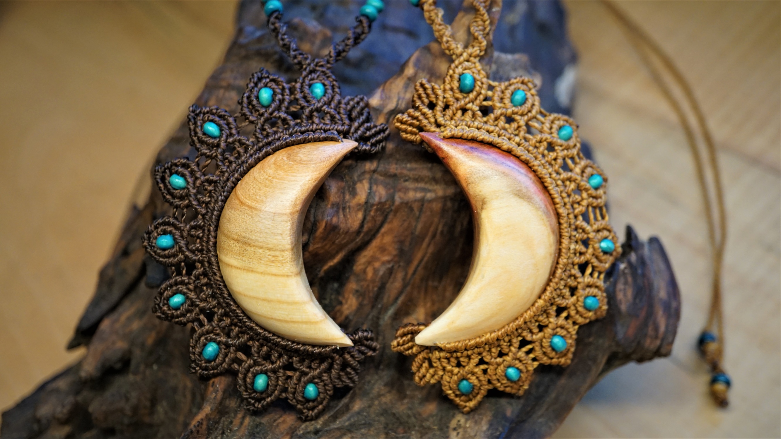 Dřevo uprostřed šperku je třešňové z podhůří Orlických hor. Indiáni věří, že každý strom je jako anténa napojená na jednu z planet. Třešeň je napojena na Lunu, je tedy velmi důležitá pro ženy, jejich cykličnost a proměnlivost. Je v ní velmi jemná a něžná, přesto mocná energie.