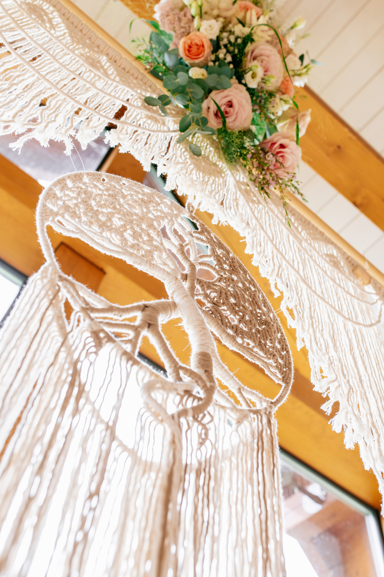 - dva boční samostané macramé závěsy s lotosovými květy (2 x 65 cm)