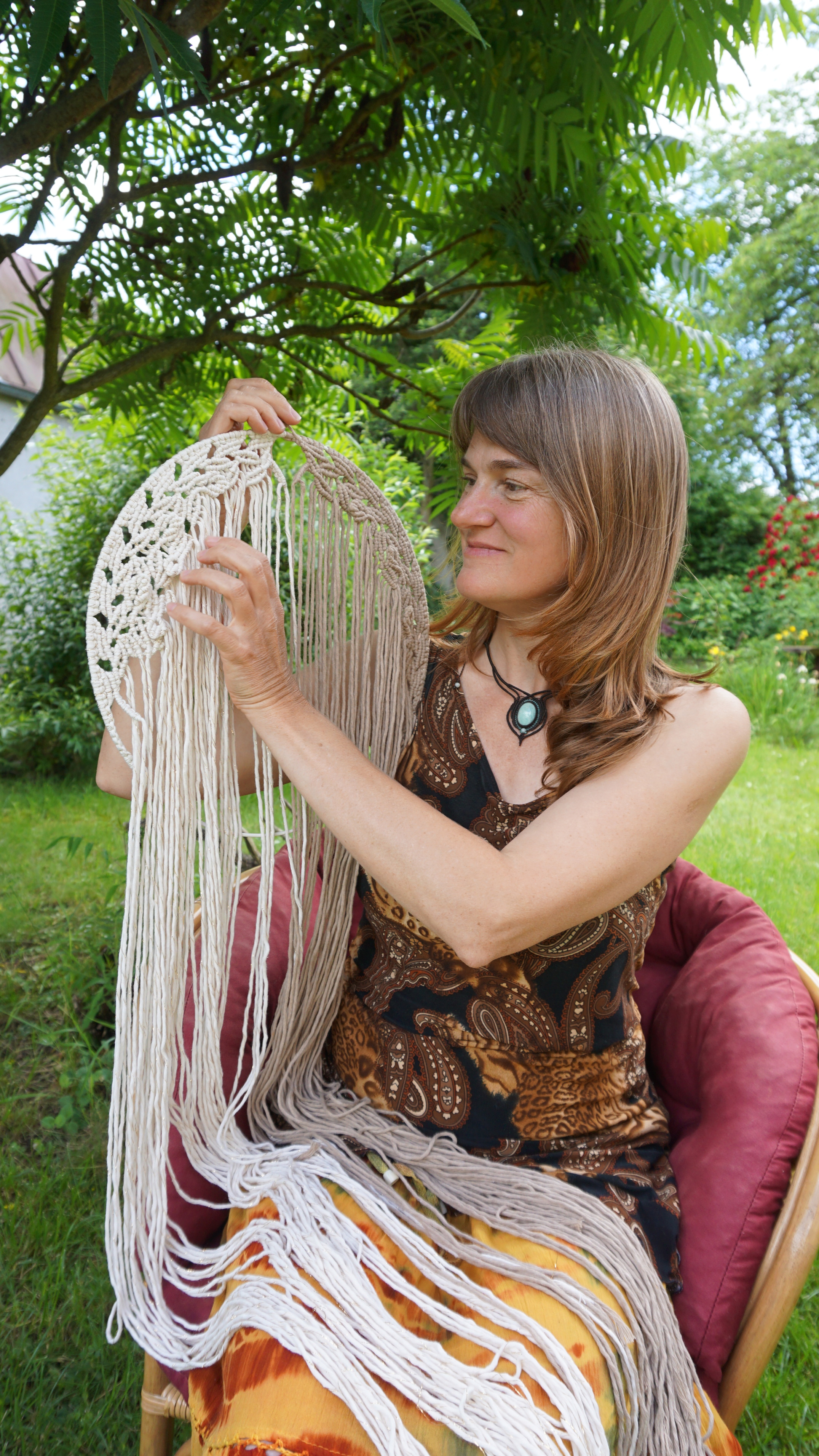 - dva boční samostané macramé závěsy s lotosovými květy (2 x 65 cm)