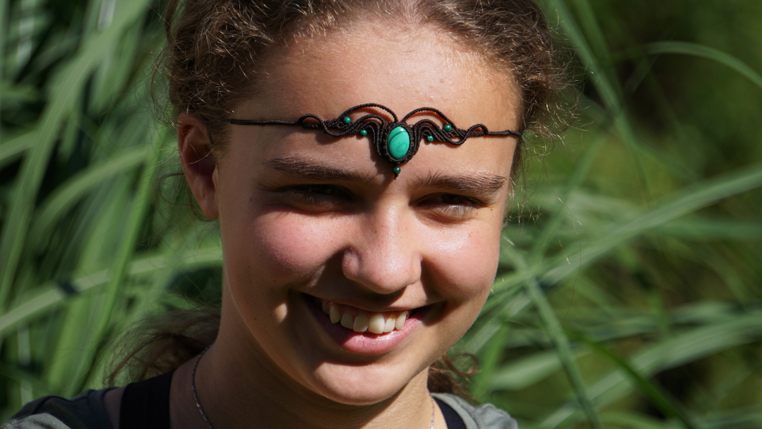 Nádherná, velmi jemná a precizní čelenka s malachitem.
