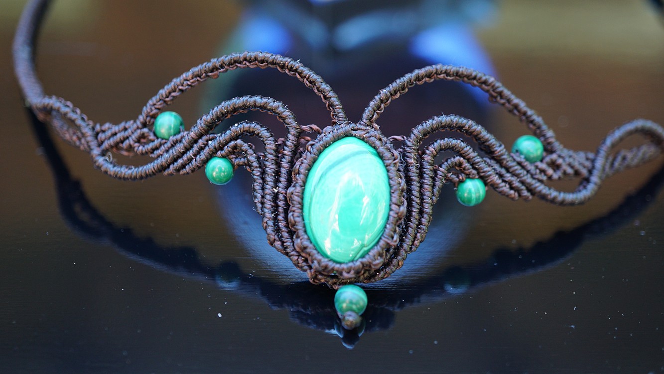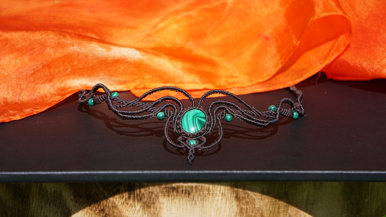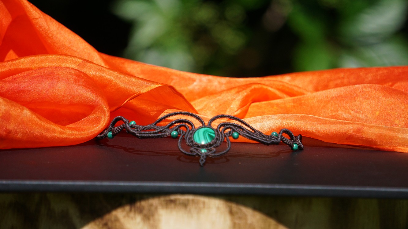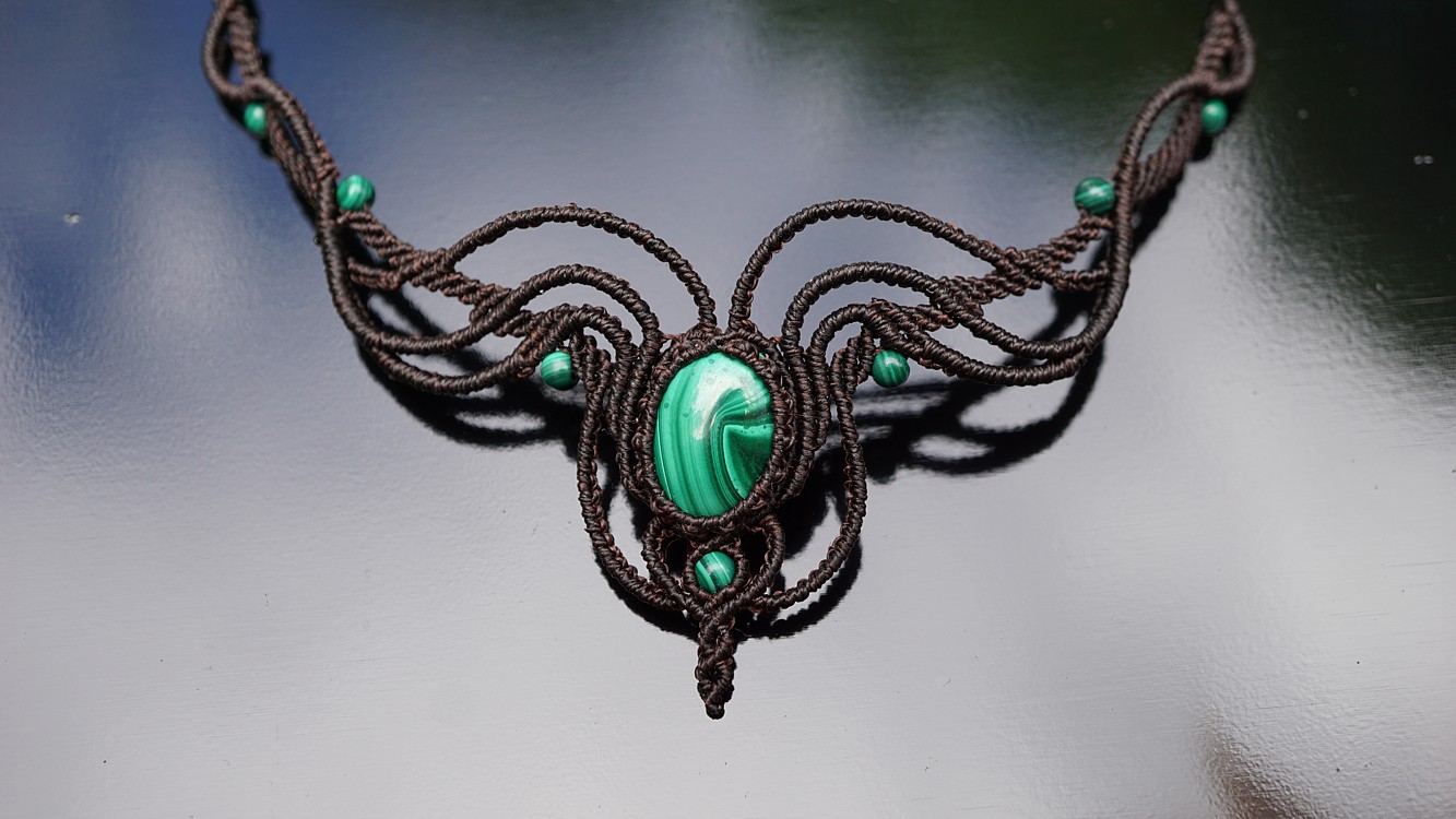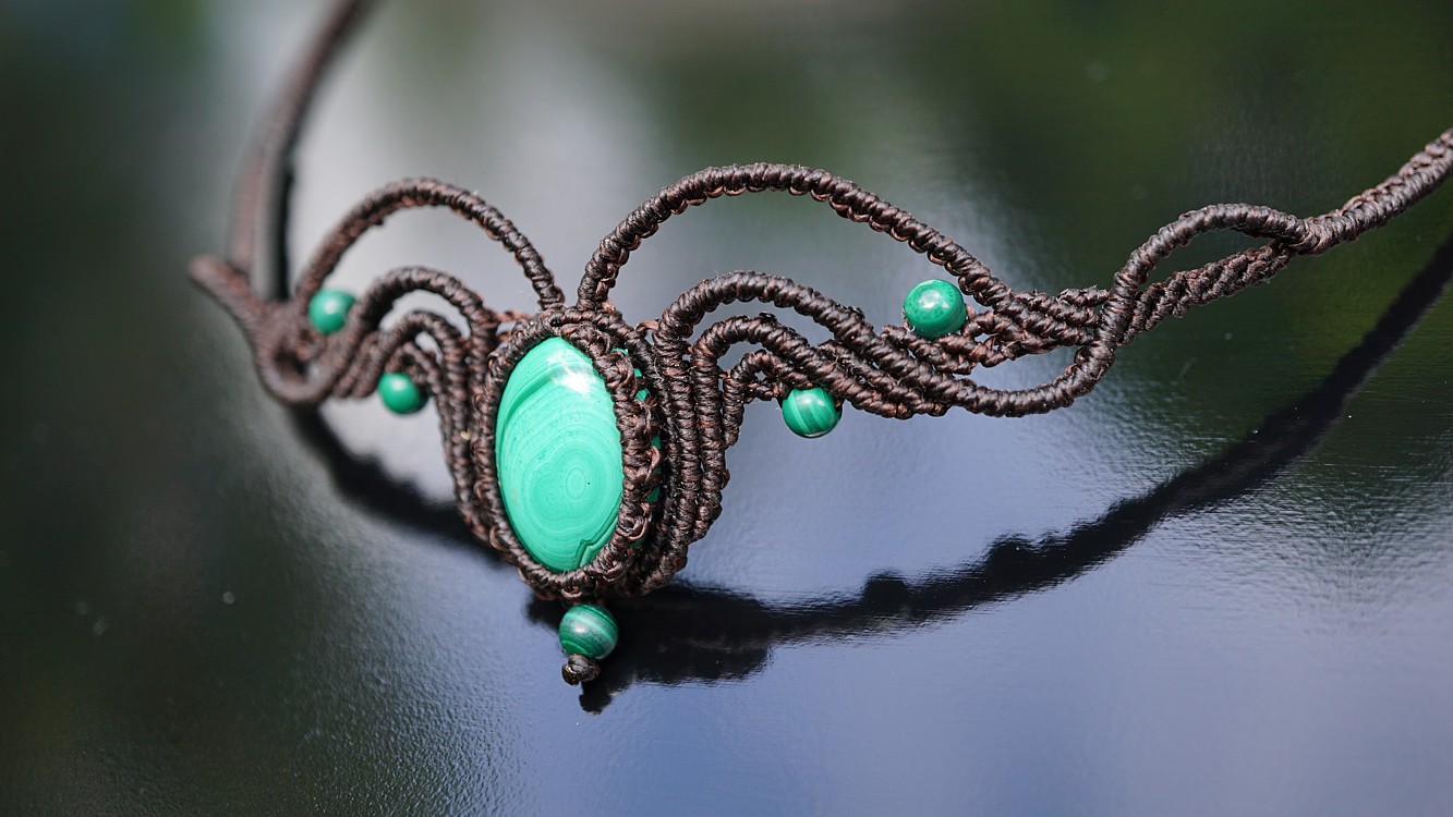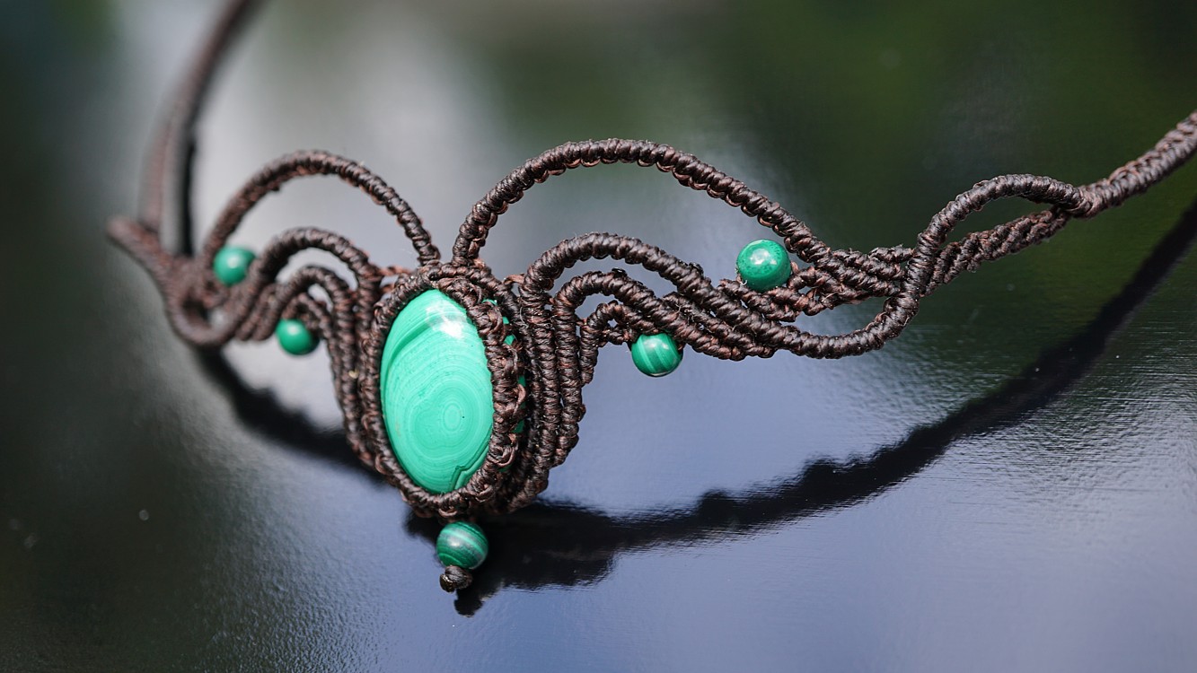 Malachit je vskutku skvostný kámen. Uchytila jsem ho do temně hnědých šňůrek, což přináší velikou eleganci a zárověň zemitost. A co o malachitu říká nefertitis.cz?