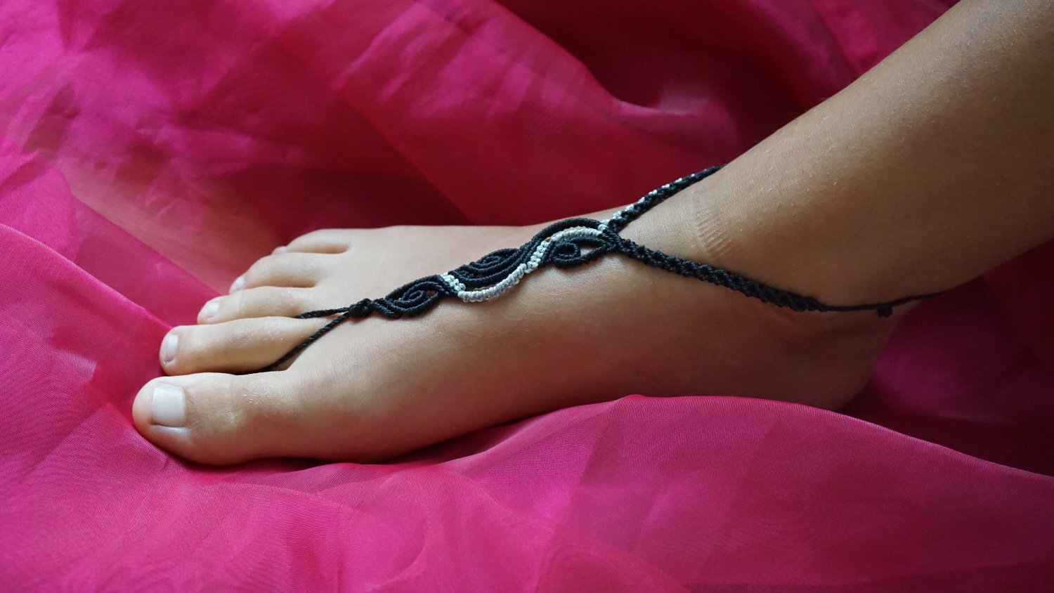 Šperk je na utahování, velikost je tedy univerzální. Mustr tvořila moje nožka vel. 38. Do poznámky v objednávce mi proím připište velikost vaší nožky (v případě potřeby vám vytvořím šperk na míru).