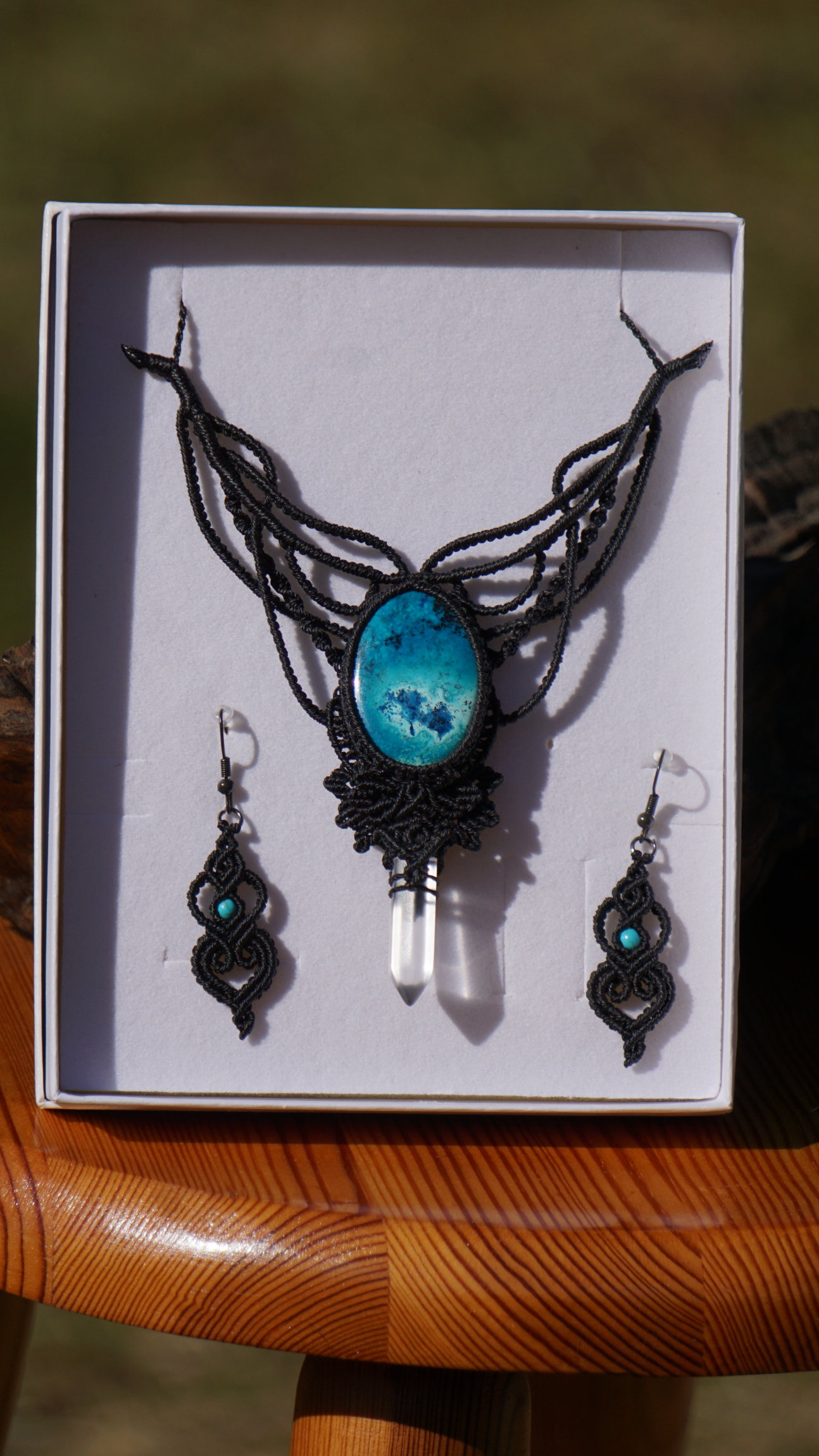 K náhrdelníku existuje i náramek a náušnice, jež tvoří dokonalou soupravu. Dostanete se k nim proklikem.