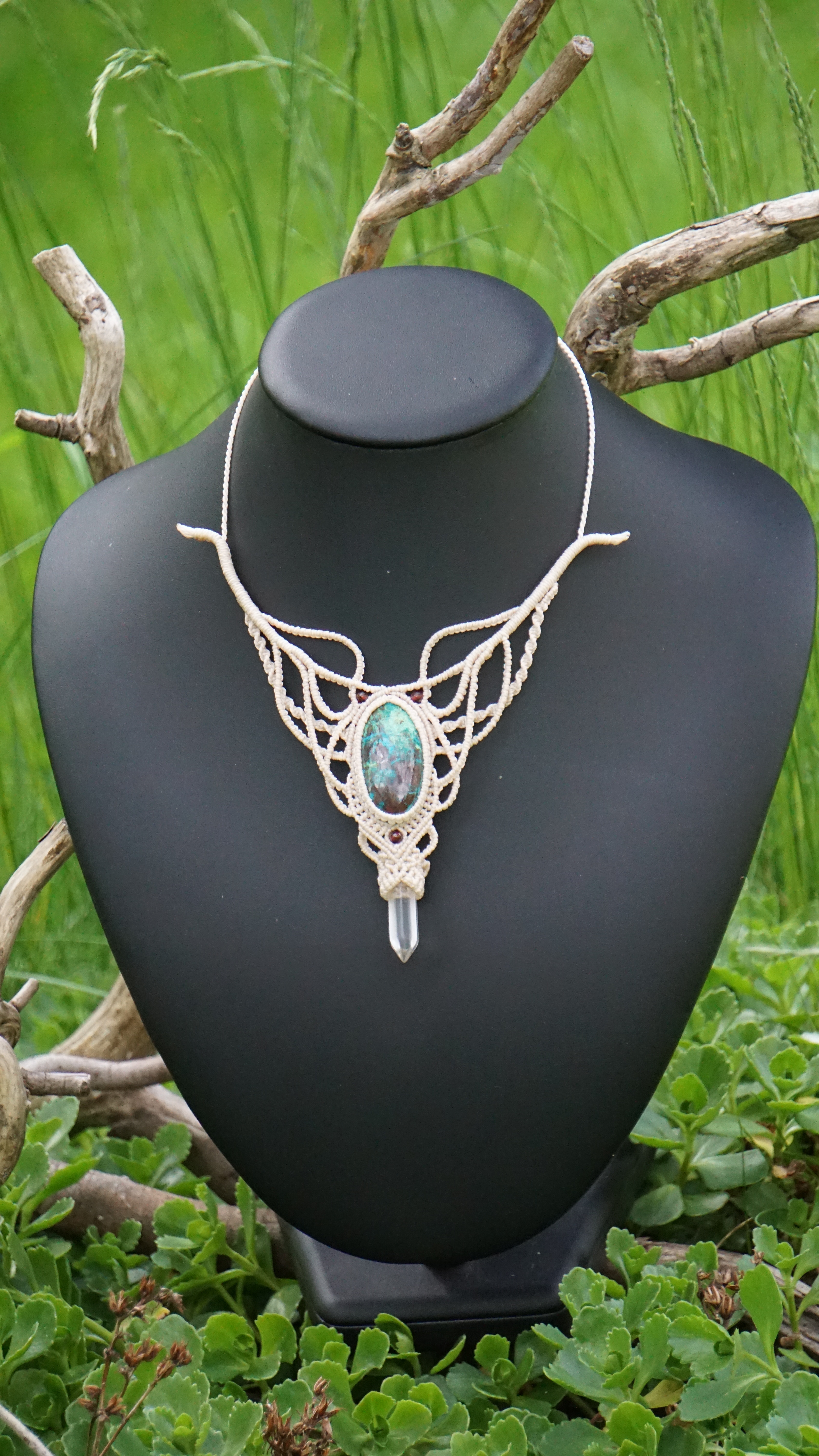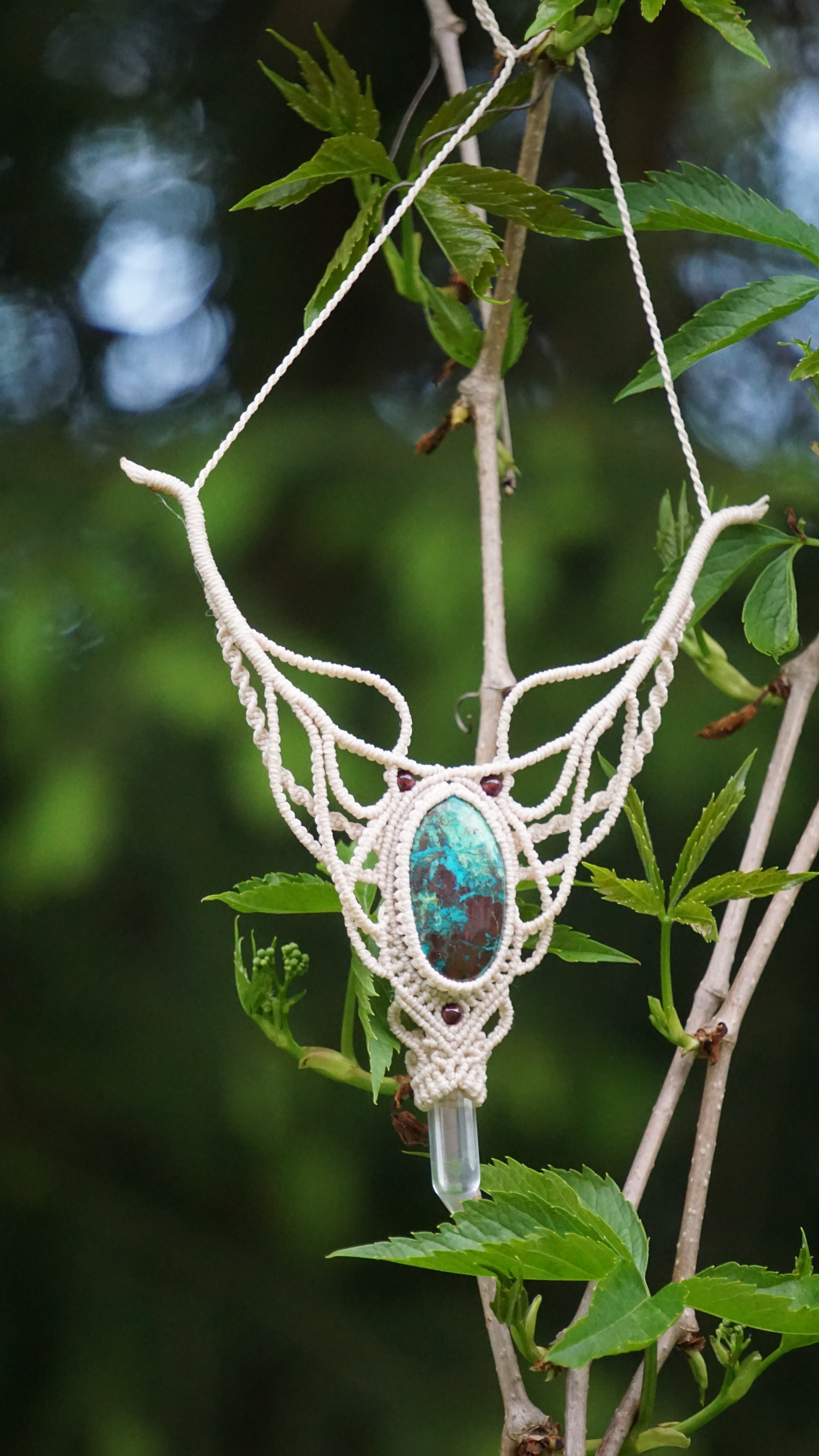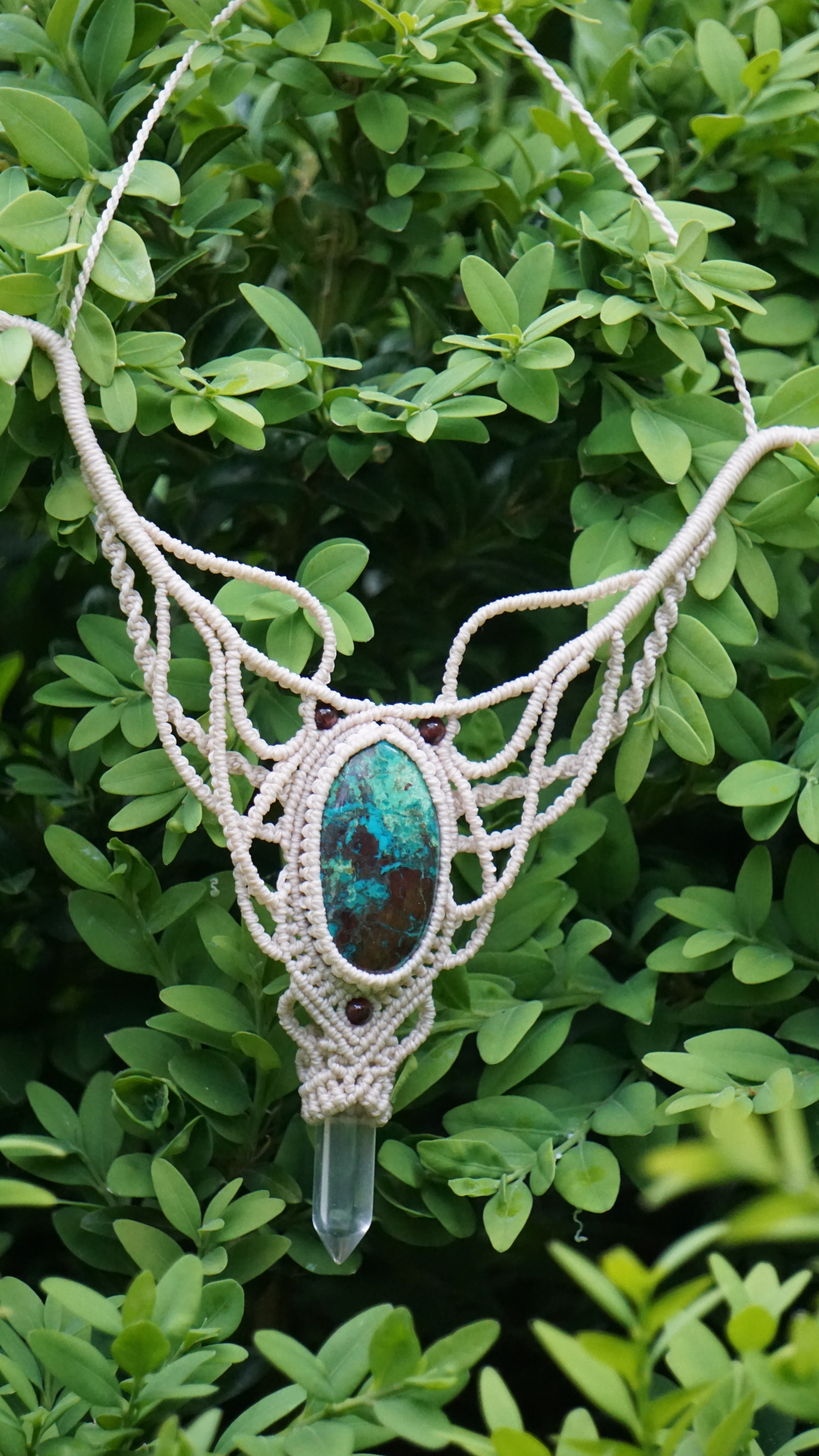 Šperk vznikl technikou micro macramé, což je uzlíkování pouze za pomoci šikovných prstů a fantasie. Používám brazilské povoskované šňůrky, které jsou jedny z nejkvalitnějších na světě pro svou pevnost a stálobarevnost. Šňůrky je možné ručně vyprat ve vlažné mýdlové lázni, vysušit v ručníku a nechat volně uschnout.