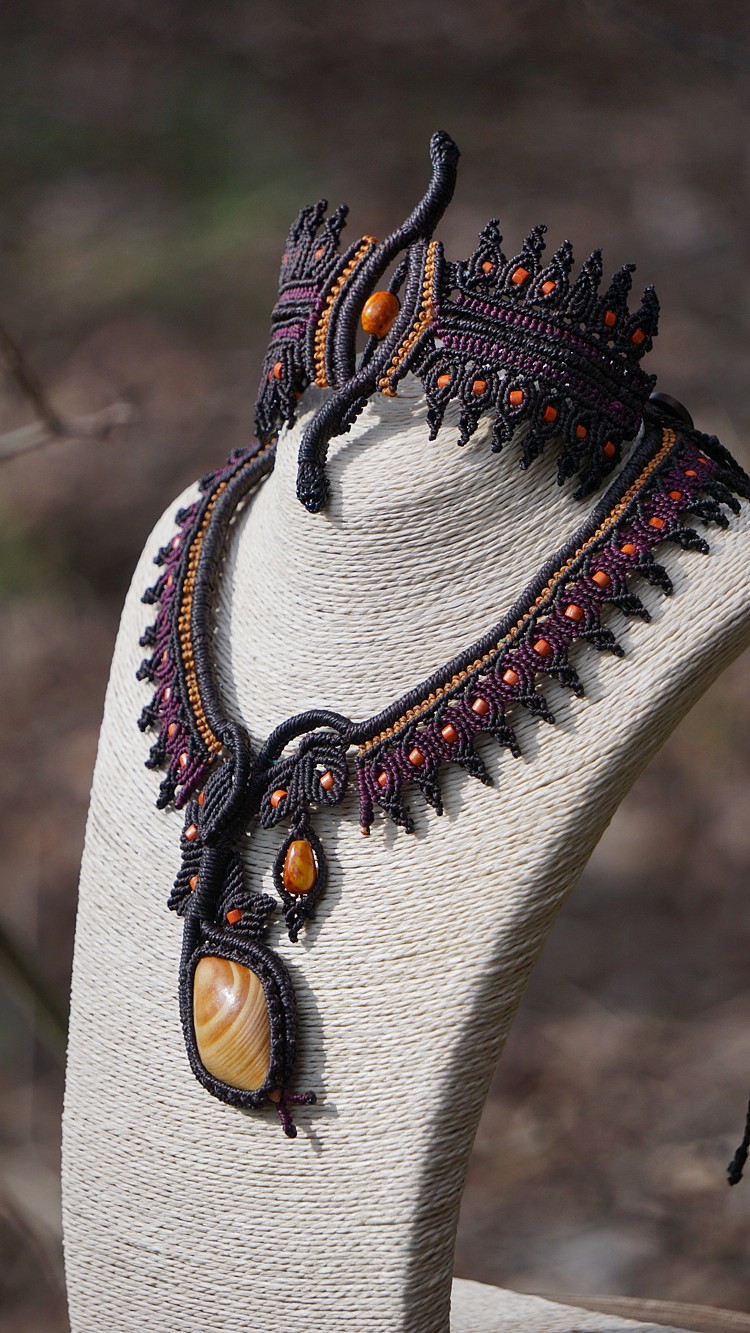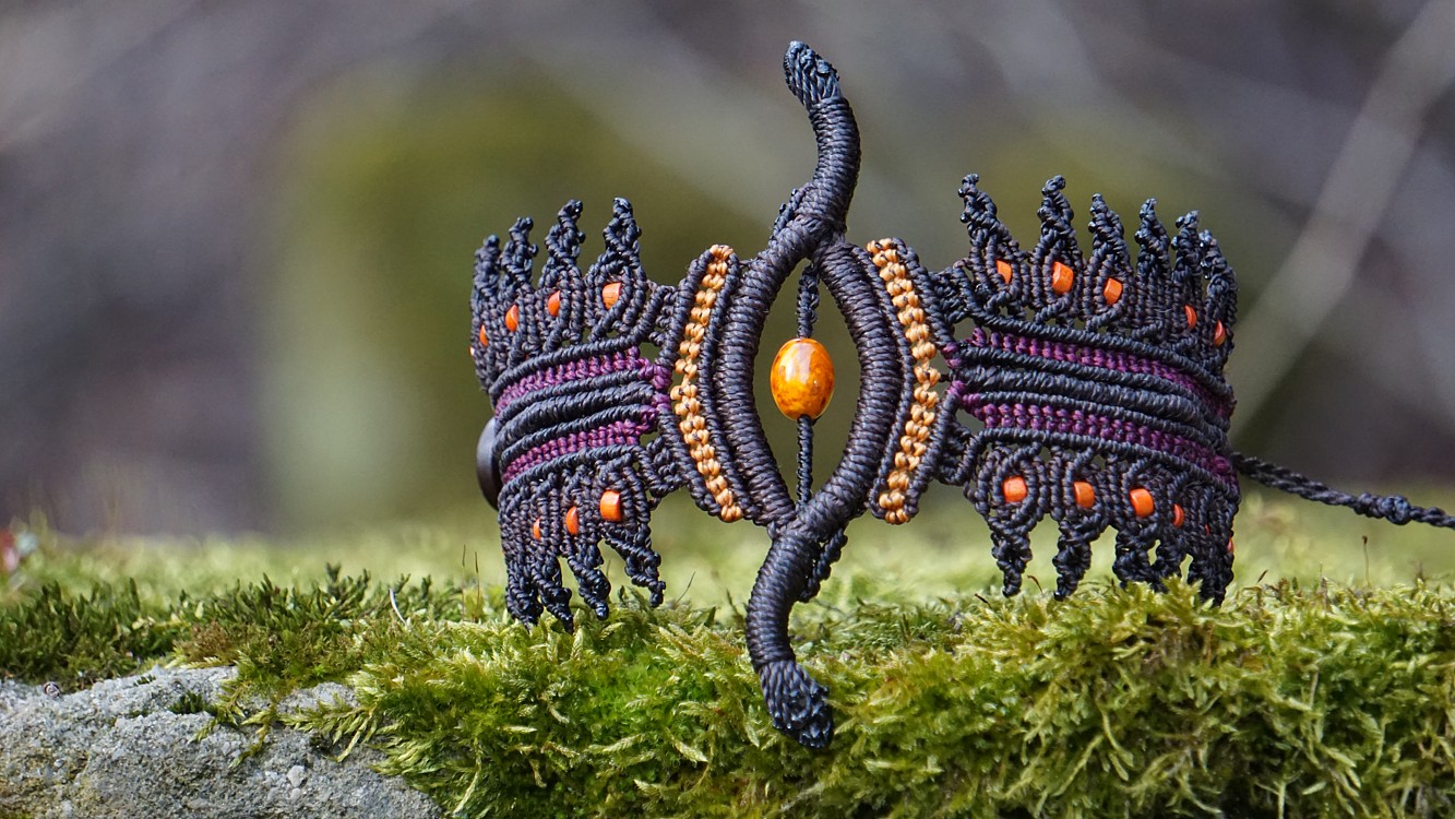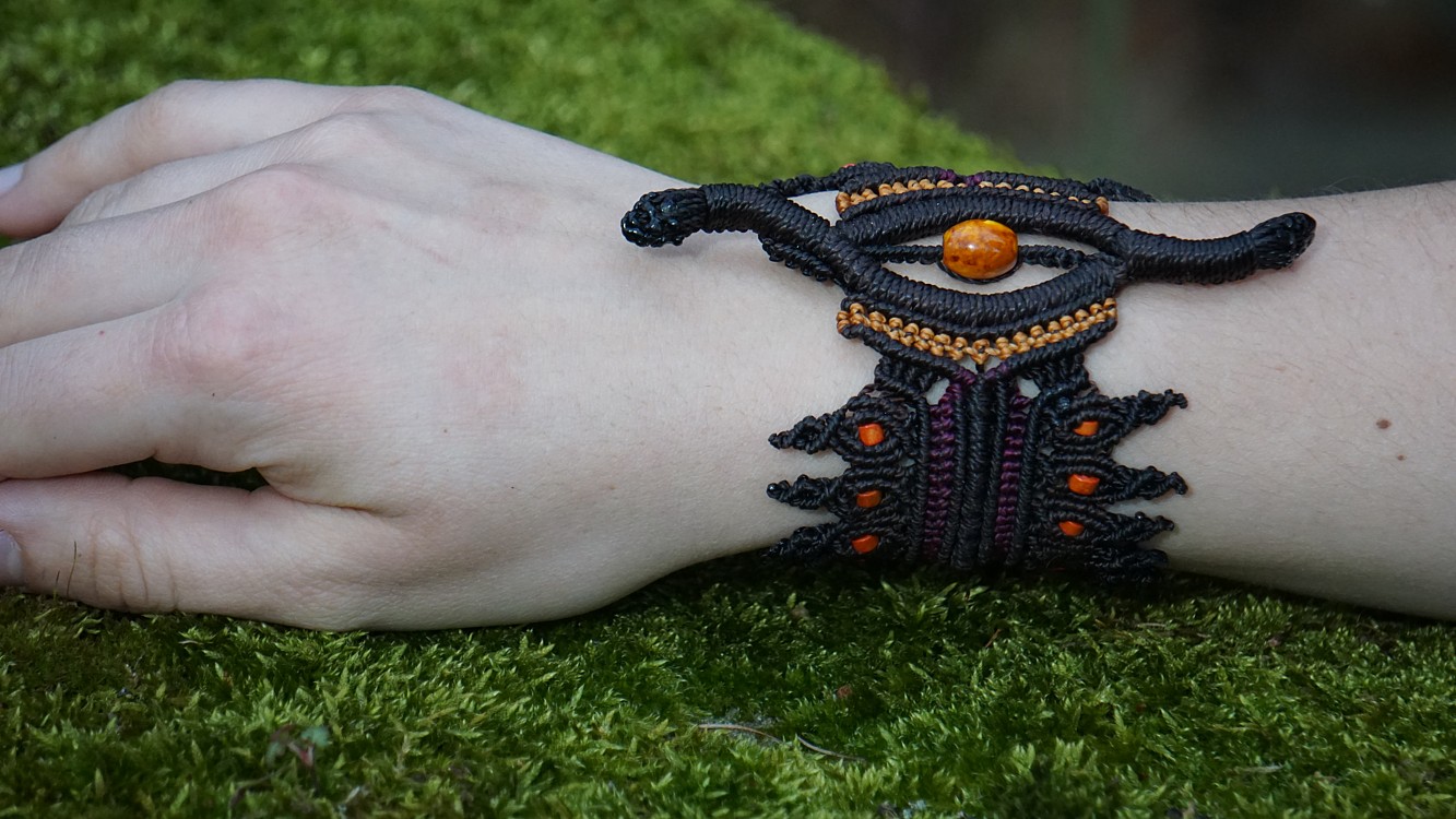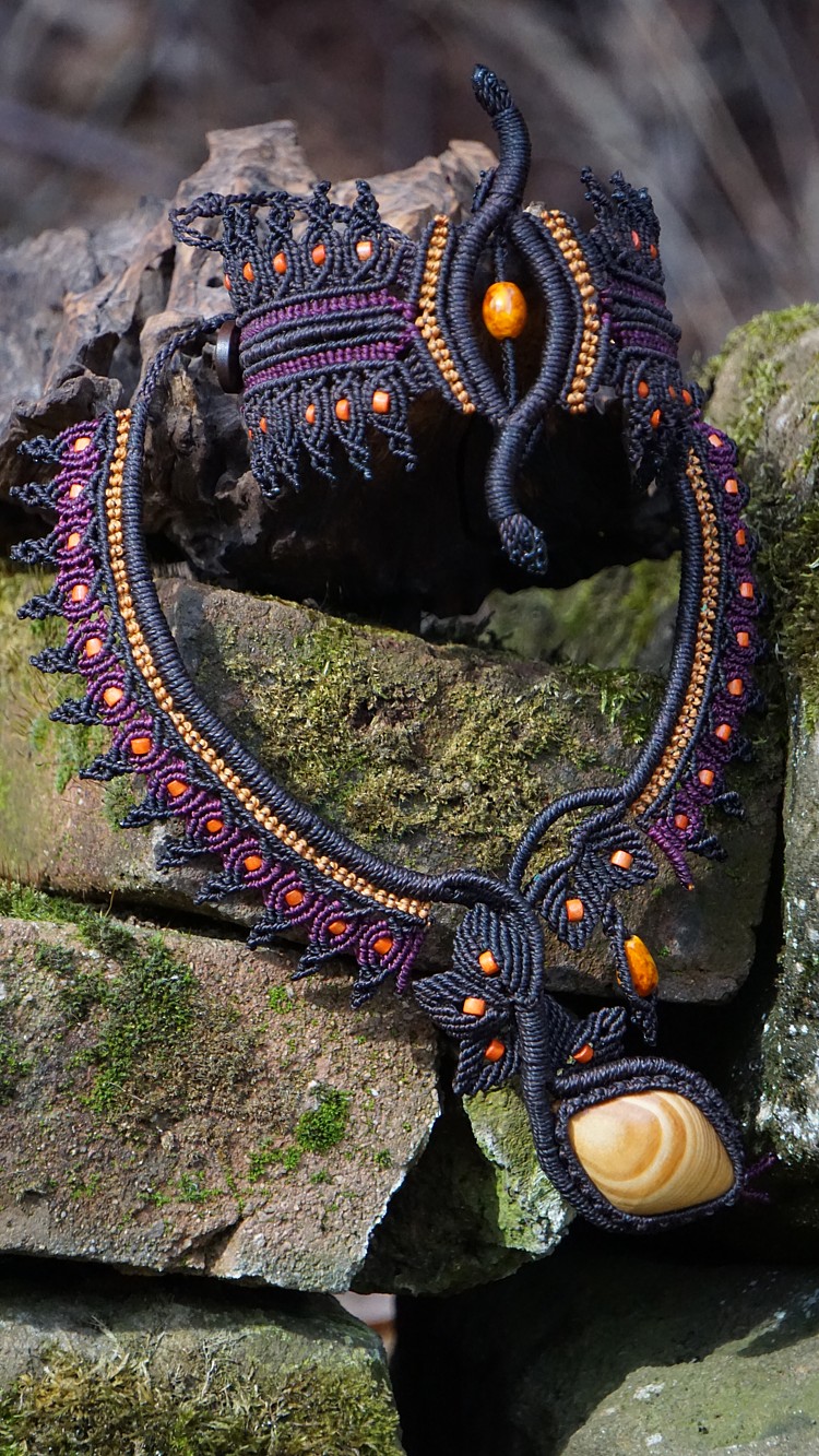 Šperk vznikl technikou micro macramé, což uzlíkování pouze za pomoci šikovných prstů a fantasie. Používám brazilské povoskované šňůrky, které jsou jedny z nejkvalitnějších na světě pro své kvality a stálobarevnost