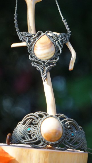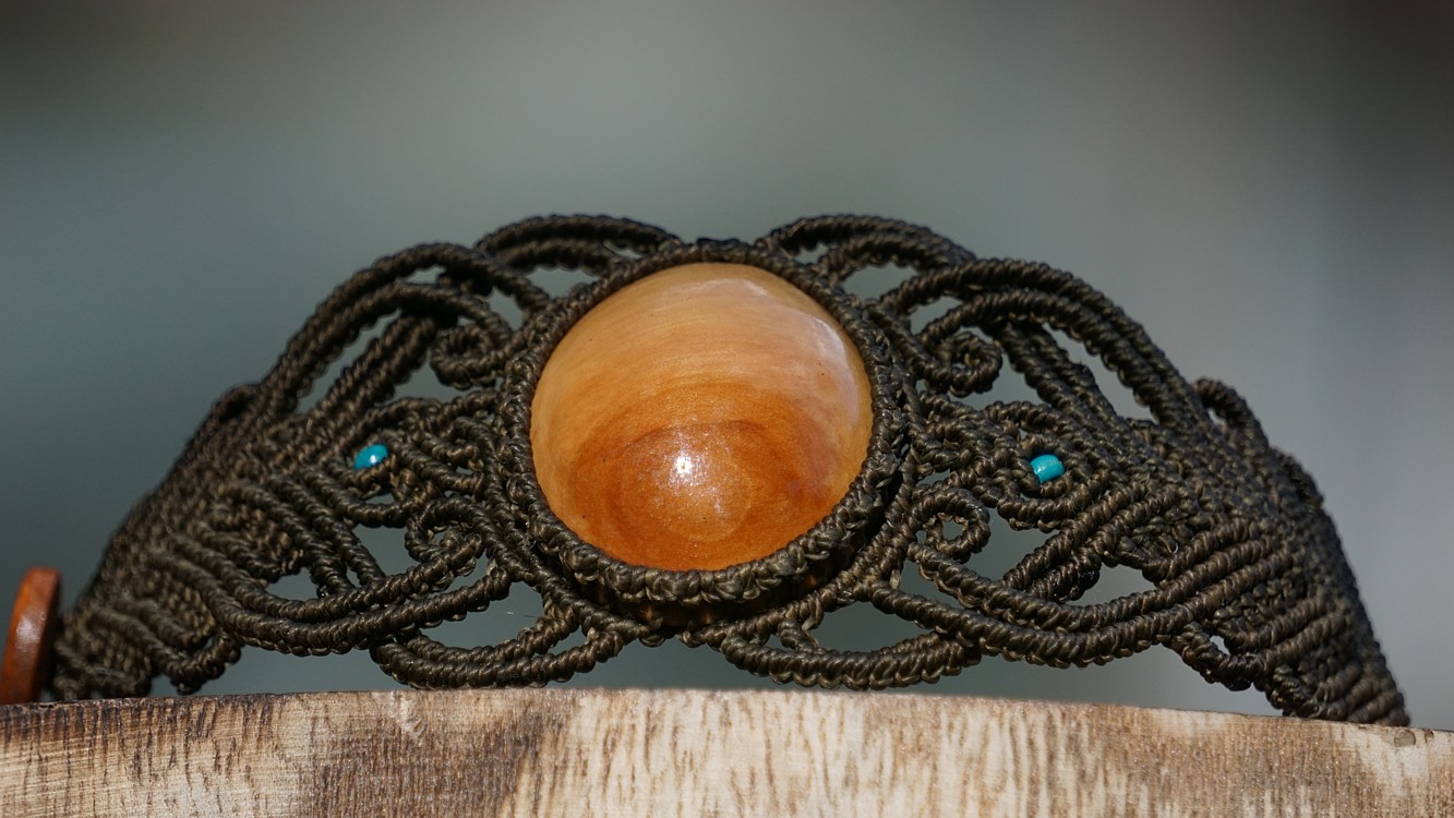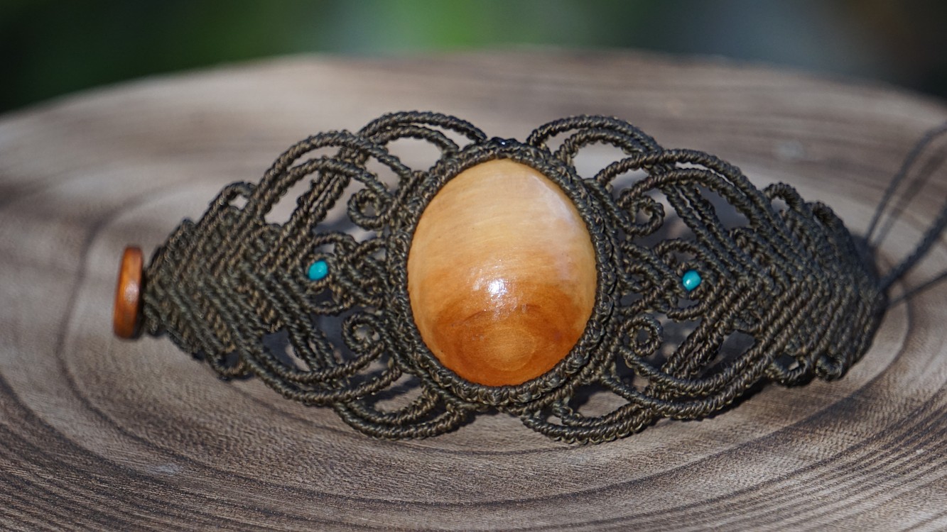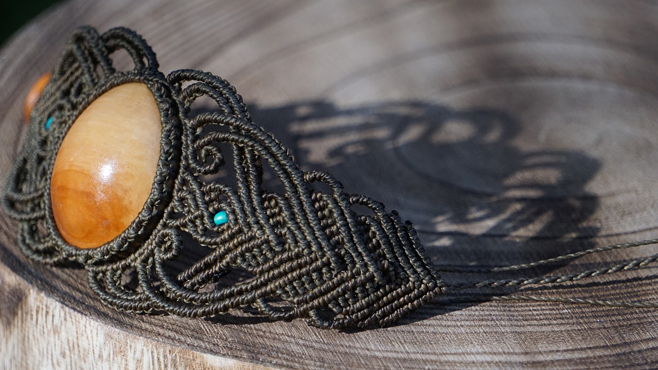 Šperk vznikl technikou micro macramé, což uzlíkování pouze za pomoci šikovných prstů a fantasie. Používám brazilské povoskované šňůrky, které jsou jedny z nejkvalitnějších na světě pro svou pevnost a stálobarevnost.