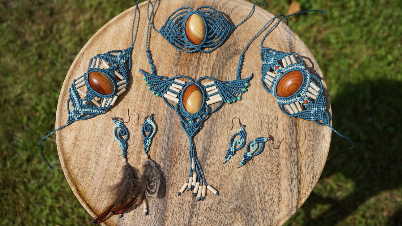 Šperk vznikl technikou micro macramé, což uzlíkování pouze za pomoci šikovných prstů a fantasie. Používám brazilské povoskované šňůrky, které jsou jedny z nejkvalitnějších na světě pro svou pevnost a stálobarevnost.