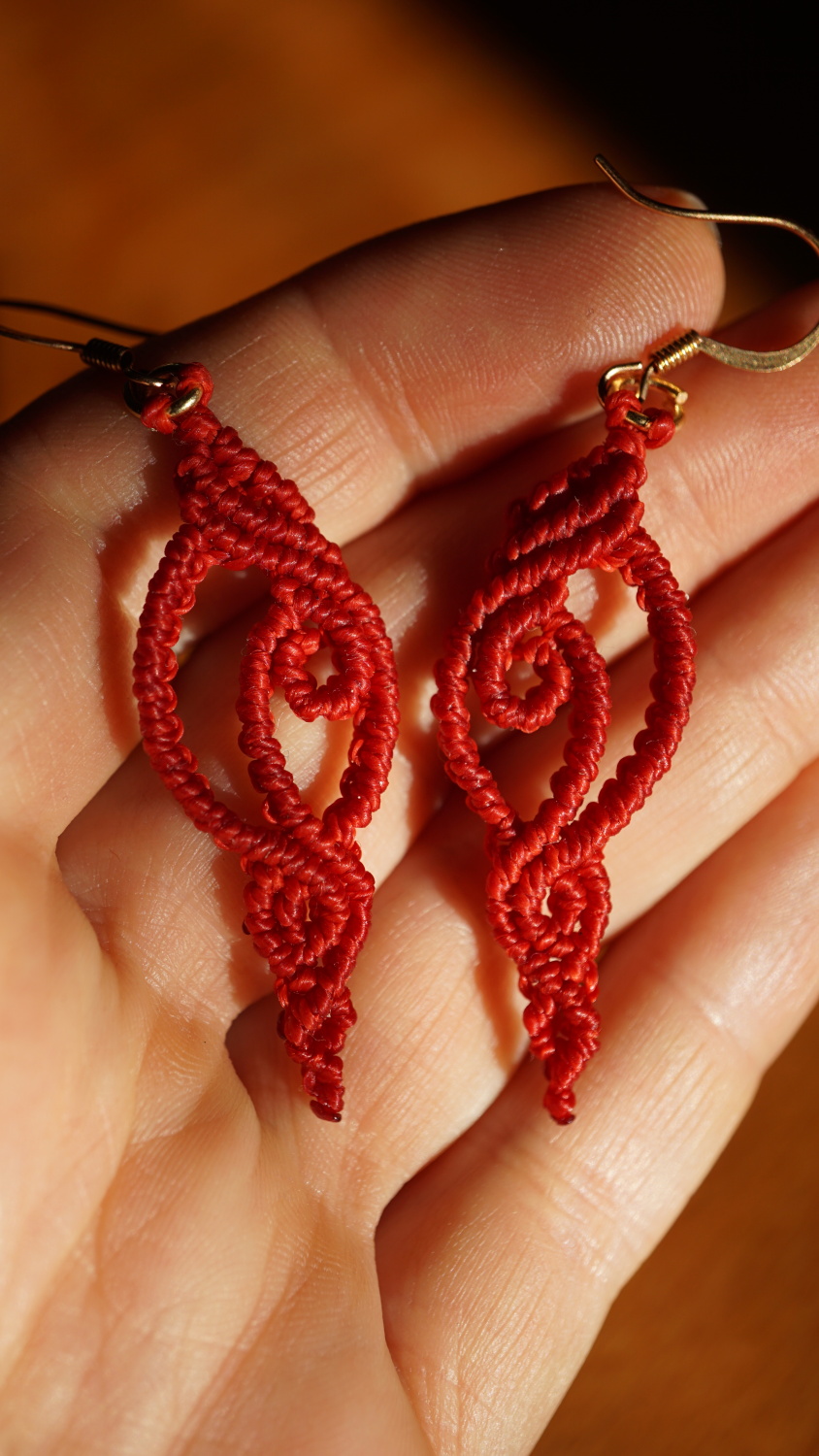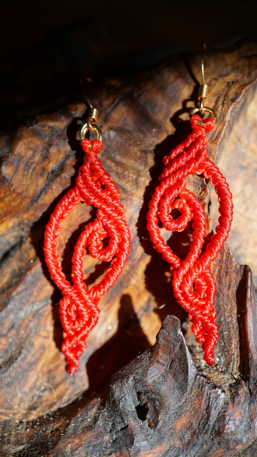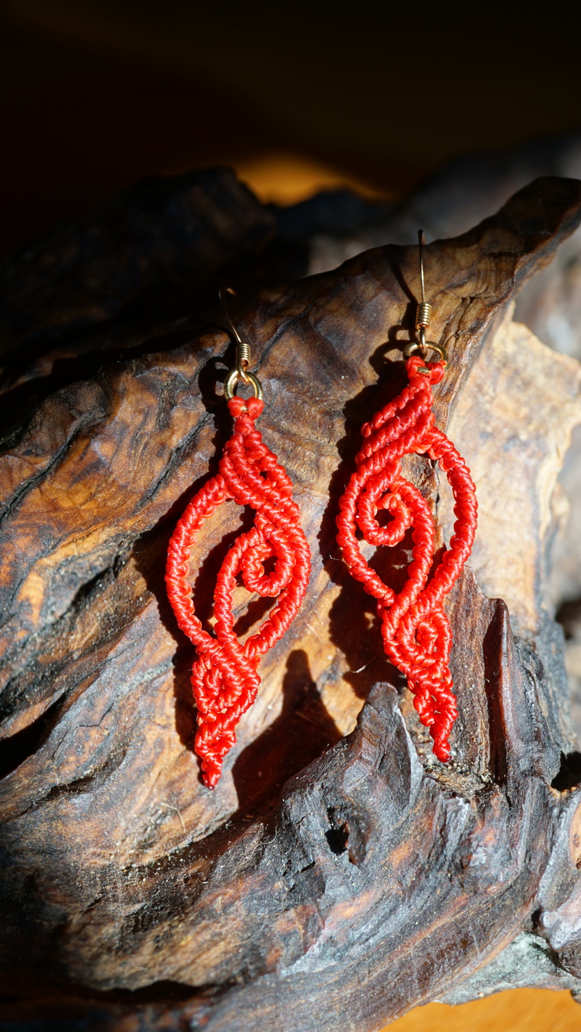 Náušnice vznikly technikou micro macramé, což je uzlíkování pouze za pomoci šikovných prstů a fantasie. Používám brazilské povoskované šňůrky, které jsou jedny z nejkvalitnějších na světě pro svou pevnost a stálobarevnost.
