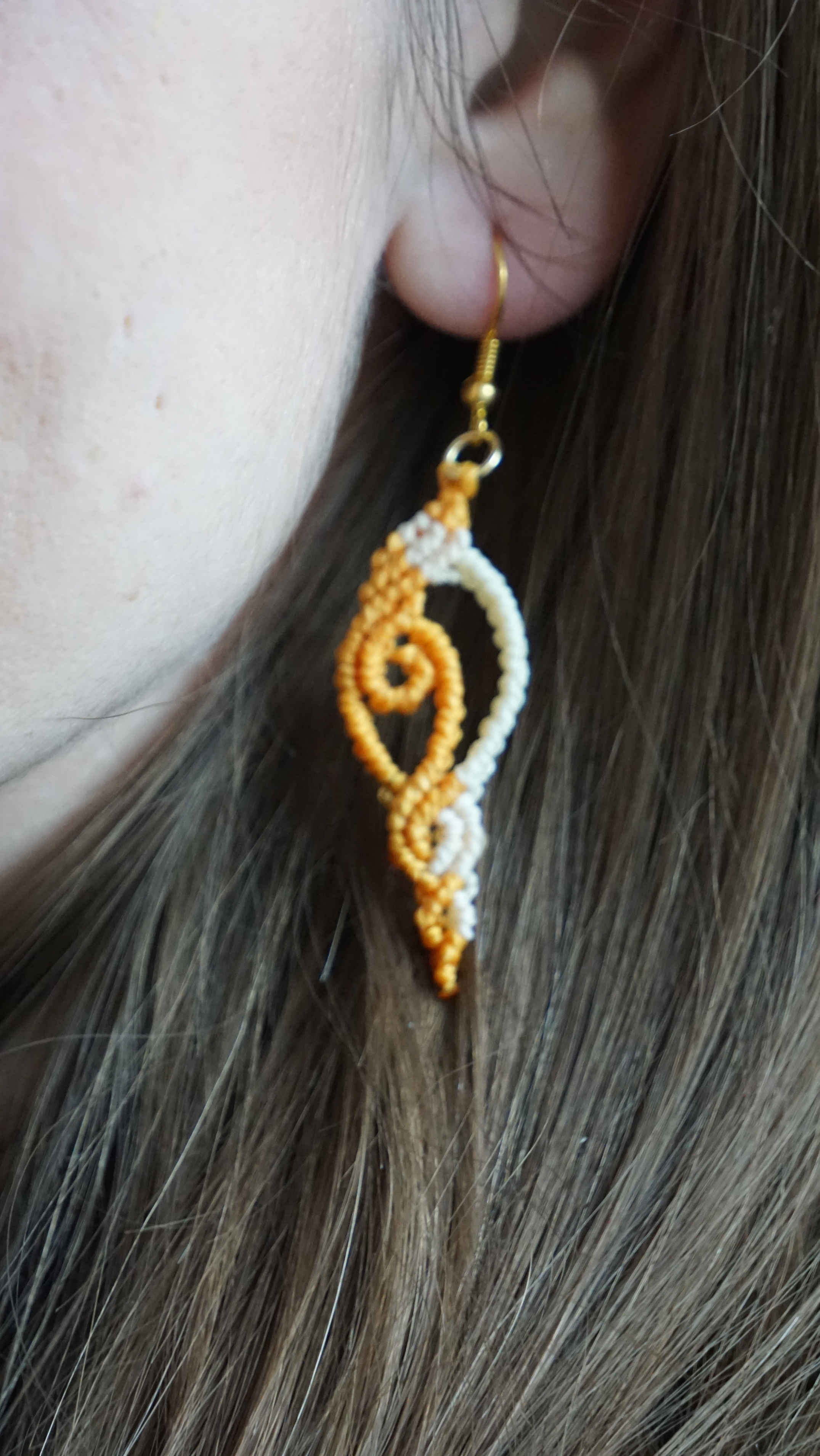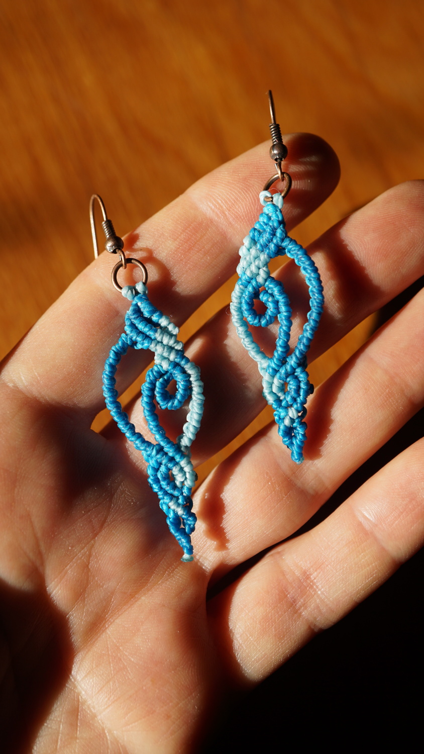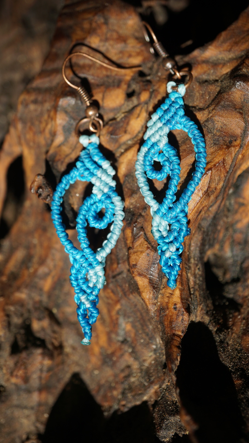 Náušnice vznikly technikou micro macramé, což je uzlíkování pouze za pomoci šikovných prstů a fantasie. Používám brazilské povoskované šňůrky, které jsou jedny z nejkvalitnějších na světě pro svou pevnost a stálobarevnost.