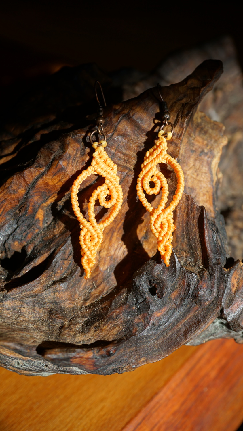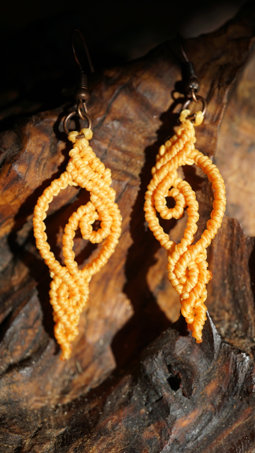 Náušnice vznikly technikou micro macramé, což je uzlíkování pouze za pomoci šikovných prstů a fantasie. Používám brazilské povoskované šňůrky, které jsou jedny z nejkvalitnějších na světě pro svou pevnost a stálobarevnost.