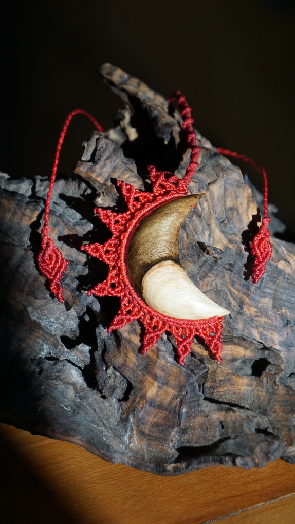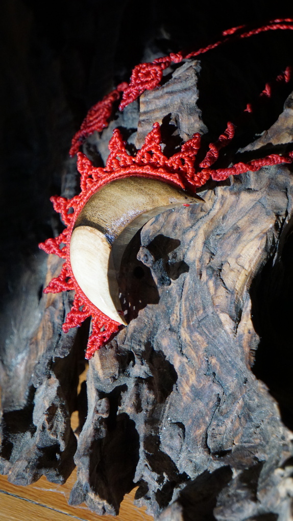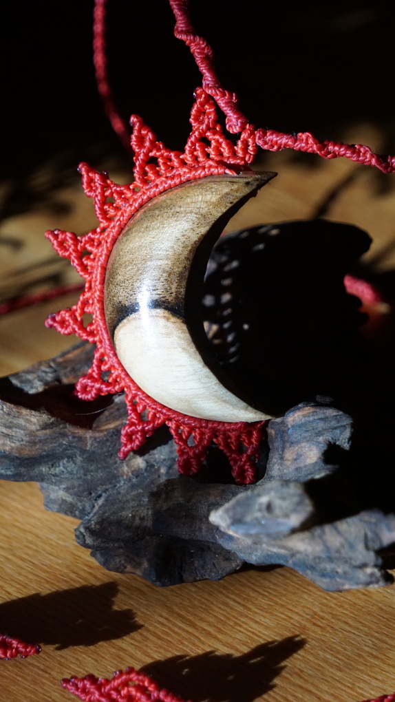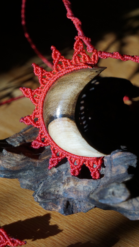 Ořešákové dřevo poskytuje krásně duálně prokreslené dřevo, s ostrým předělem mezi "černou a bílou". I měsíc, ze kterého vycházejí rudé sluneční paprsky vypovídá u dualitě. Jako my samé. Pokud se nám podaří v sobě vyvážit a pojmout všechny energie, je možné stvořit cokoli.