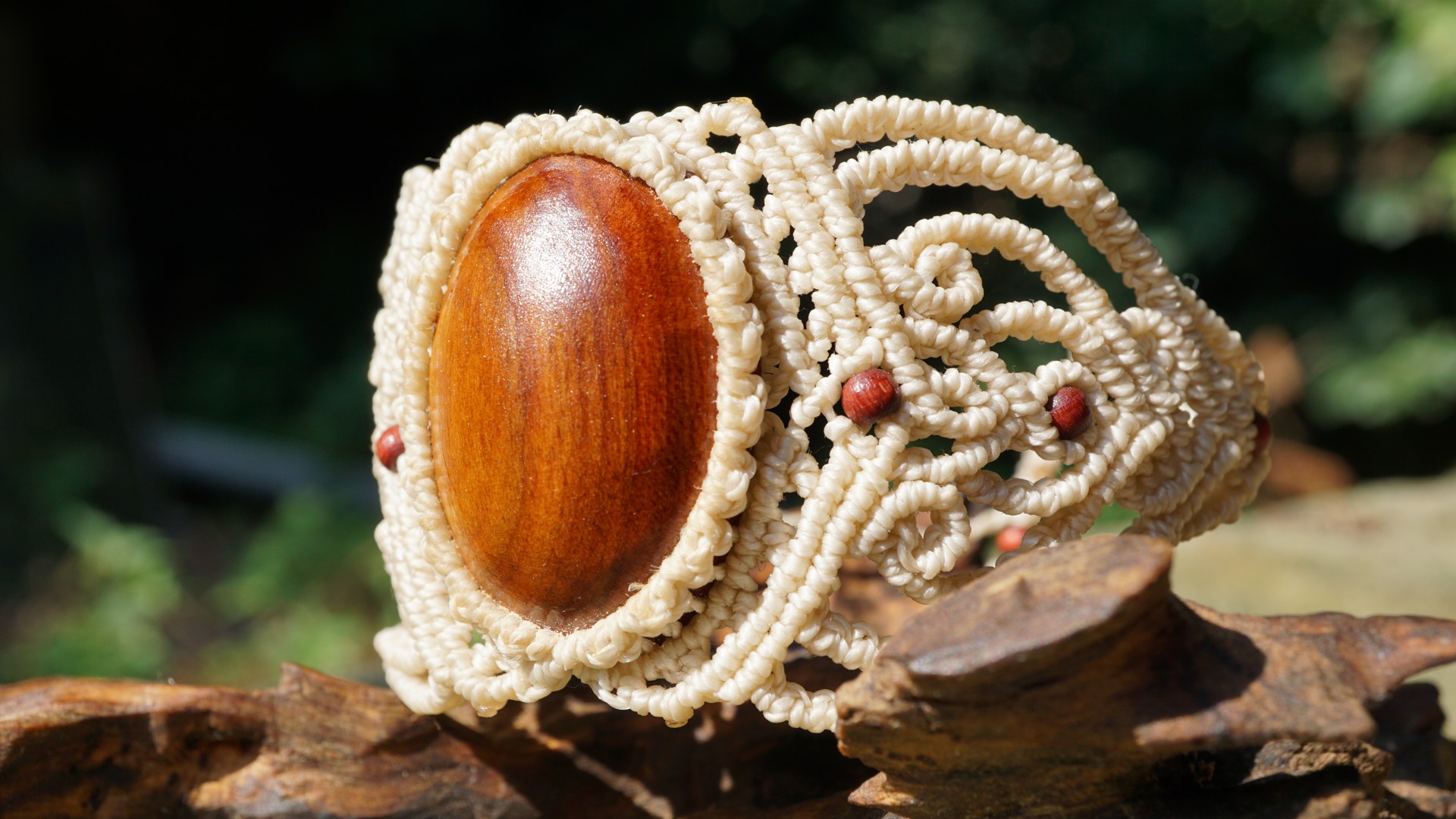 Šperk vznikl technikou micro macramé, což uzlíkování pouze za pomoci šikovných prstů a fantasie. Používám brazilské povoskované šňůrky, které jsou jedny z nejkvalitnějších na světě pro své kvality a stálobarevnost.