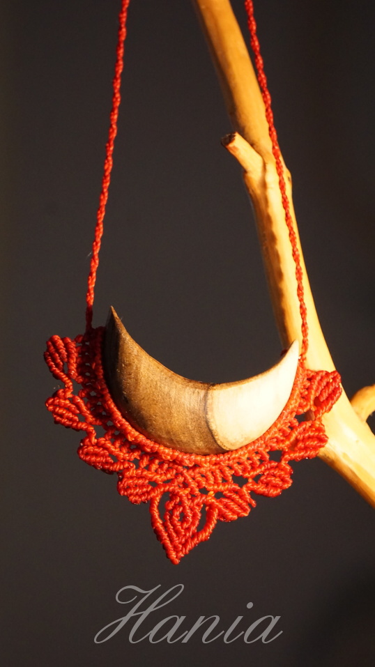 Šperk vznikl technikou micro macramé, což je uzlíkování pouze za pomoci šikovných prstů a fantasie. Používám brazilské povoskované šňůrky, které jsou jedny z nejkvalitnějších na světě pro svou pevnost a stálobarevnost. Šňůrky je možné ručně vyprat ve vlažné mýdlové lázni, vysušit v ručníku a nechat volně uschnout.