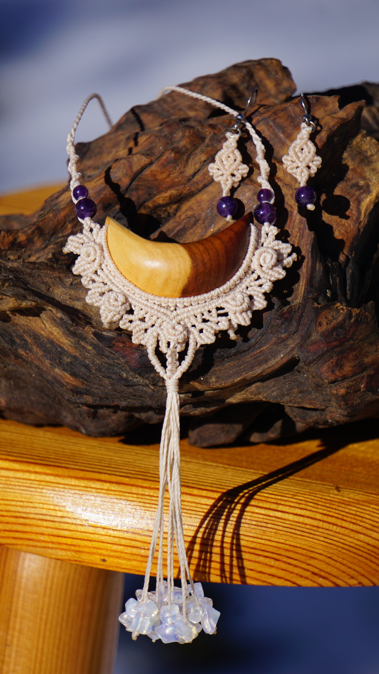 Dřevo obou šperků je švestkové z podhůří Orlických hor, z LetoHradu. Indiáni věří, že každý strom je jako anténa napojená na jednu z planet.