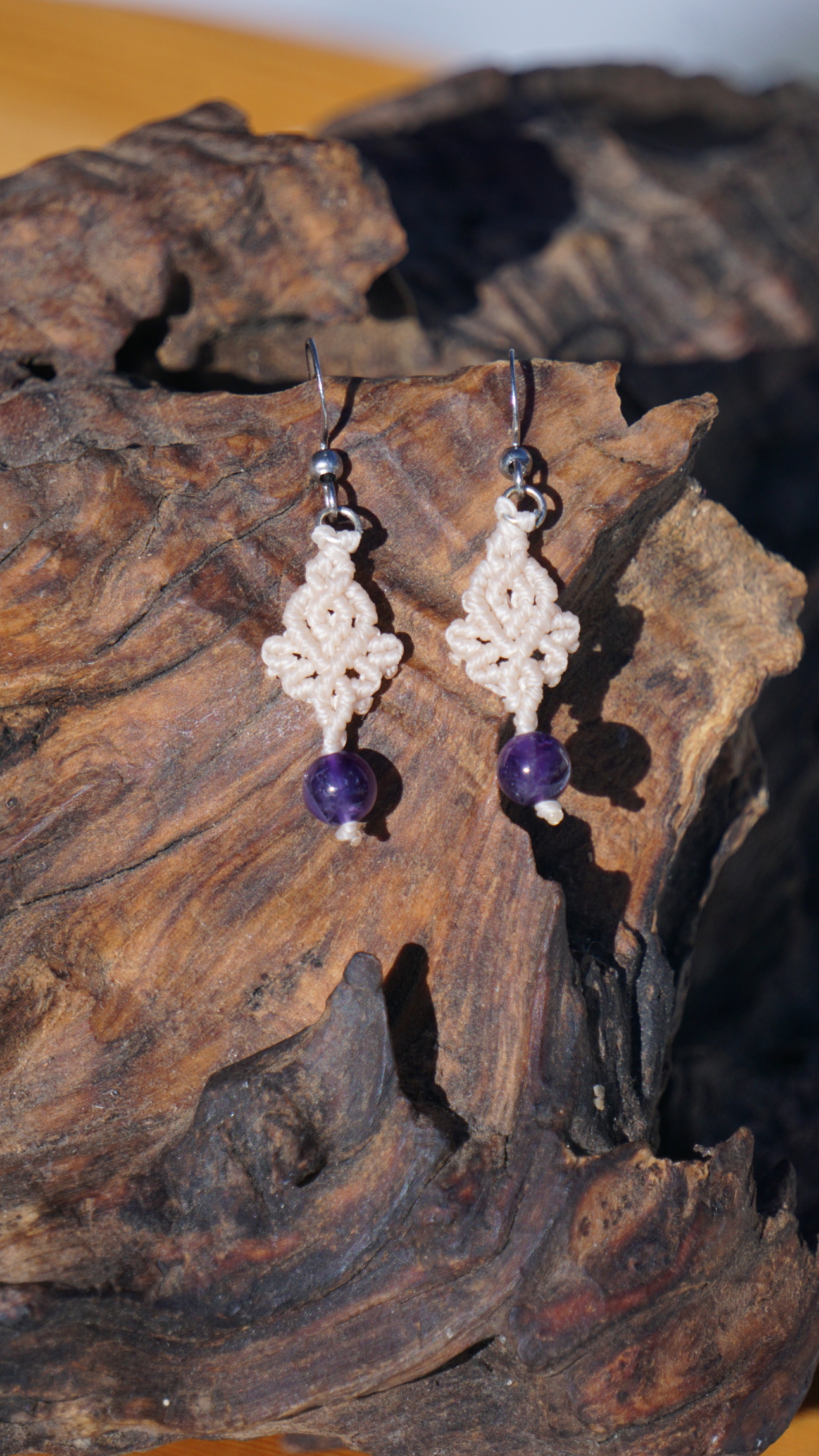 Barva nitek je světle béžová, síla je 0,75 mm, korálky jsou ametystové a opalitové (na ohonu)
