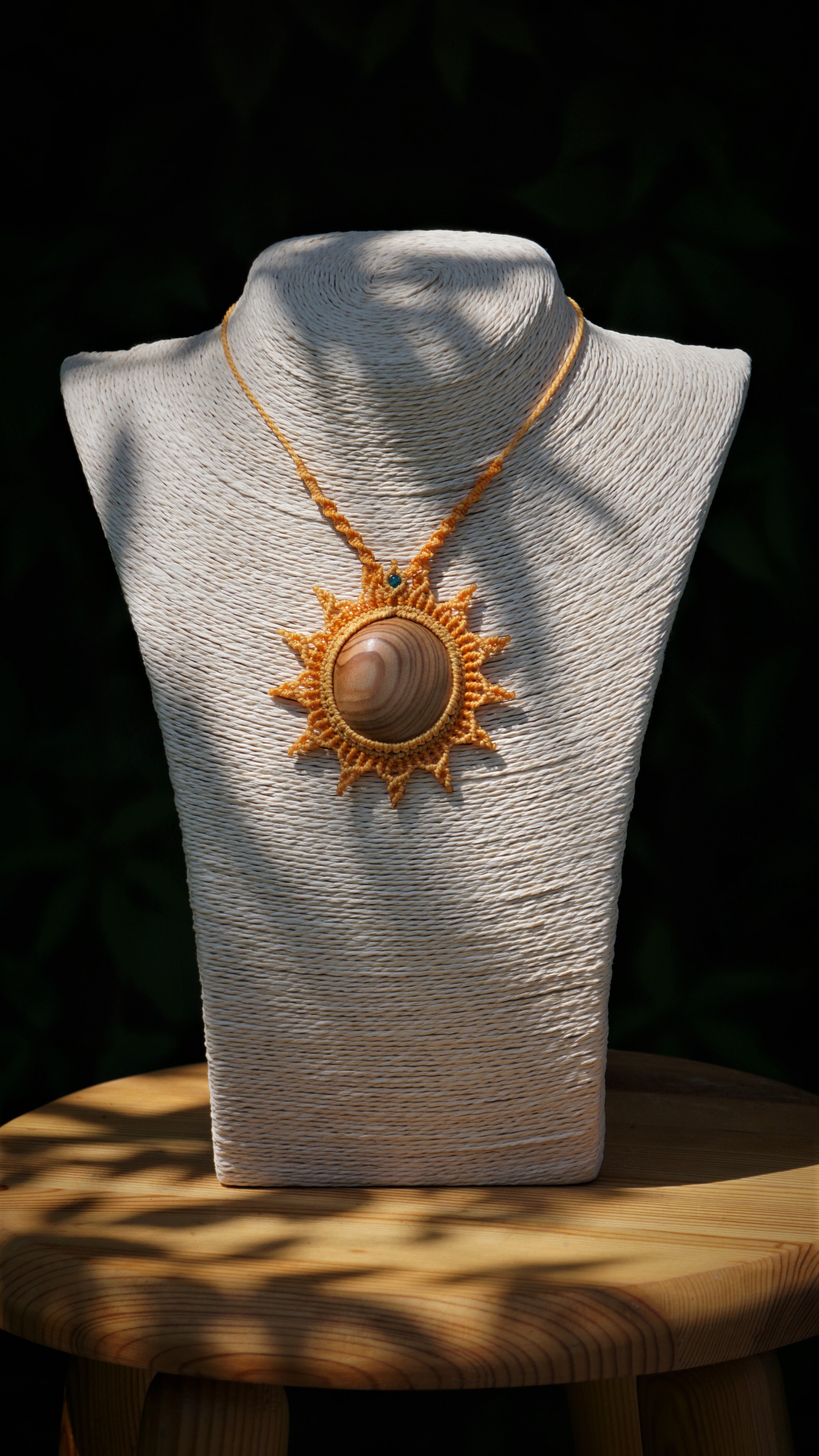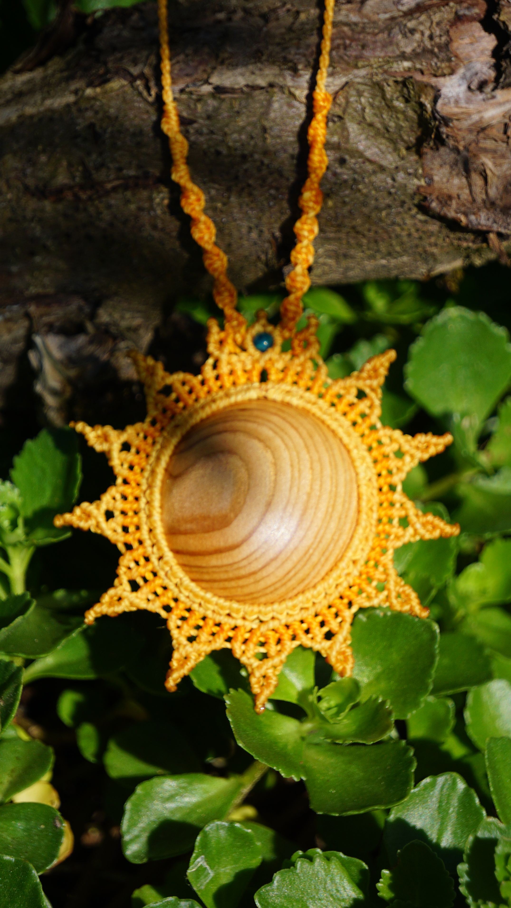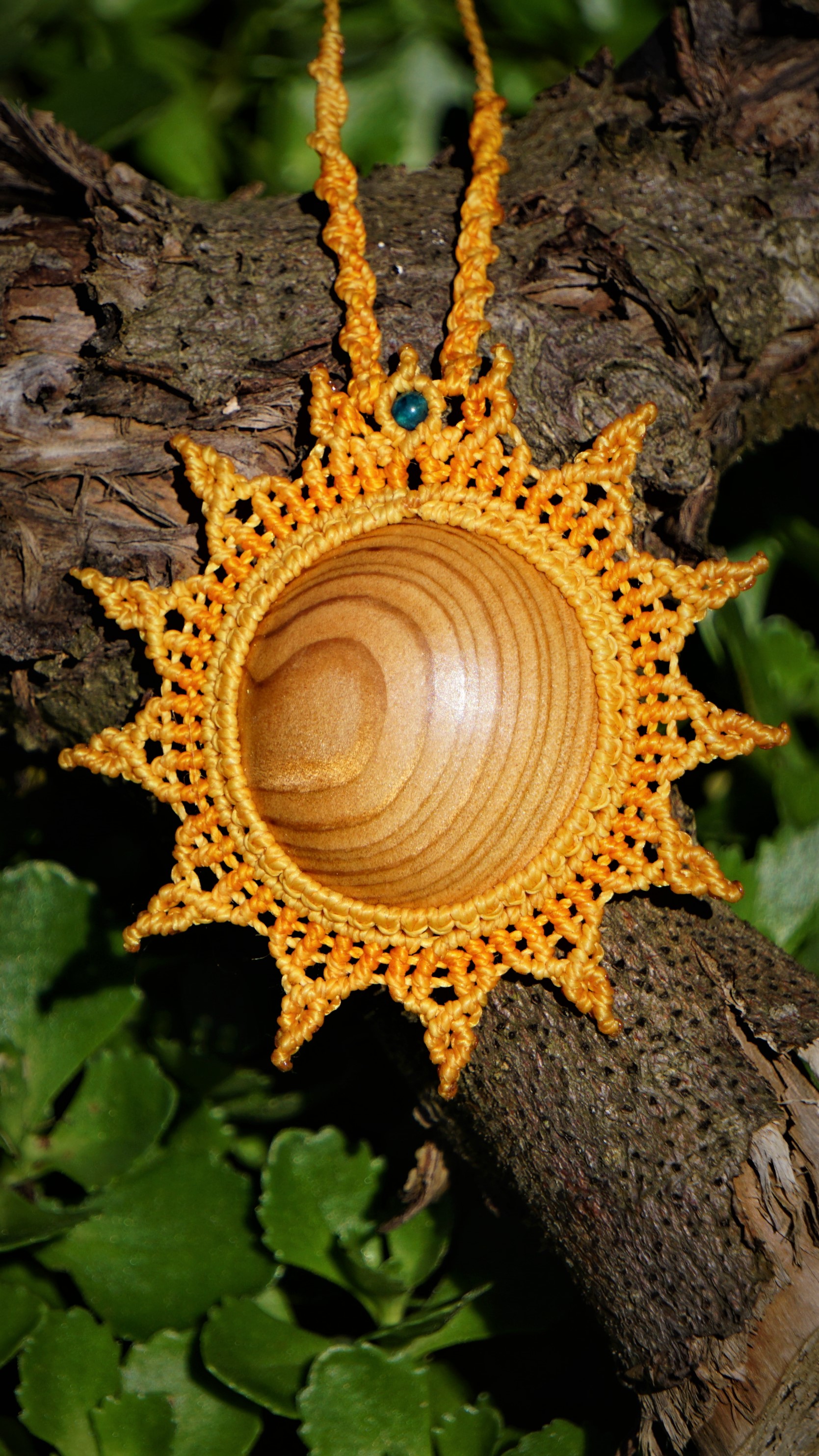 Barvy nitek jsou ve dou odstínech sluníčkové žluté, korálek je z apatitu. Délka závěsu je na utahování, samy si nastavujete požadovanou délku závěsu (max. po solar plexus).