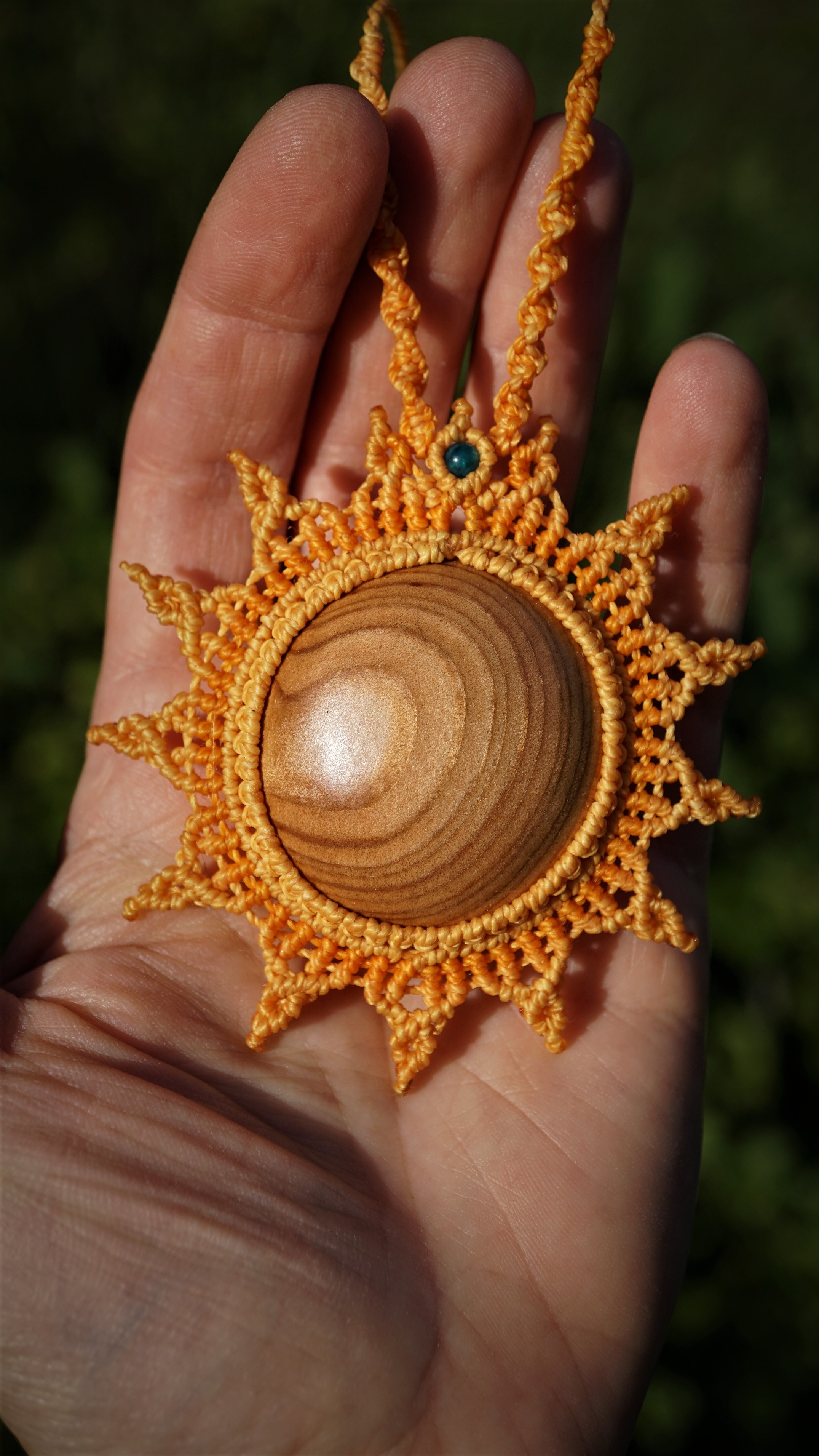 Dřevo uprostřed je ručně vyráběno v domácí dílně od kmene (mým partnerem), vybrušováno a ošetřeno směsí včelího vosku, pryskyřice, olejů a tajných přísad.