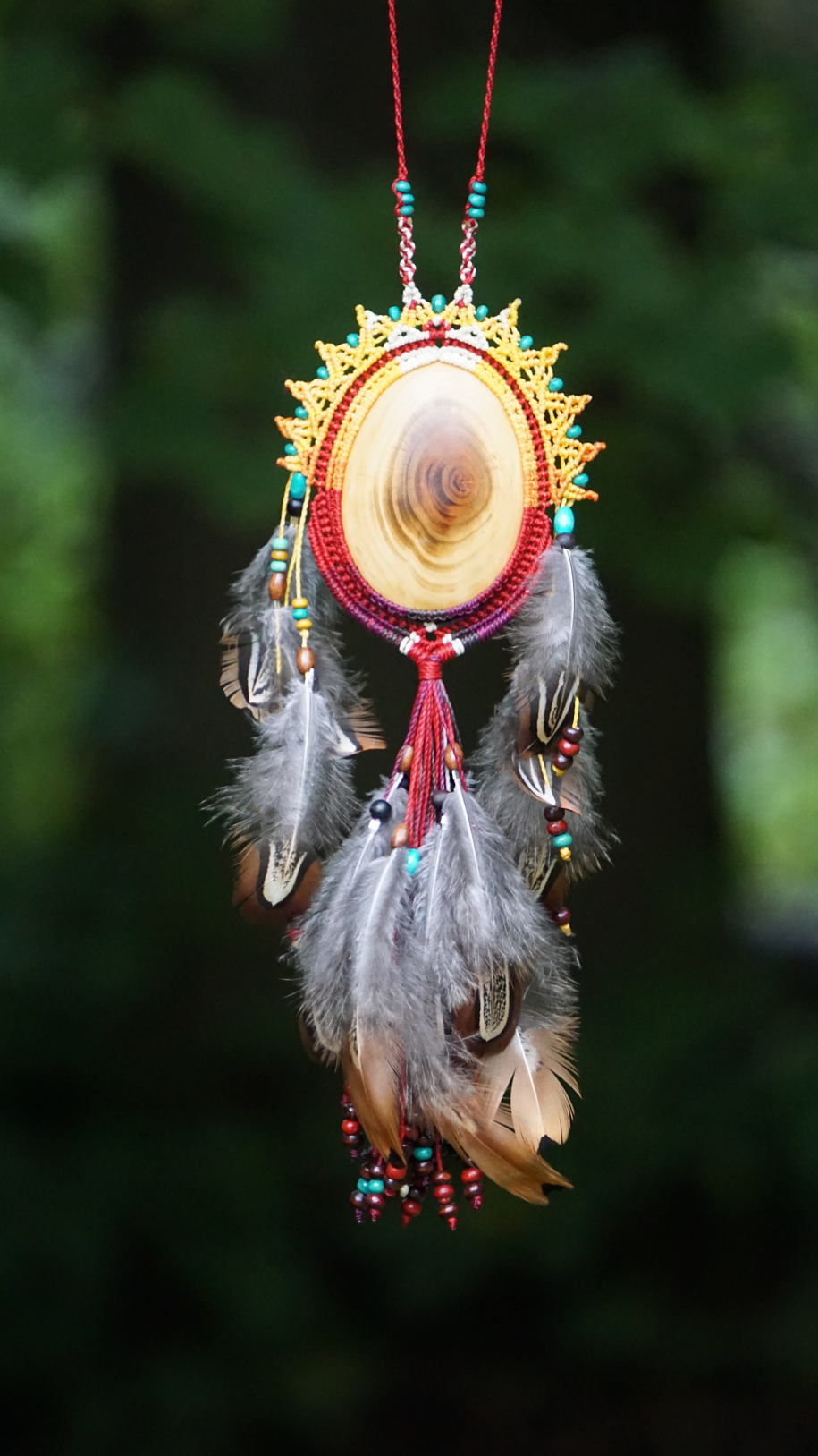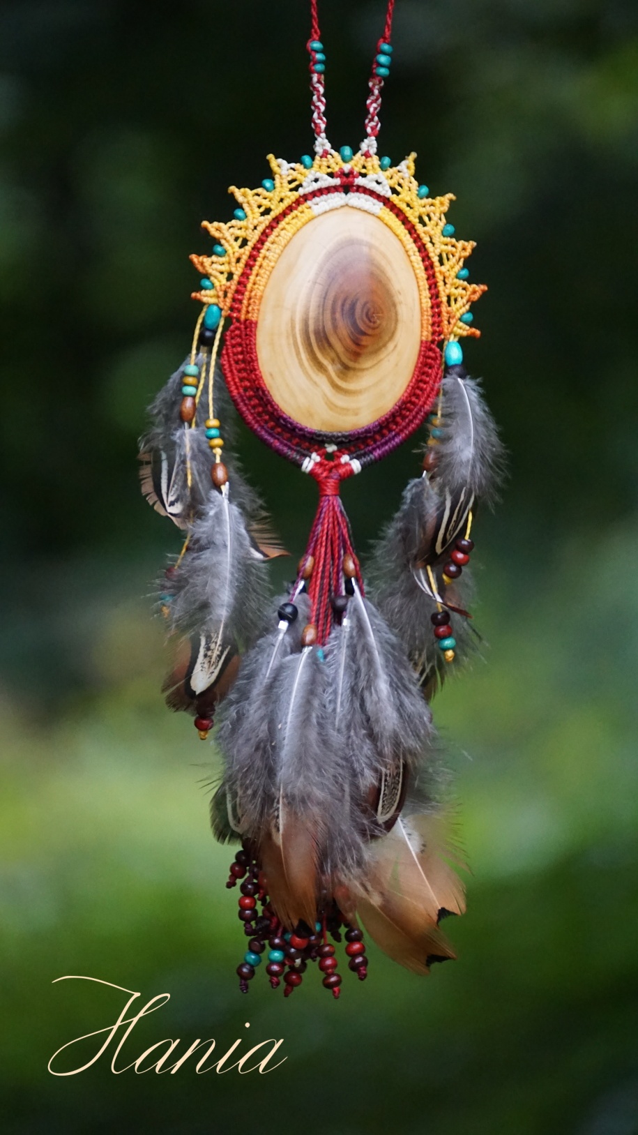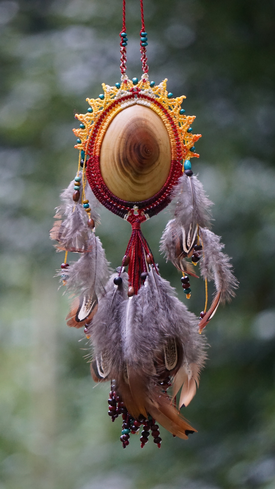 Alchymie zrození mu dala do vínku sluneční žár, ohnivý tanec, proměnu Fénixe a Poklad Duše. Je obrovský. Největší šperk, který jsem kdy vytvořila. S třešňovým dřevem uvnitř napojeným na Lunu, cykličnost a ženskou kvalitu bytí. Tento kus dřeva (výjimečně) vybrousil potají můj mužskej a donesl mi ho z dílny jako trofej. Odložila jsem ho, protože mi přišlo na šperk příliš veliké... než si ho u mě vybrala budoucí parťačka této bytosti (šperk je i ze zadní strany vybroušený a dokonale propracovaný).